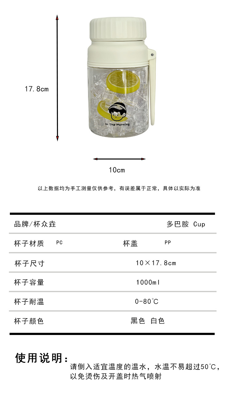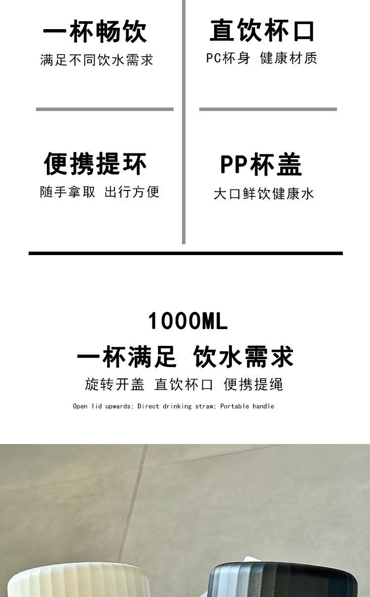 2025款运动塑料水杯大容量女生高颜值耐热食品级泡茶杯便携随手杯