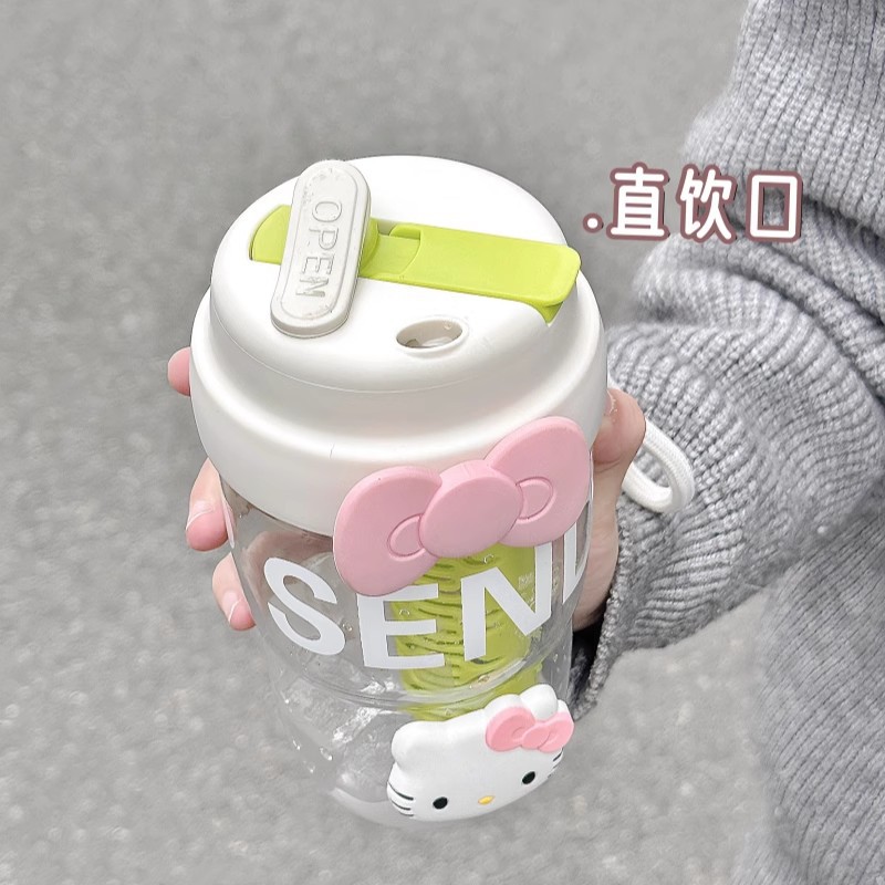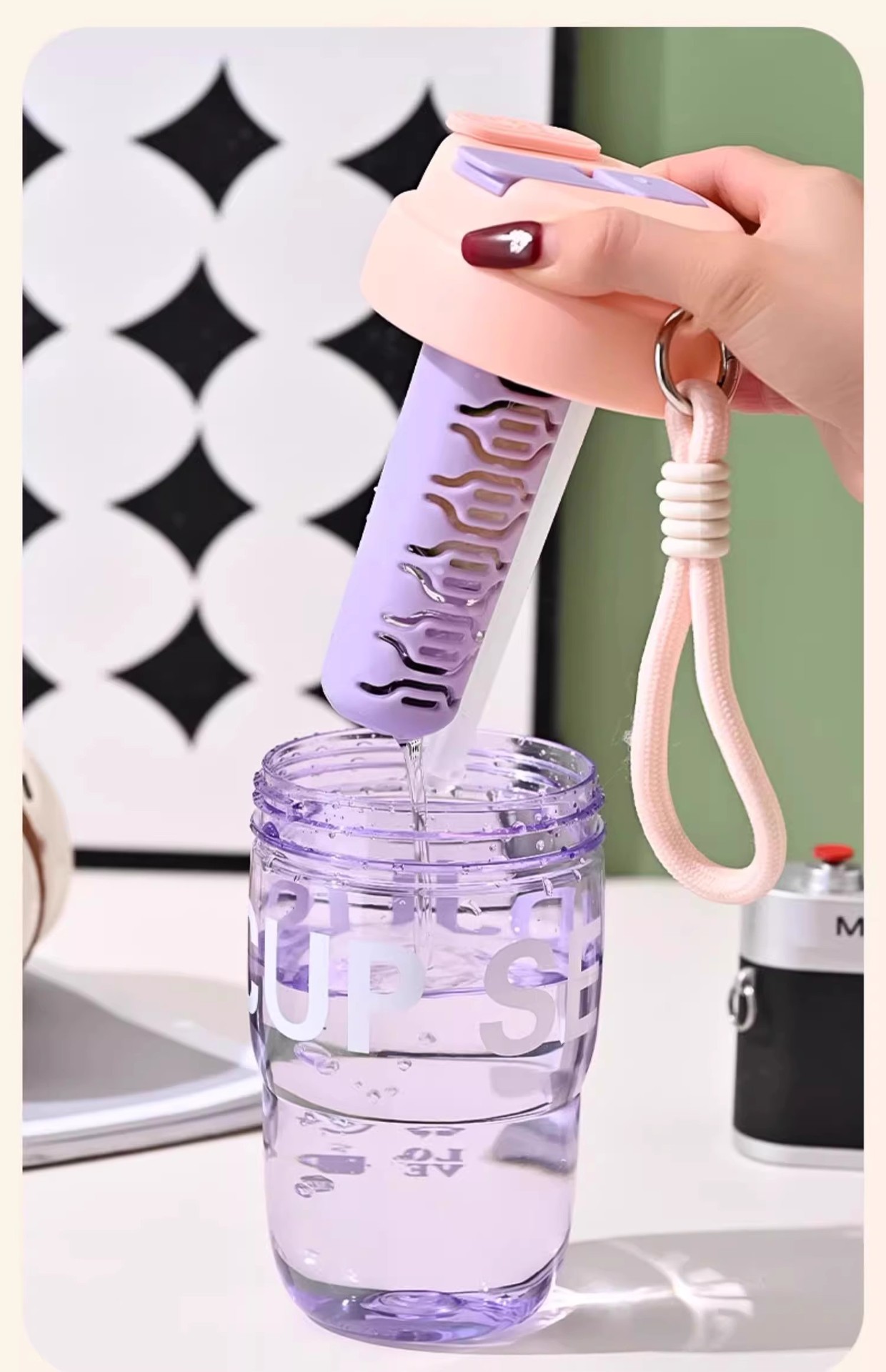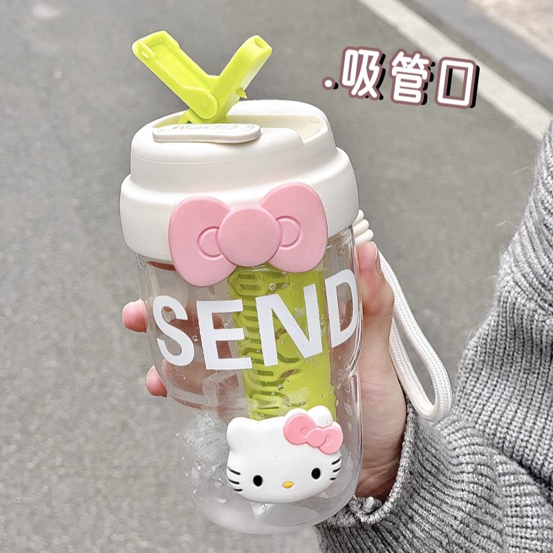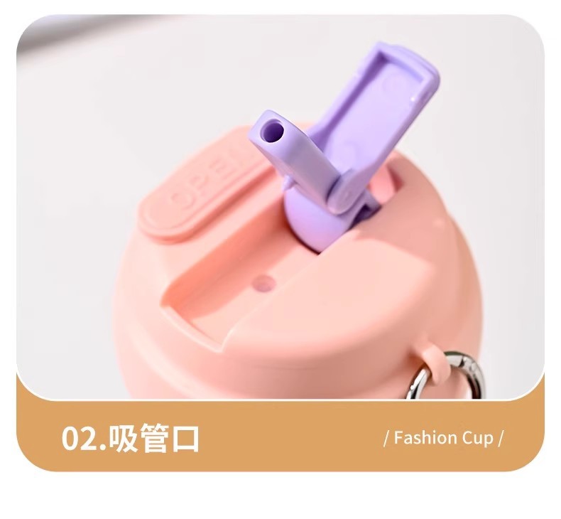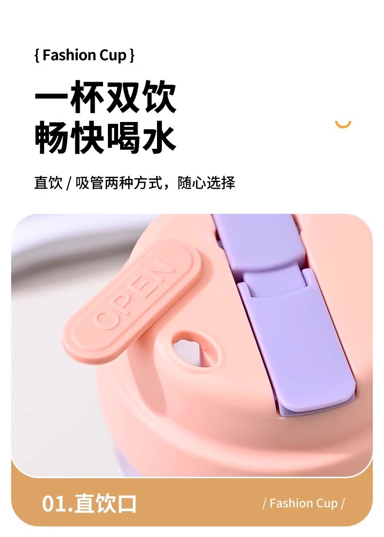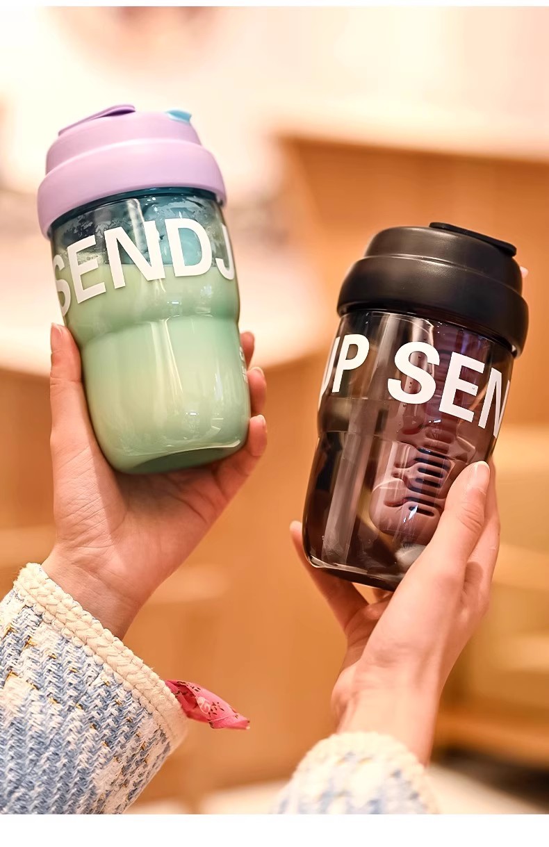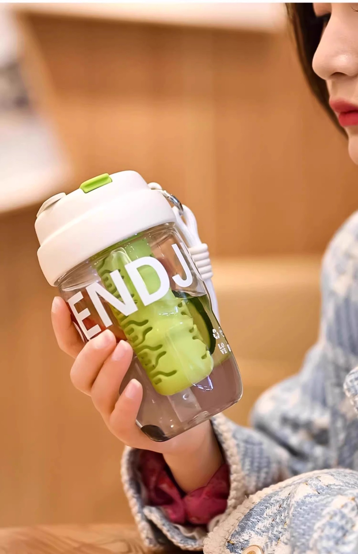 高颜值带吸管水杯户外运动耐摔塑料杯网红韩版学生便携双饮随行杯