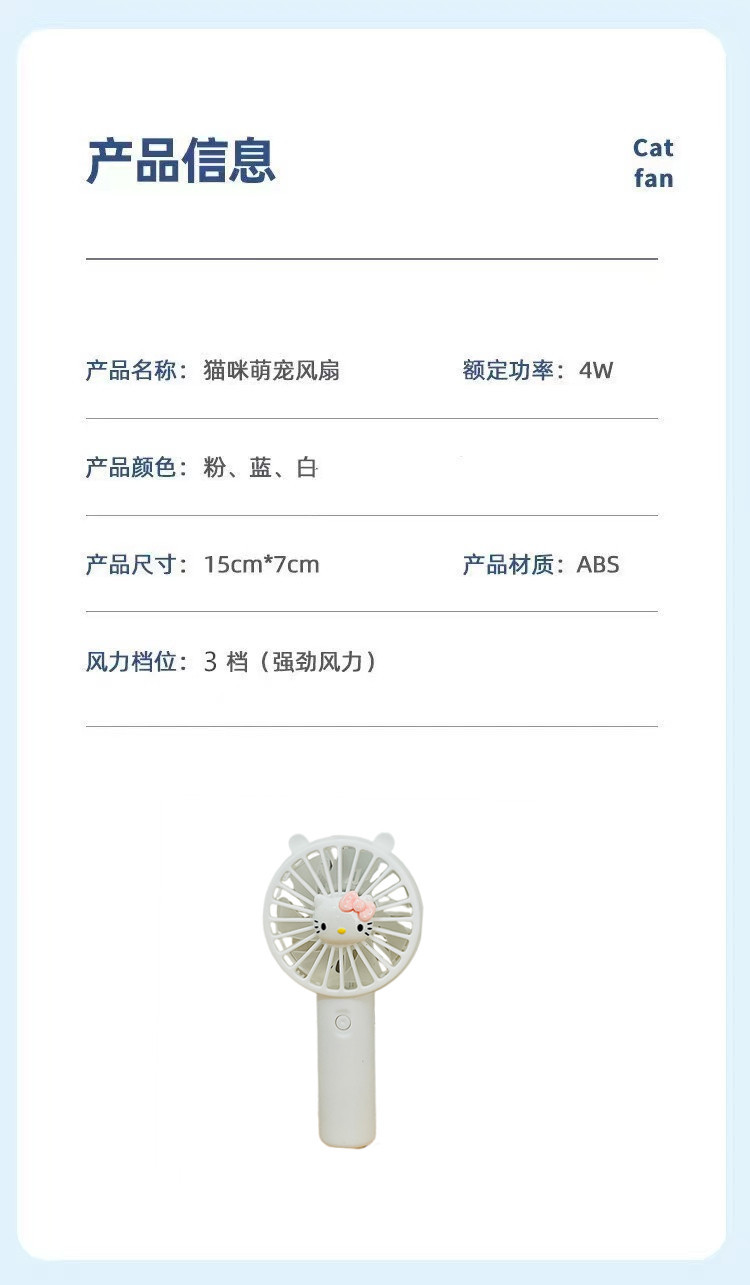 HelloKitty可爱卡通手持风扇3档大风力静音学生儿童便携夏季电扇