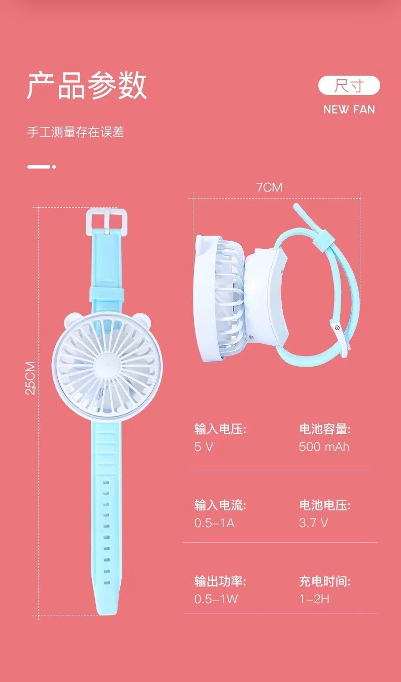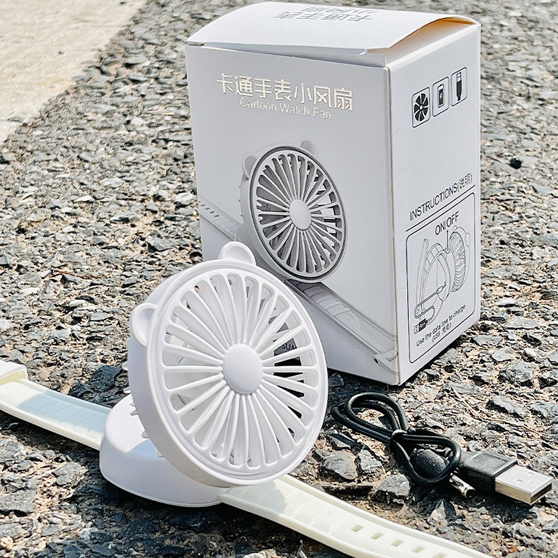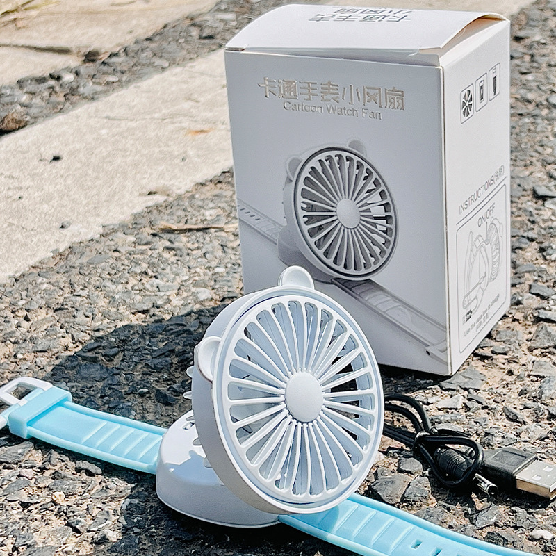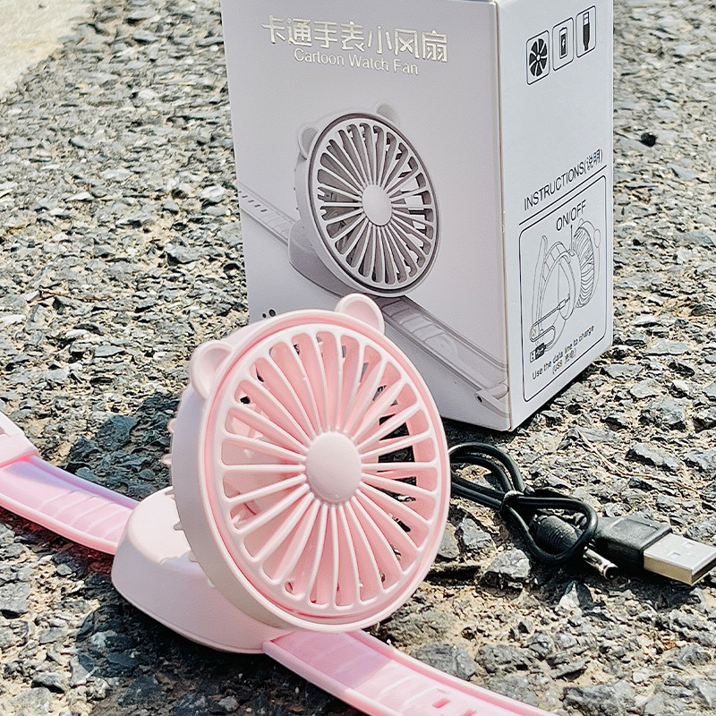 创意可爱卡通手表风扇usb充电便携儿童学生带手上迷你电风扇批发