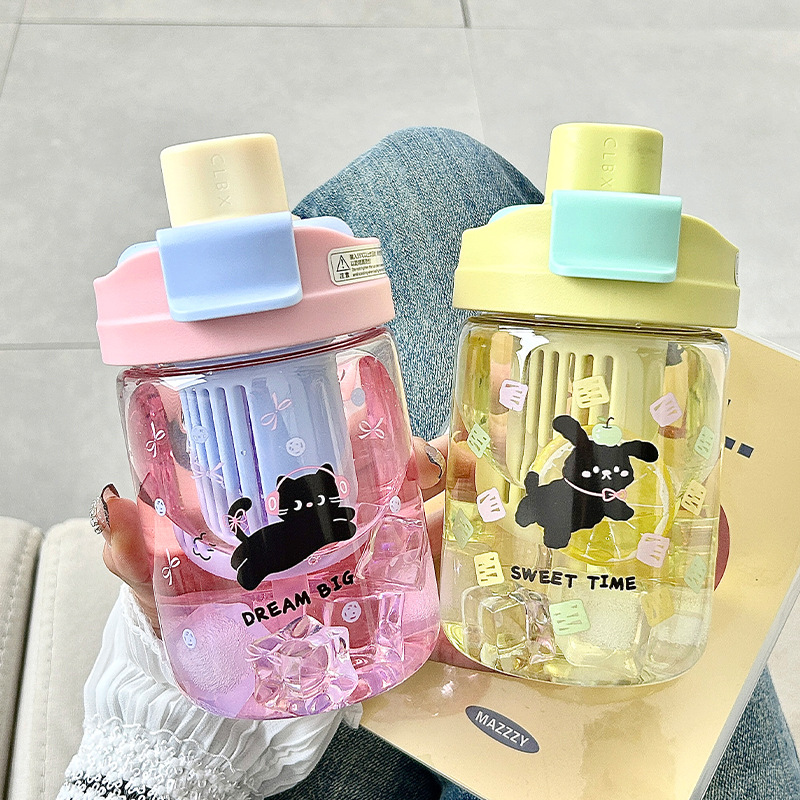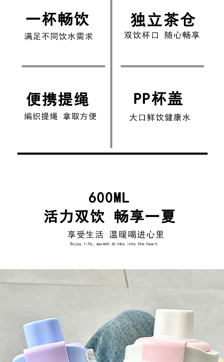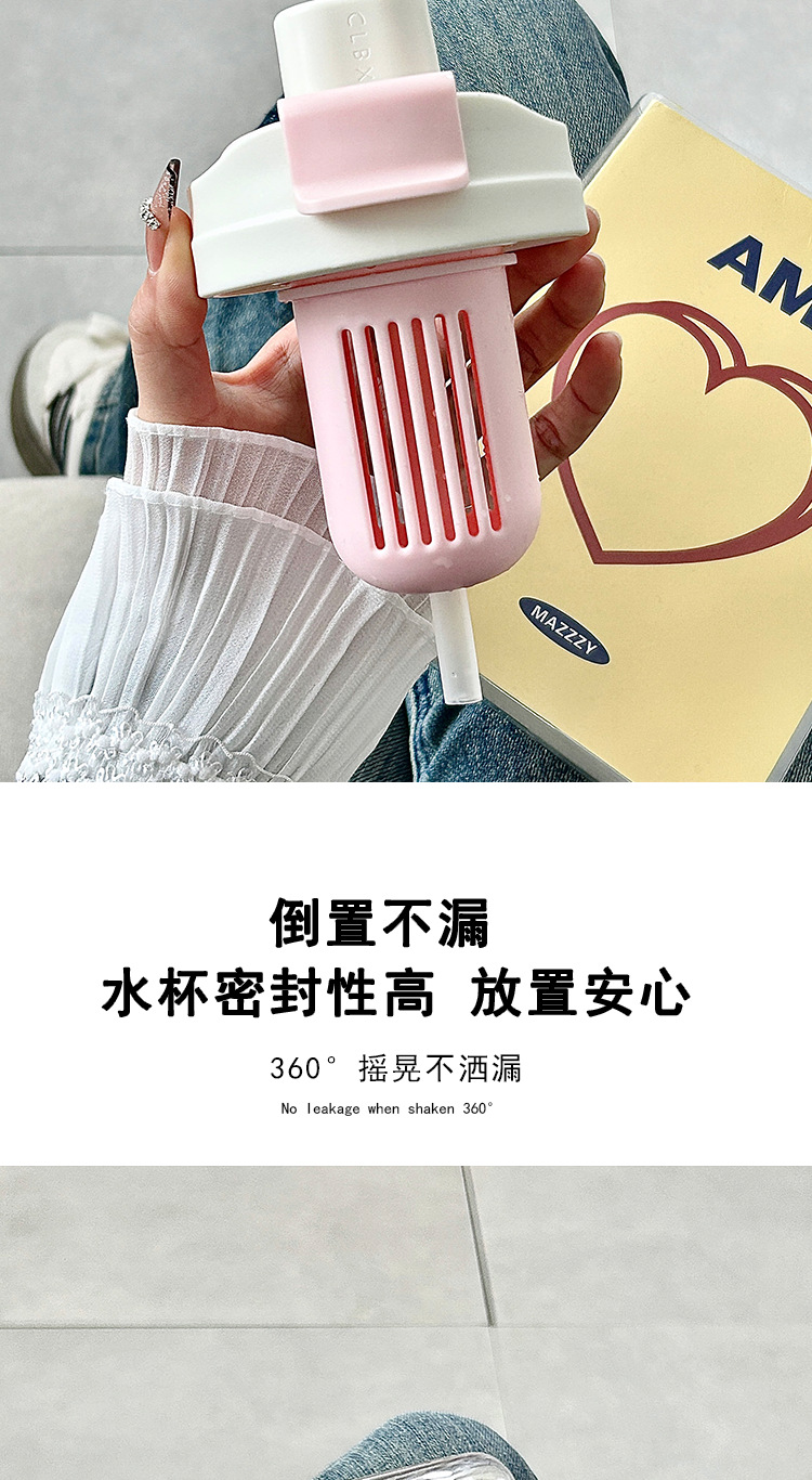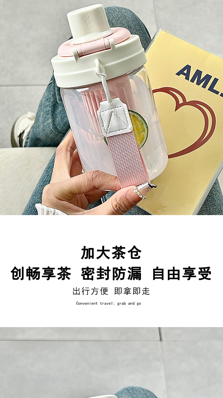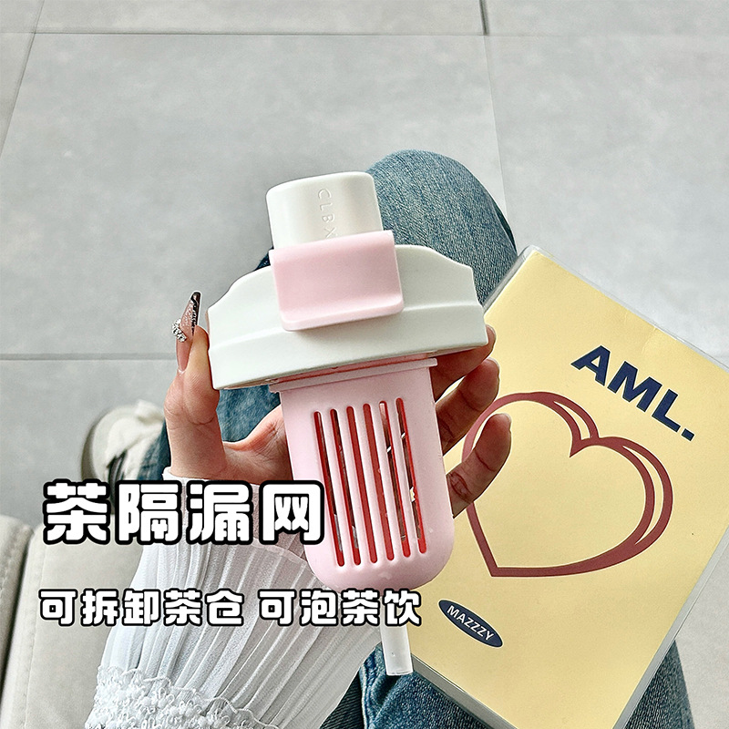 女生高颜值小巧水杯塑料吸管杯双饮带茶仓夏天可爱学生便携随手杯