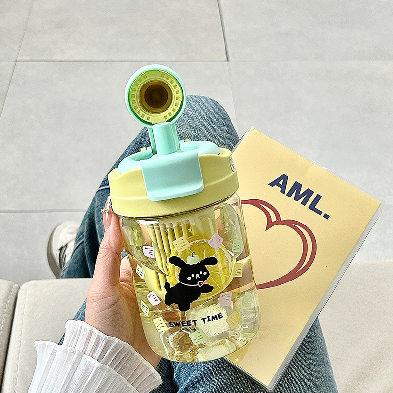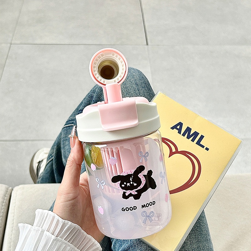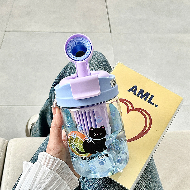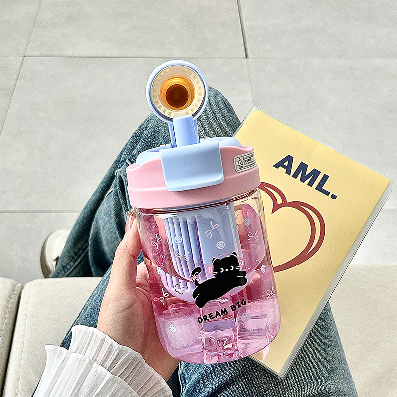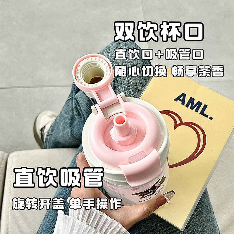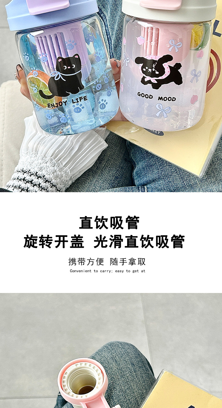 女生高颜值小巧水杯塑料吸管杯双饮带茶仓夏天可爱学生便携随手杯