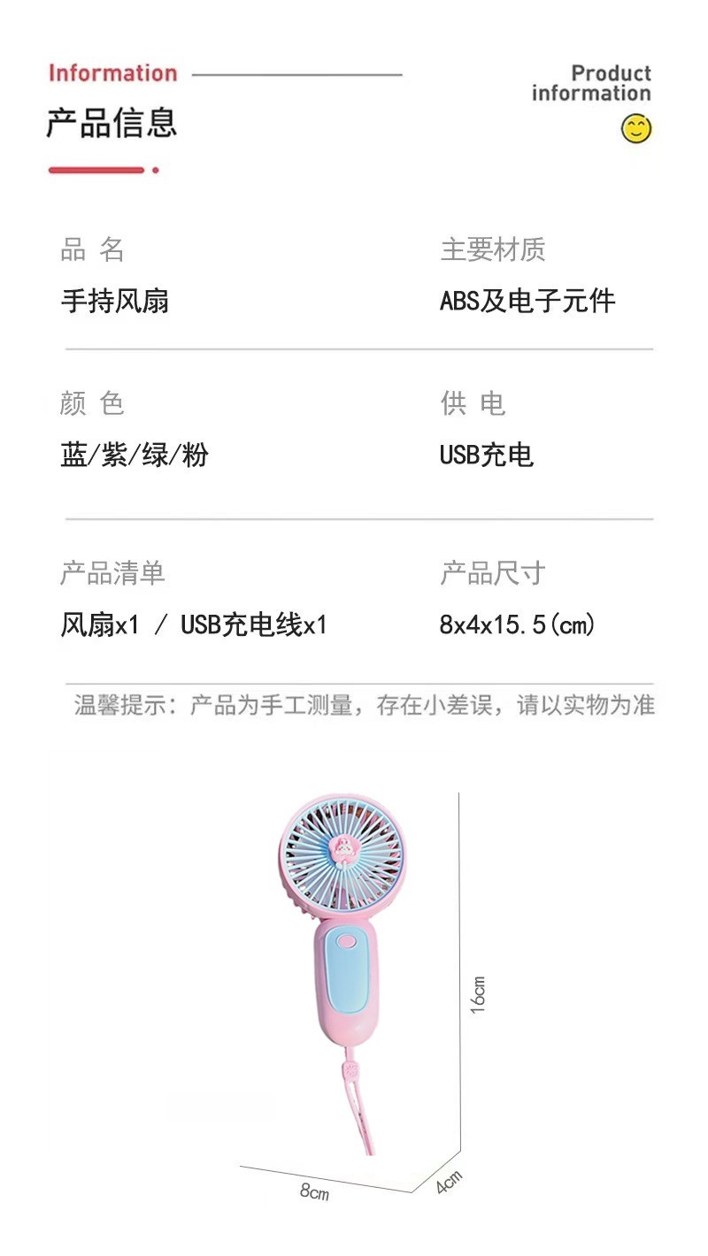 USB充电手持小风扇便携式学生户外手握迷你电风扇1档大风力扇风机