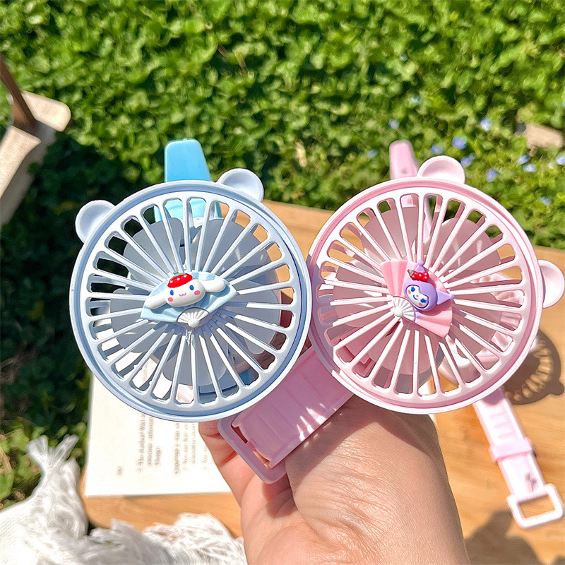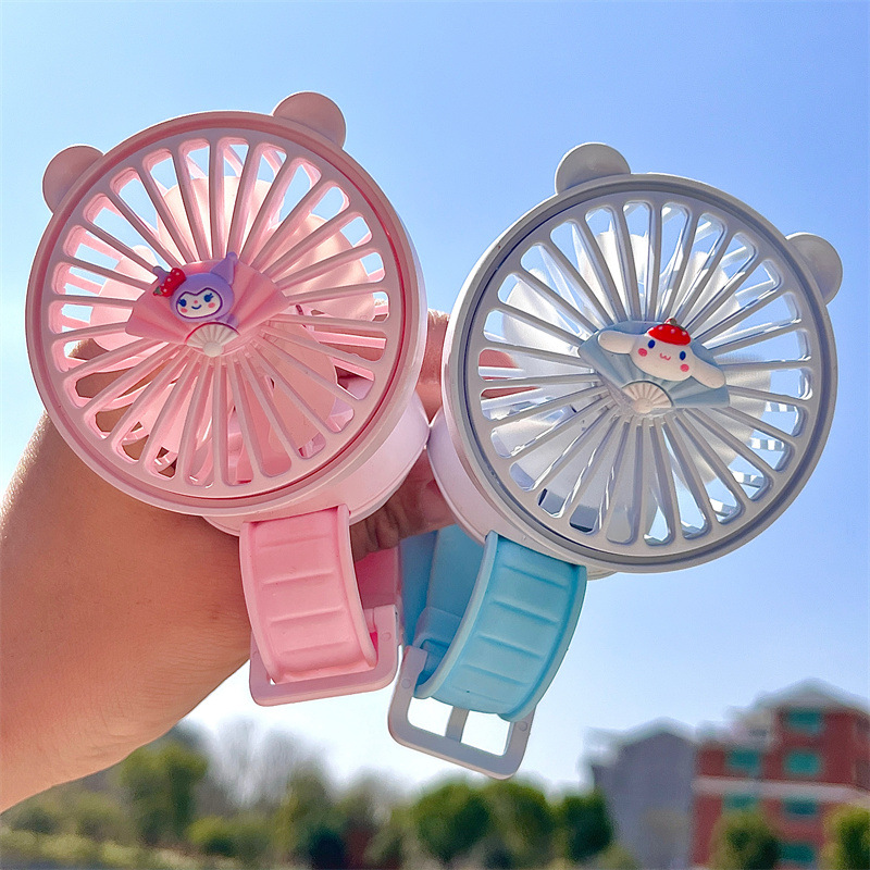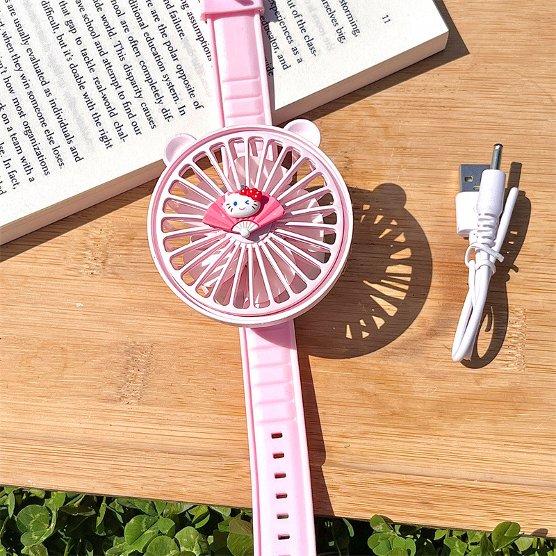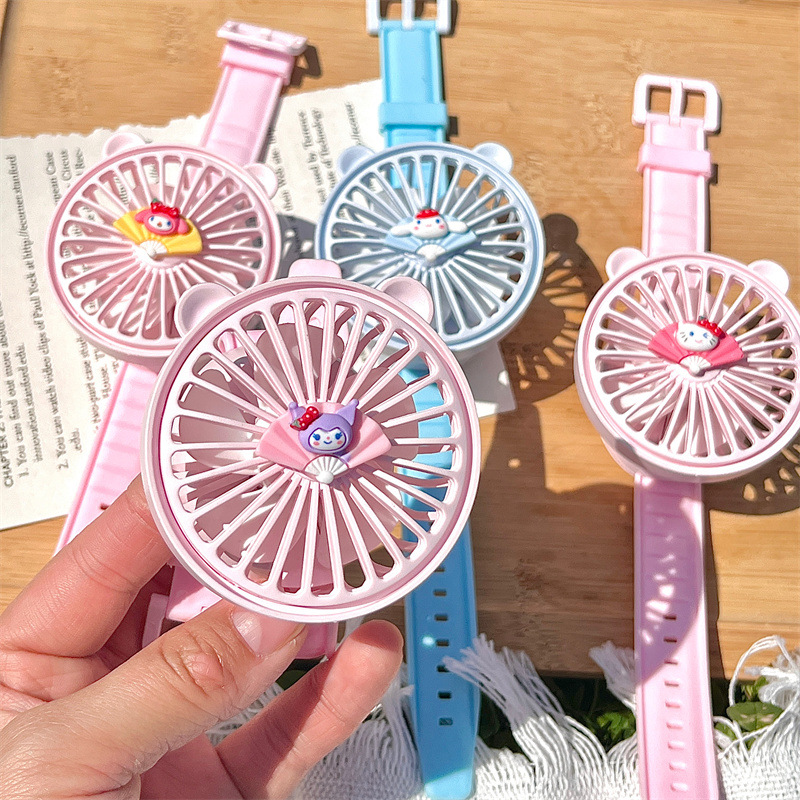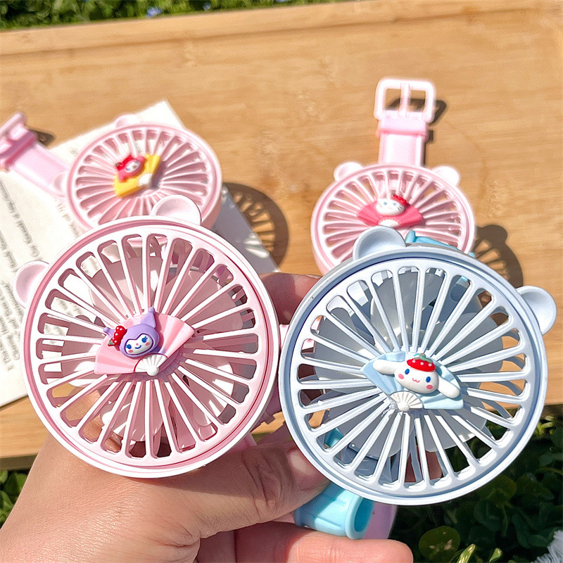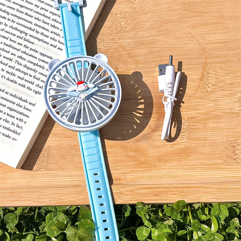 新款可爱玉桂狗扇子手表风扇迷你便携usb充电手环手腕式风扇批发