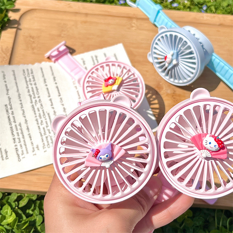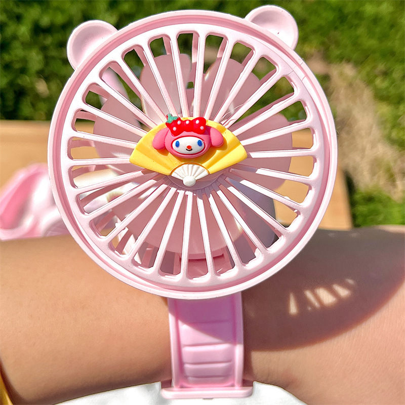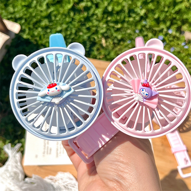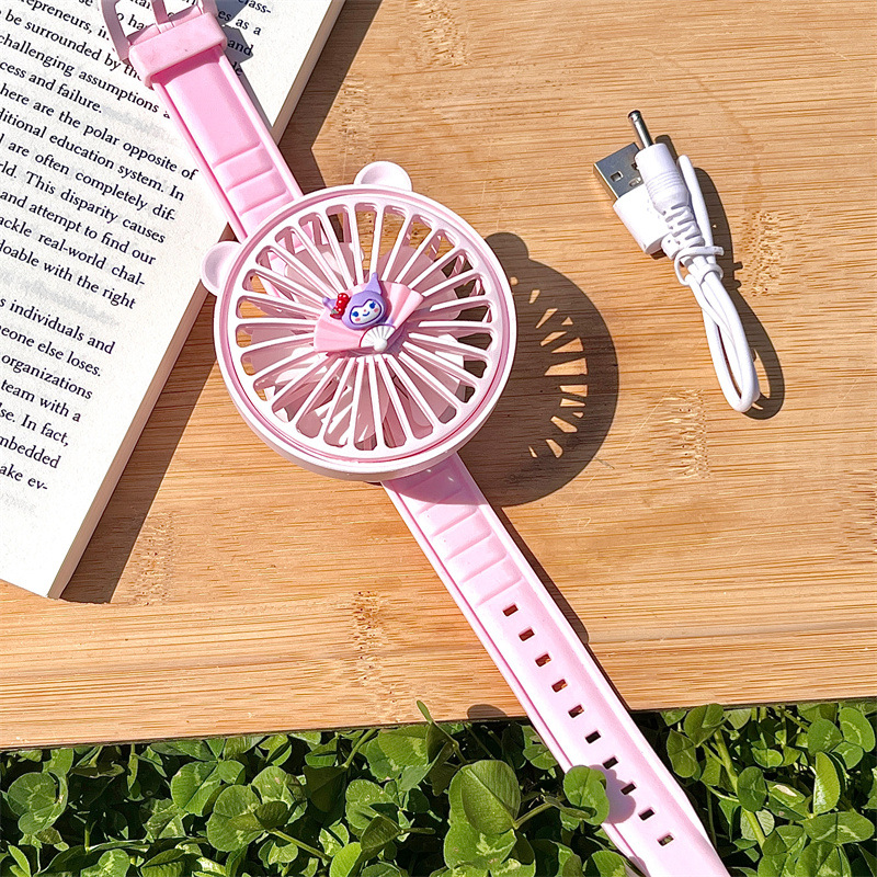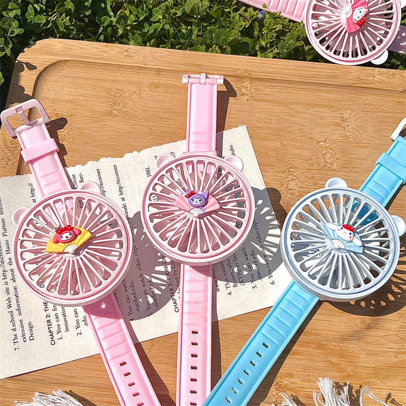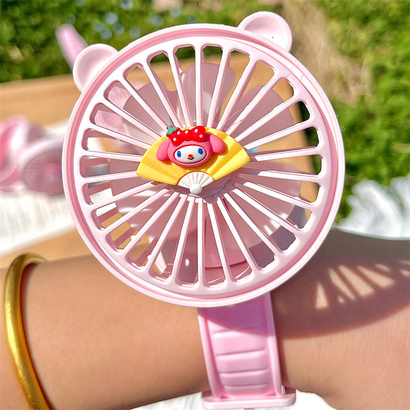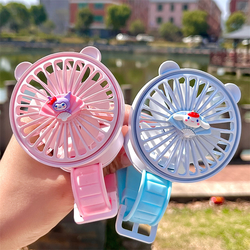 新款可爱玉桂狗扇子手表风扇迷你便携usb充电手环手腕式风扇批发