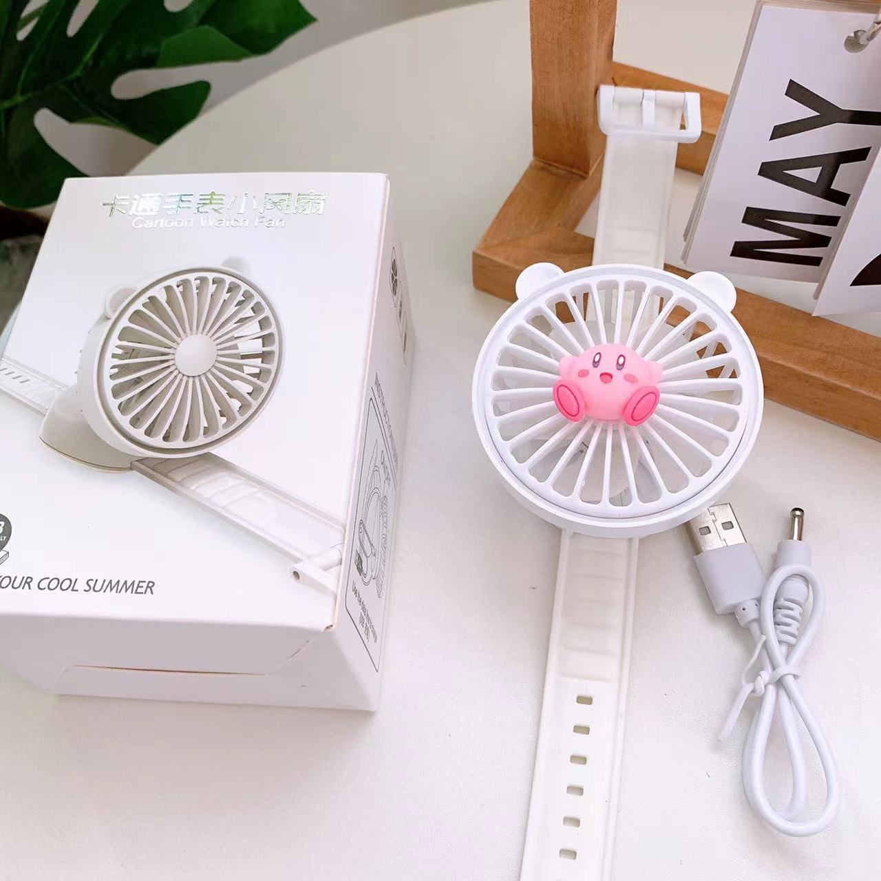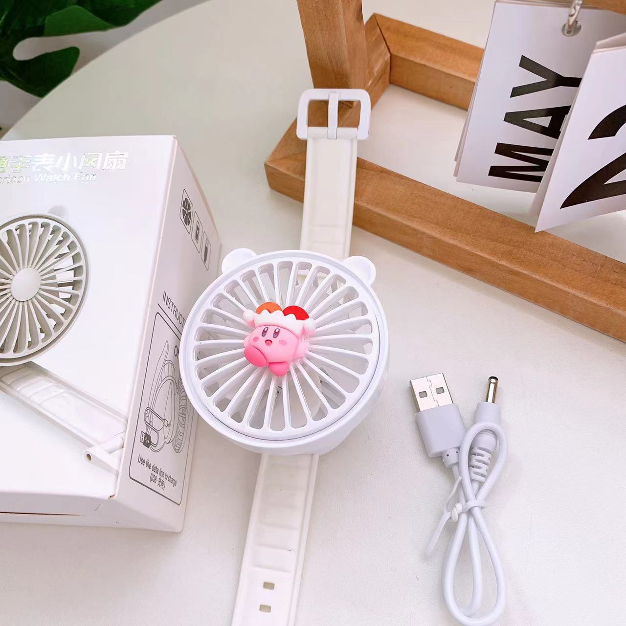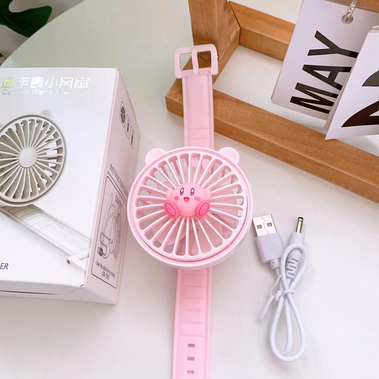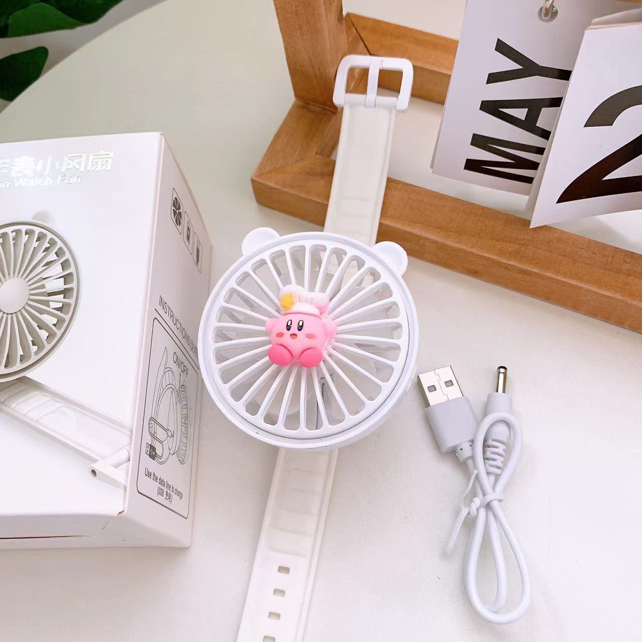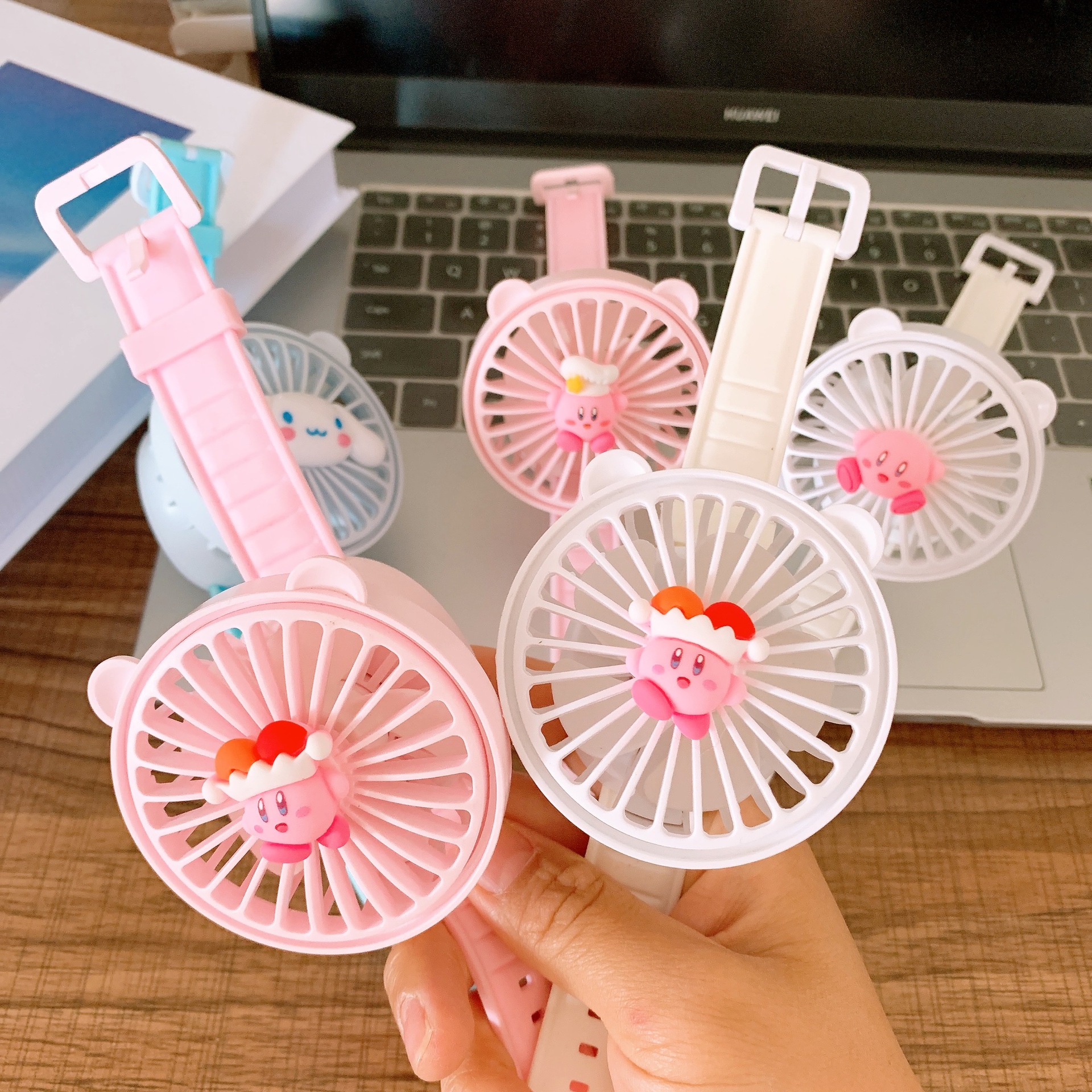 新款可爱星之卡比手表风扇随身便携大风力超静音宿舍小型电扇充电