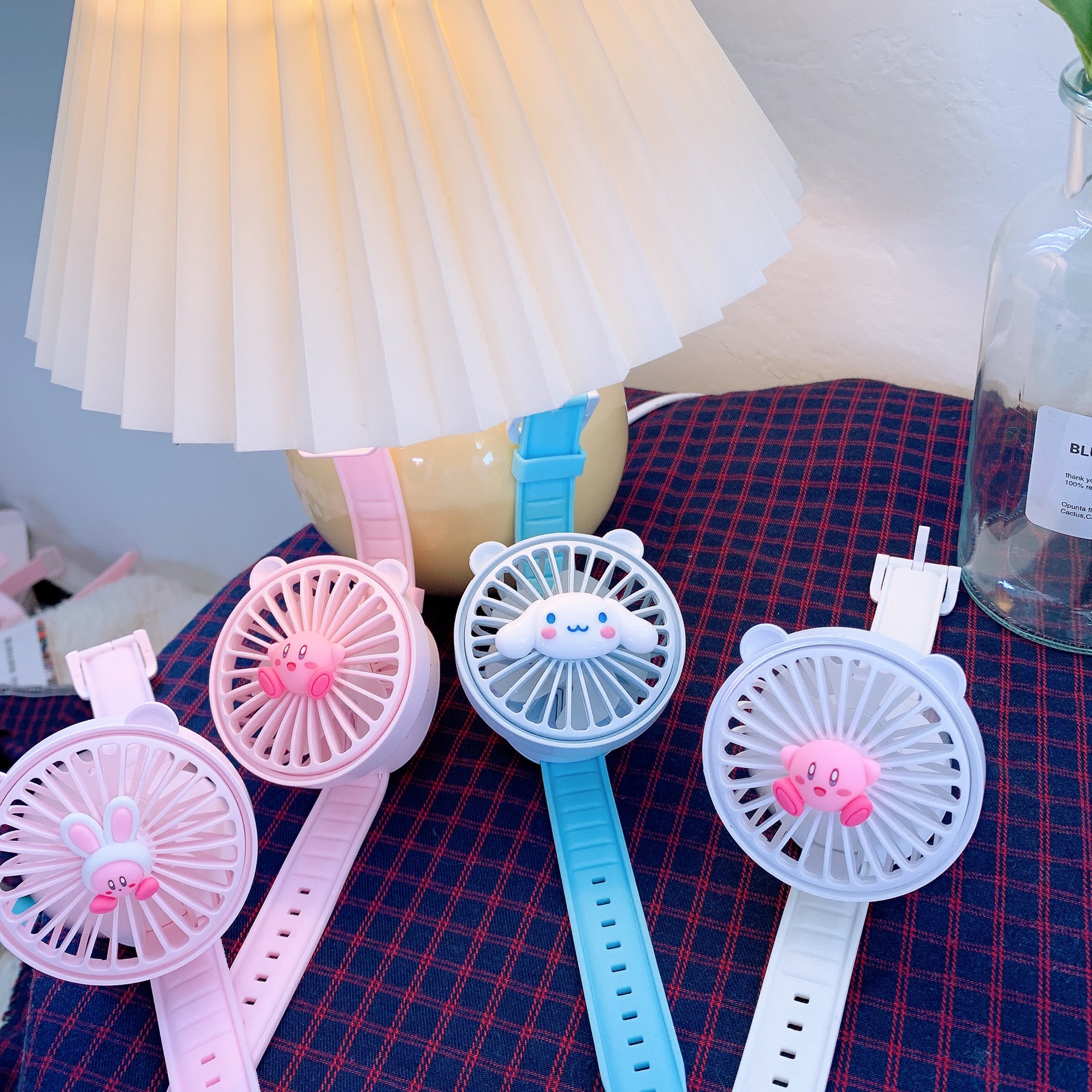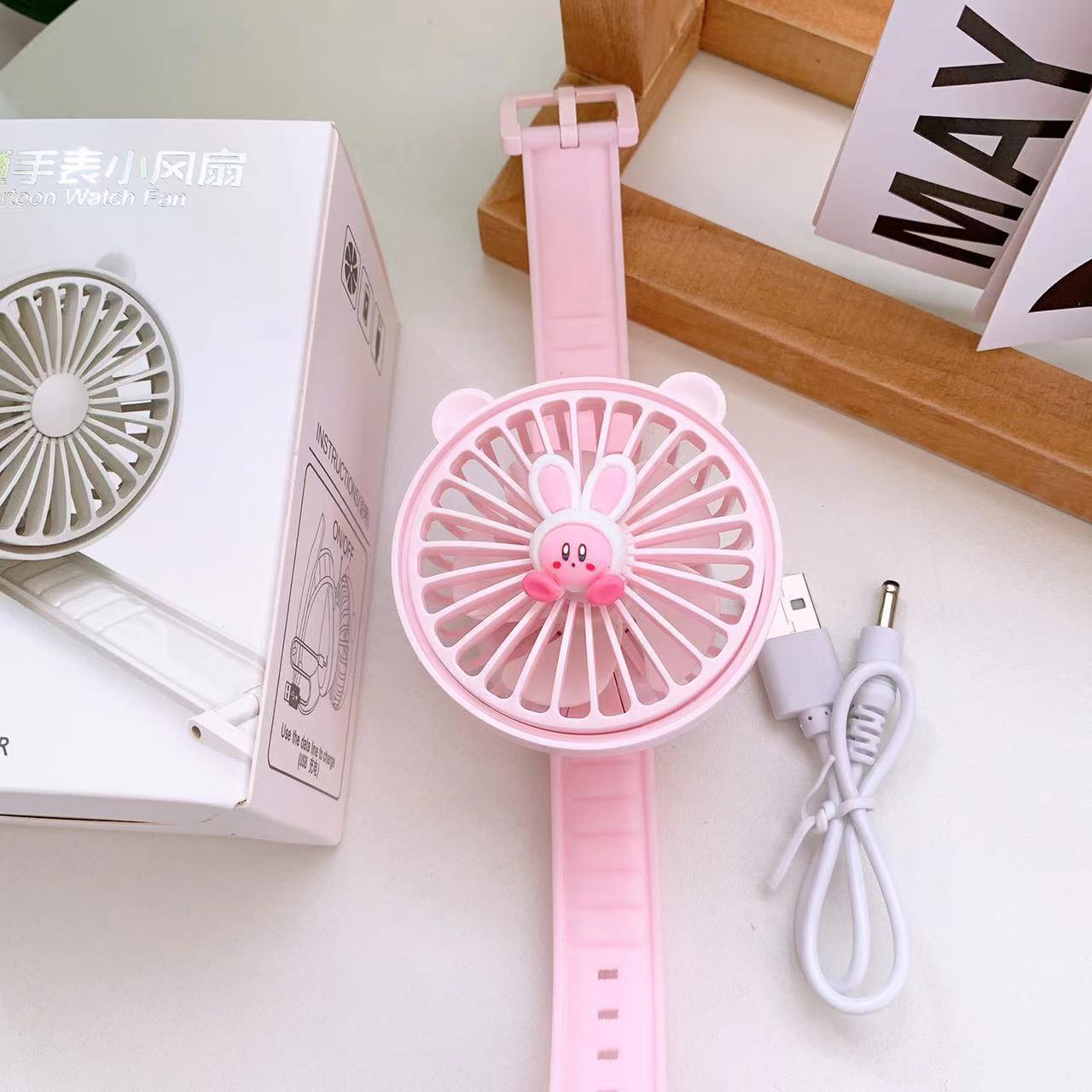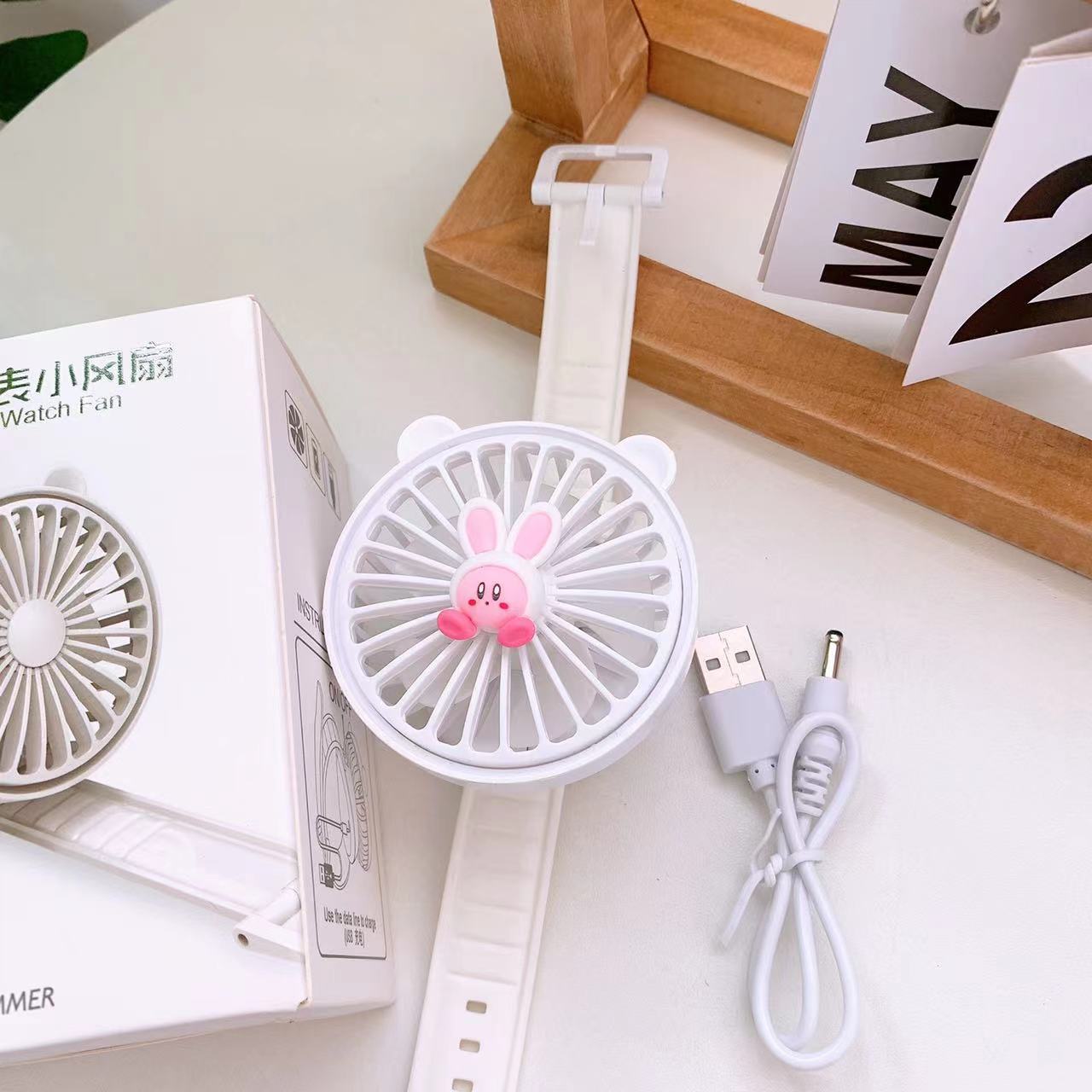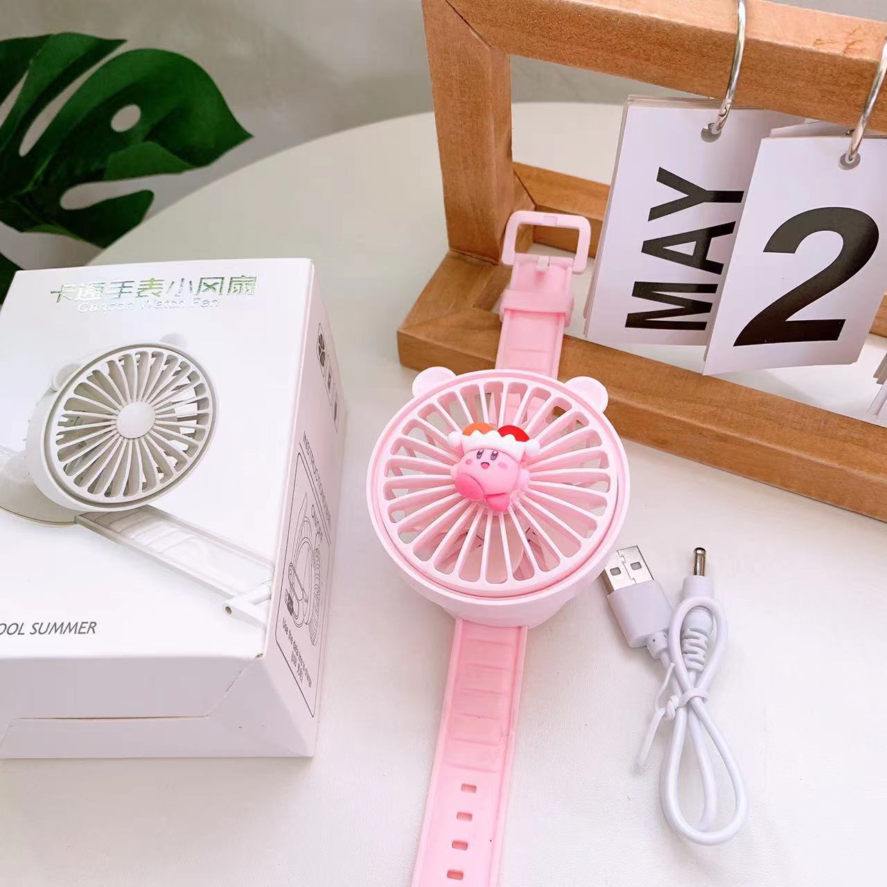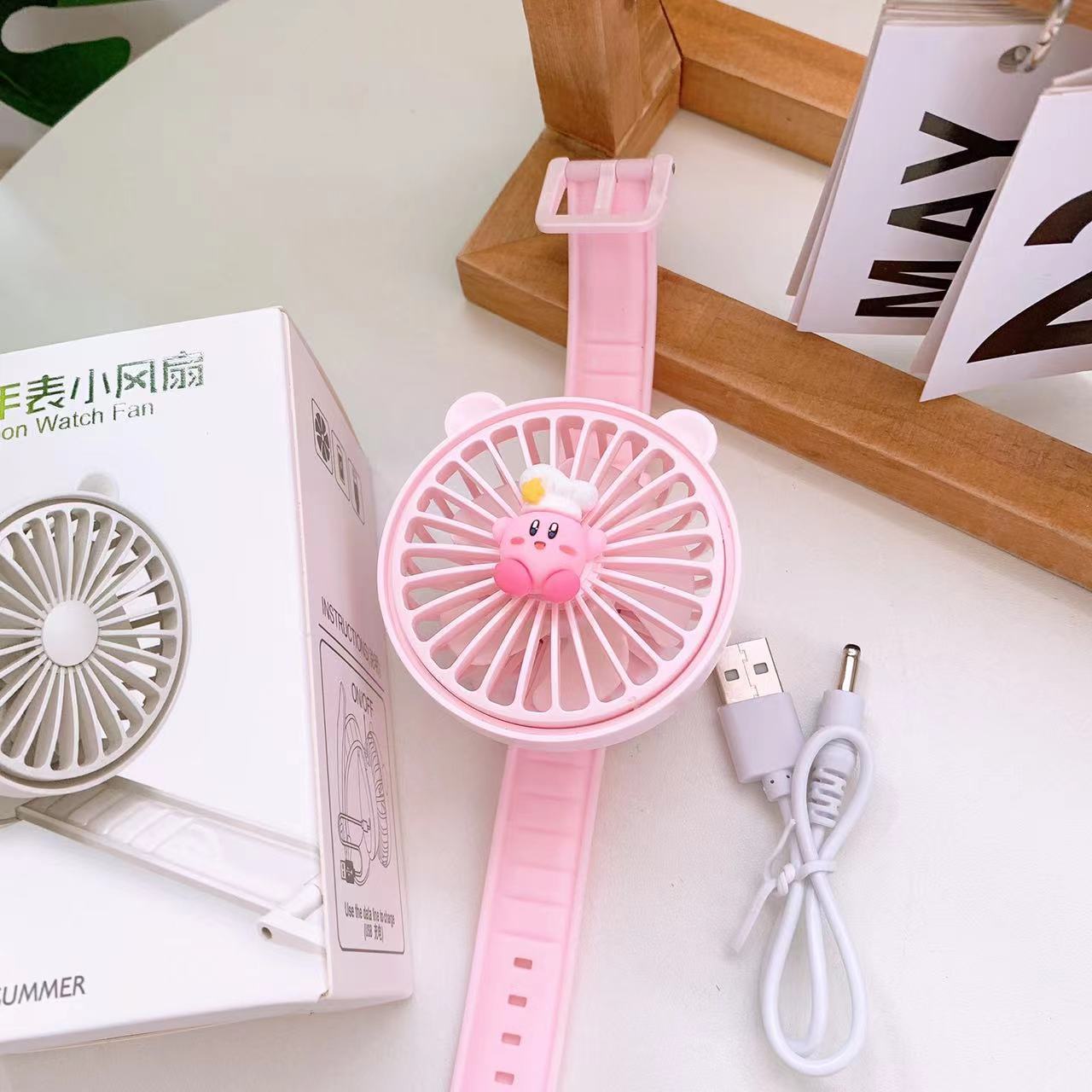 新款可爱星之卡比手表风扇随身便携大风力超静音宿舍小型电扇充电