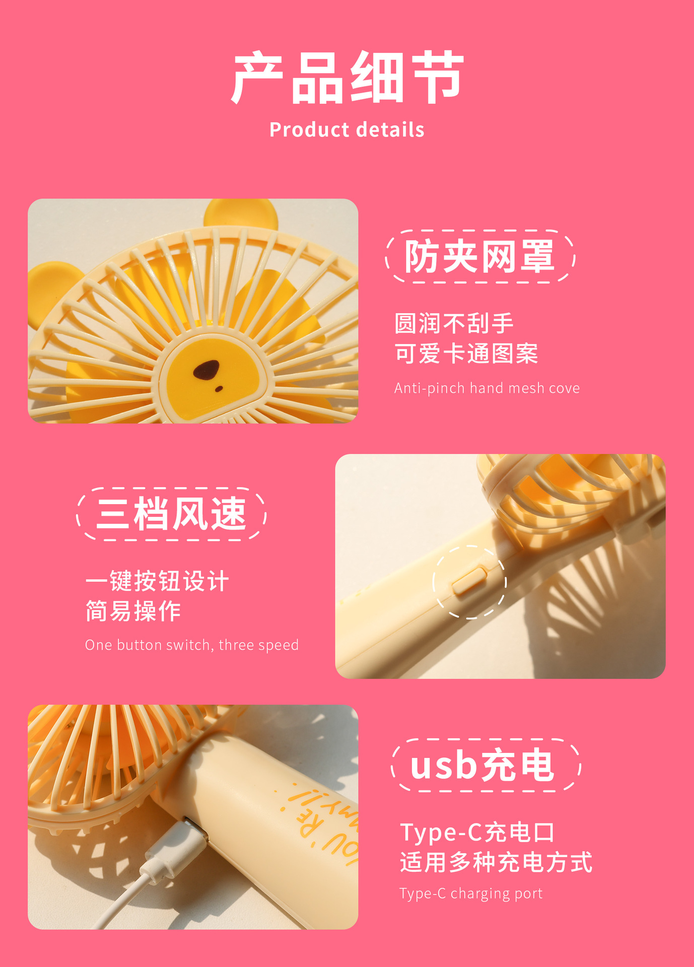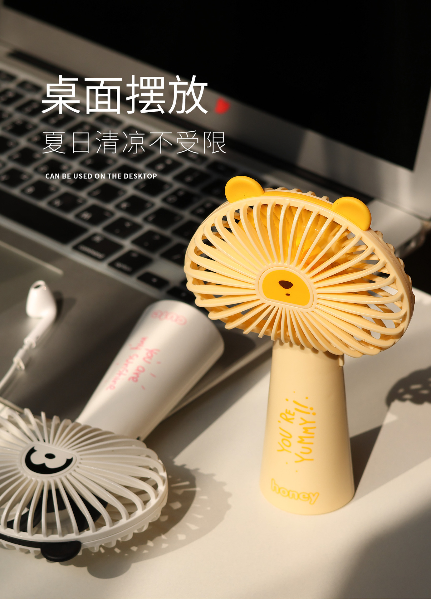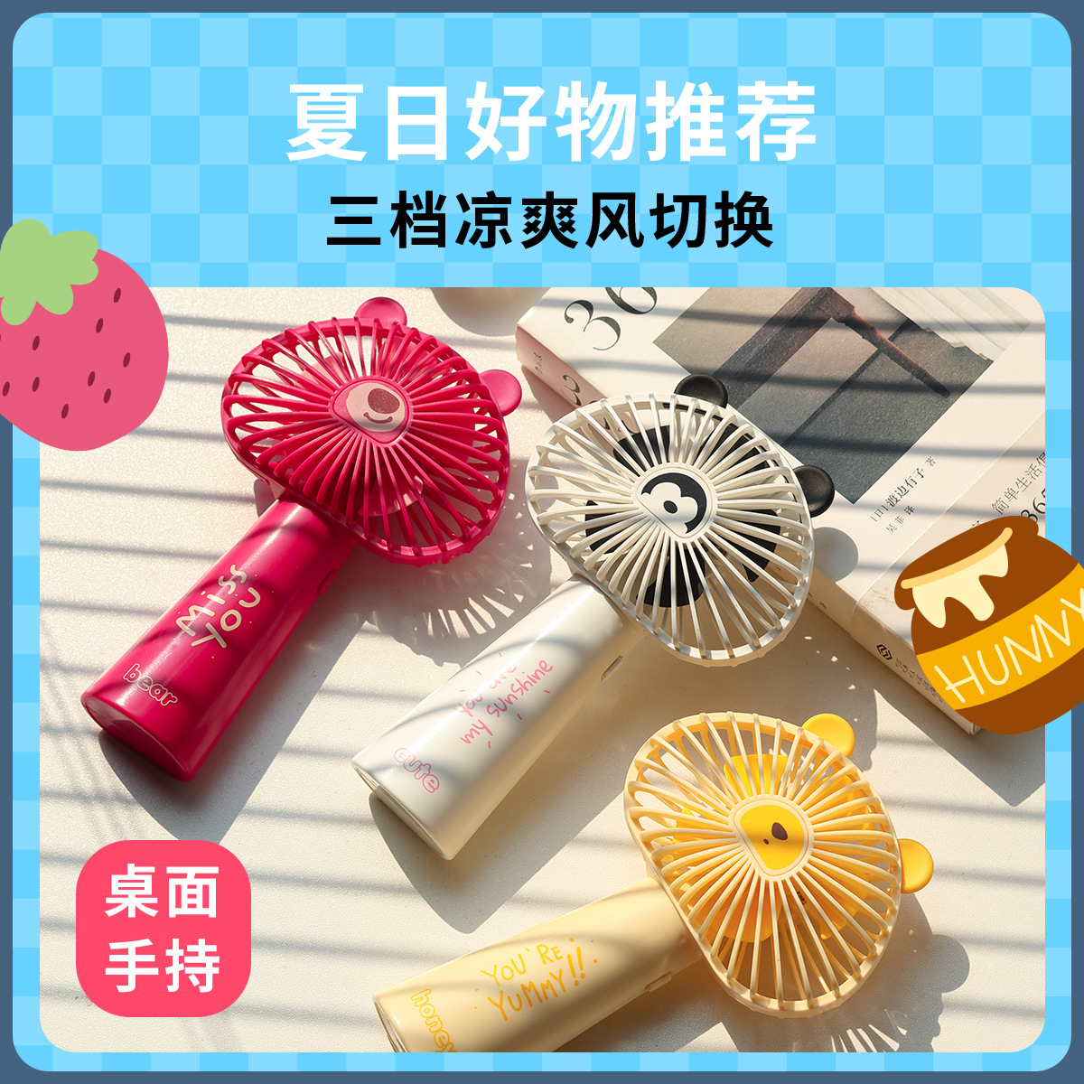 新款可爱手持小风扇三档大风力USB充电式桌面小风扇儿童学生礼品