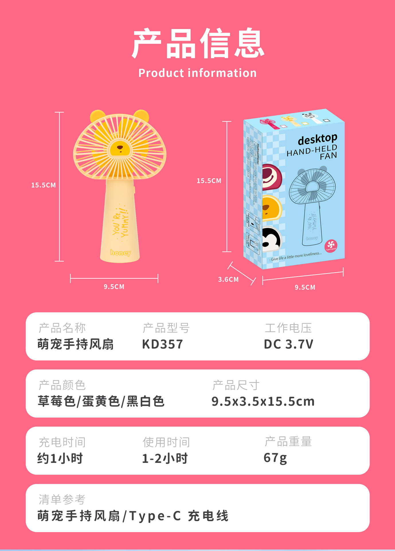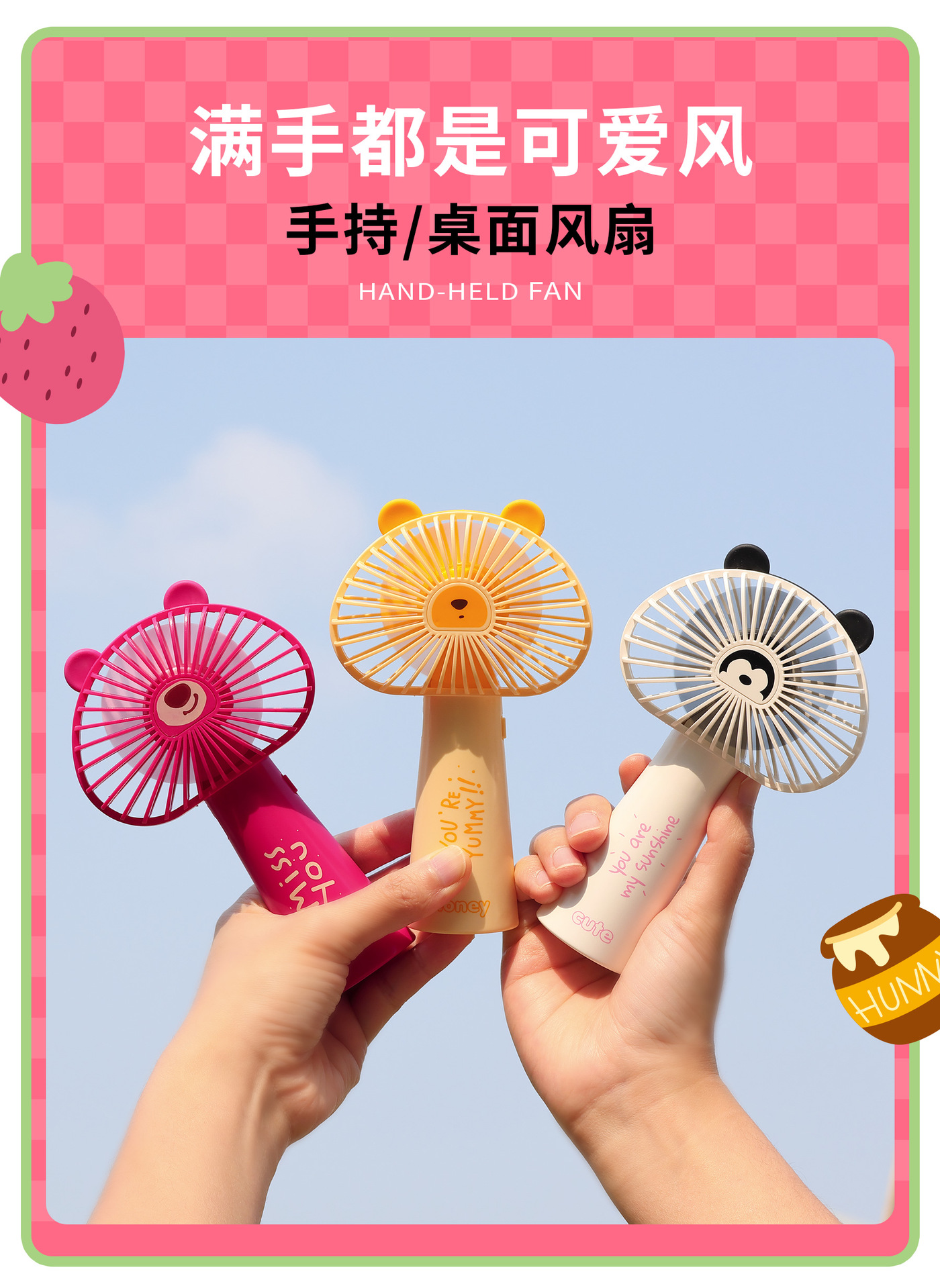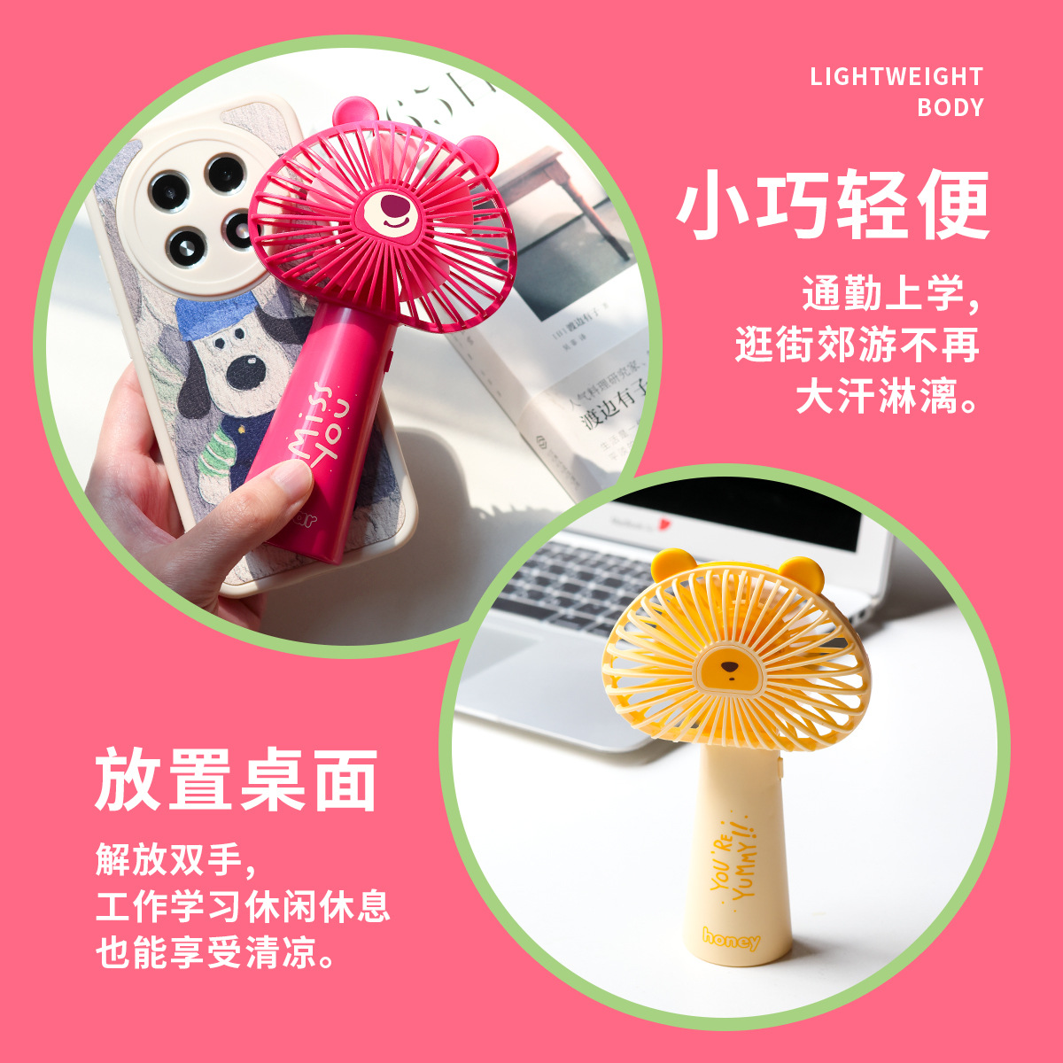 新款可爱手持小风扇三档大风力USB充电式桌面小风扇儿童学生礼品