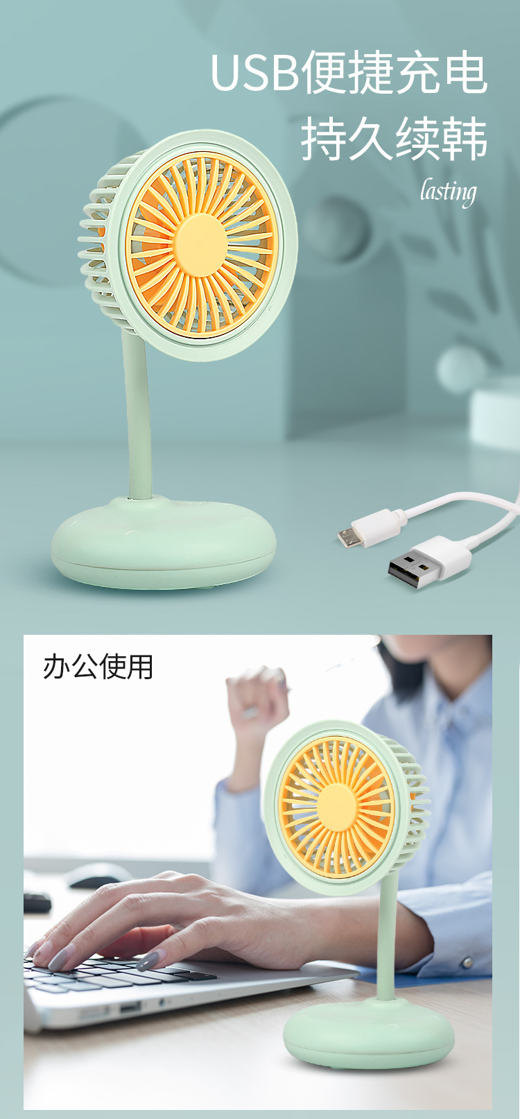 新款桌面迷你小风扇USB充电式三档大风力学生宿舍静音台式小风扇