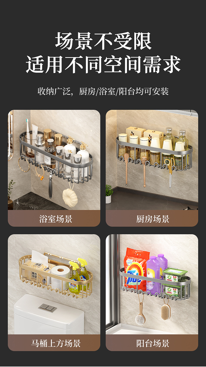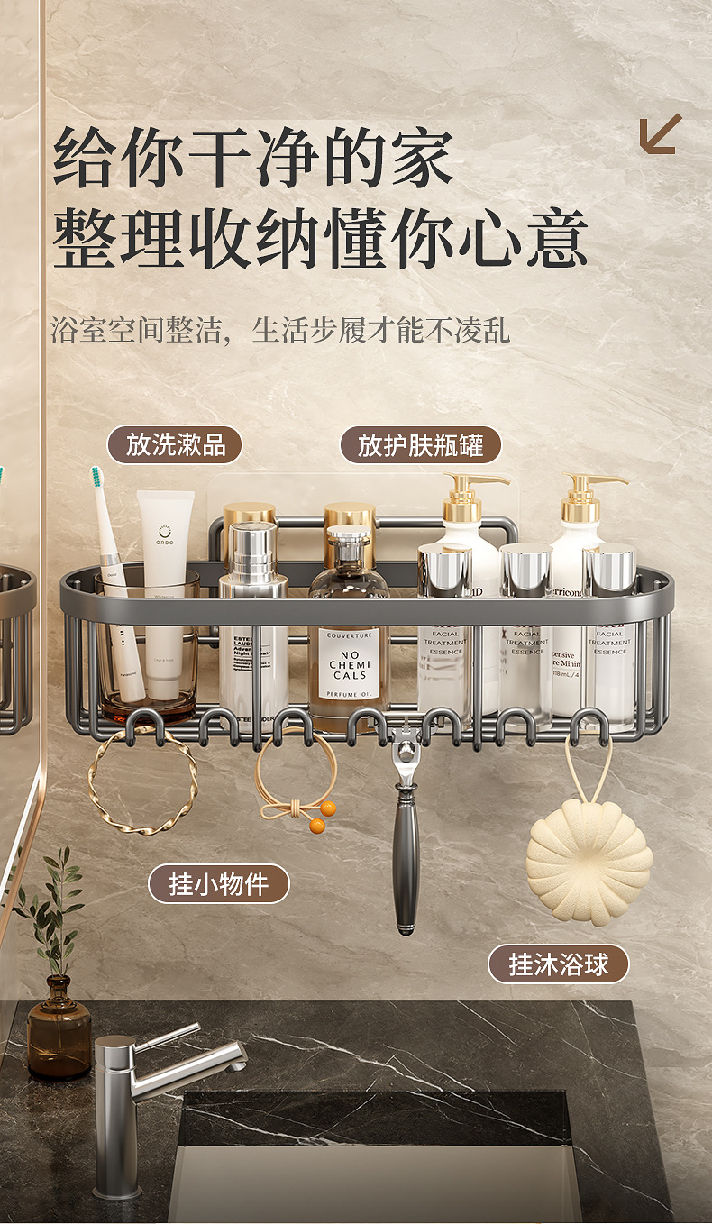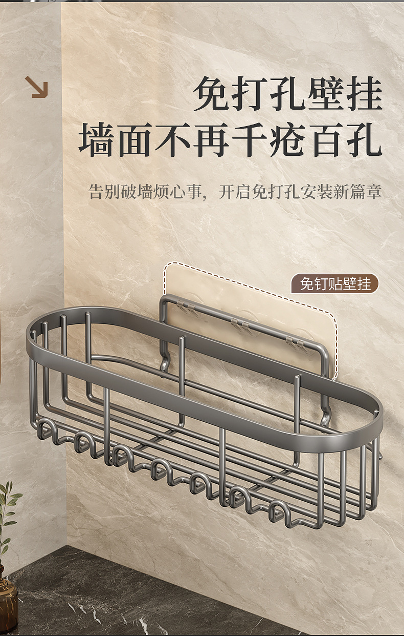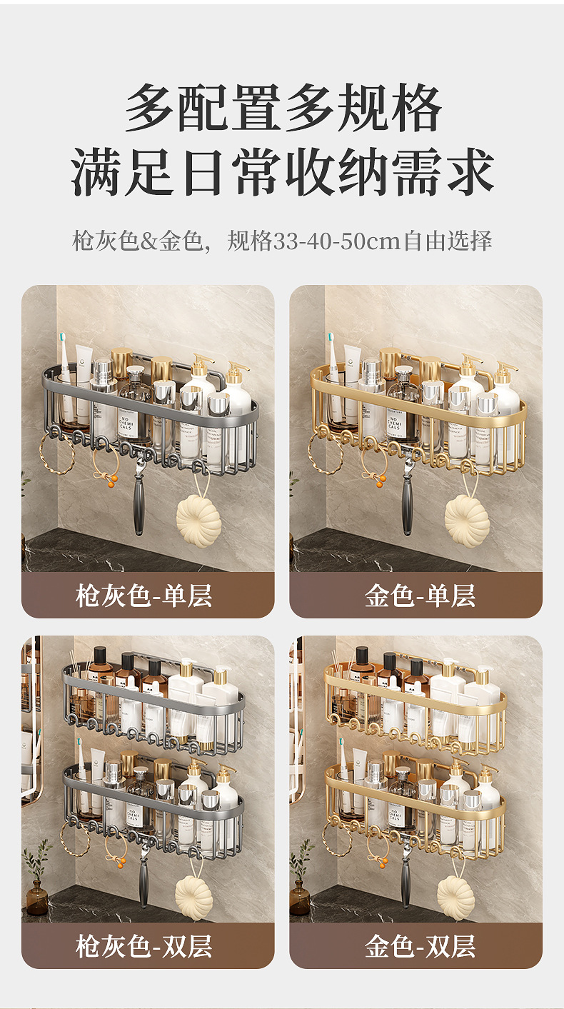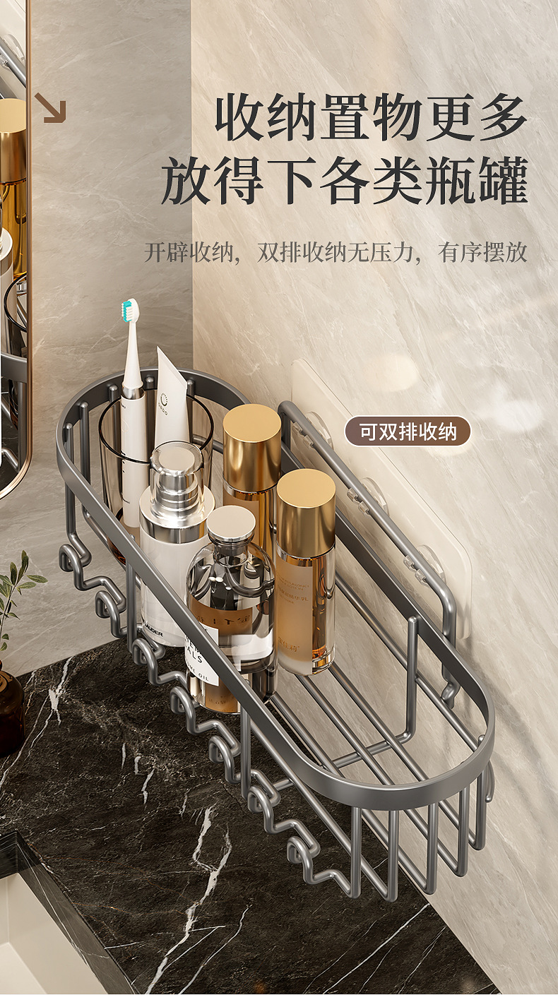 免打孔浴室置物架壁挂洗手间化妆品收纳架跨境批发厕所卫生间挂钩