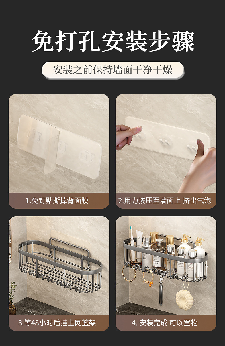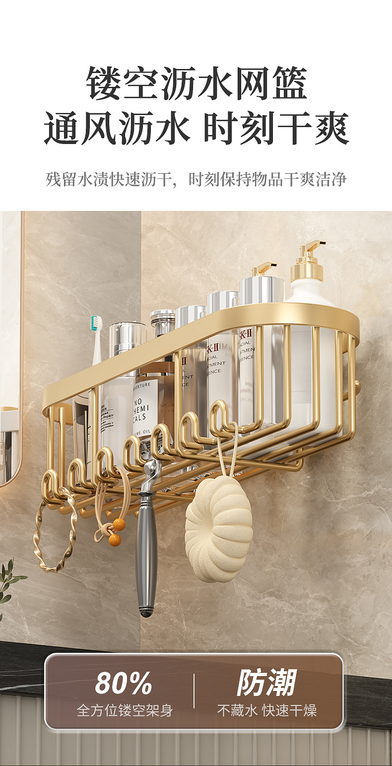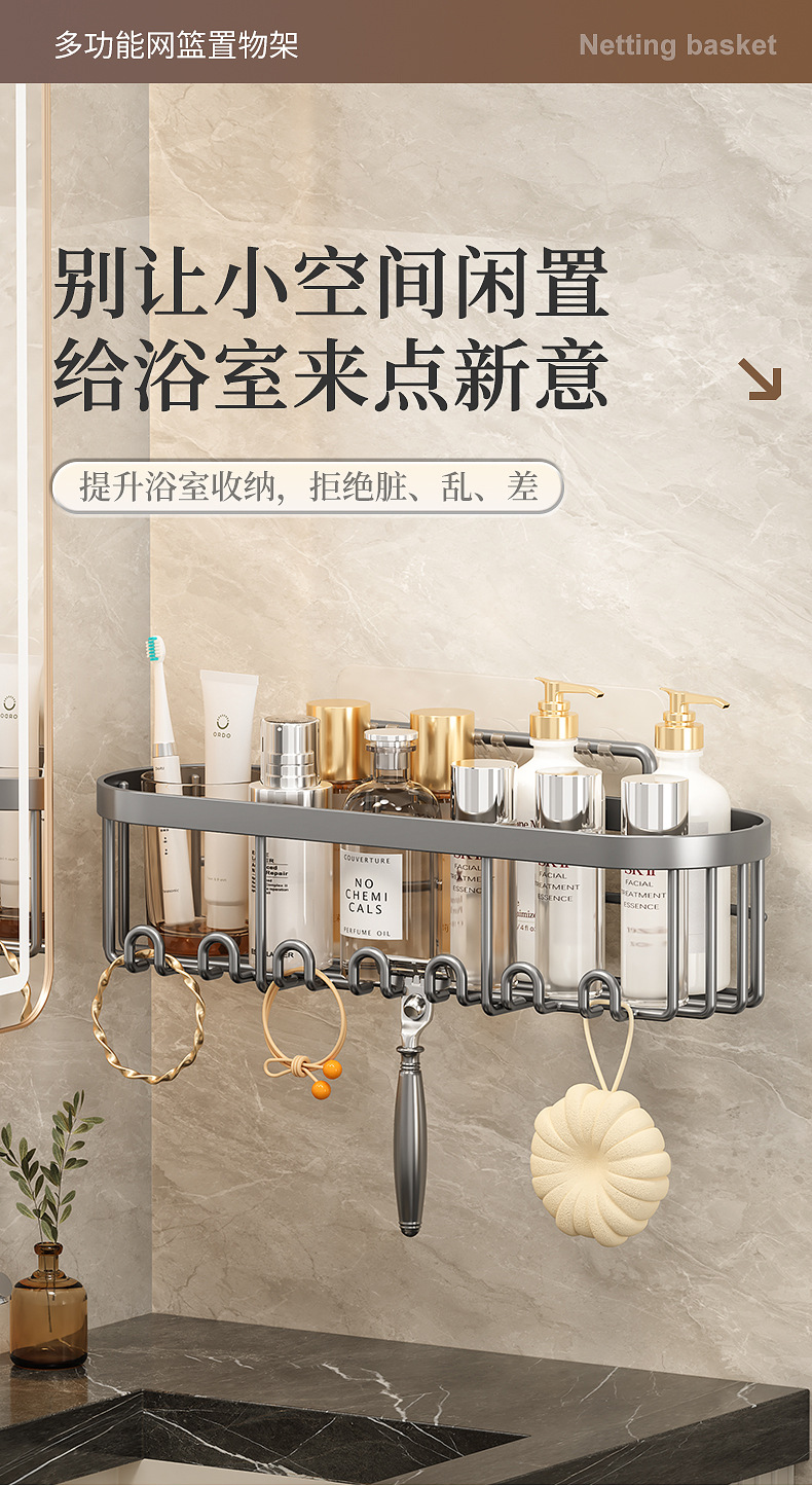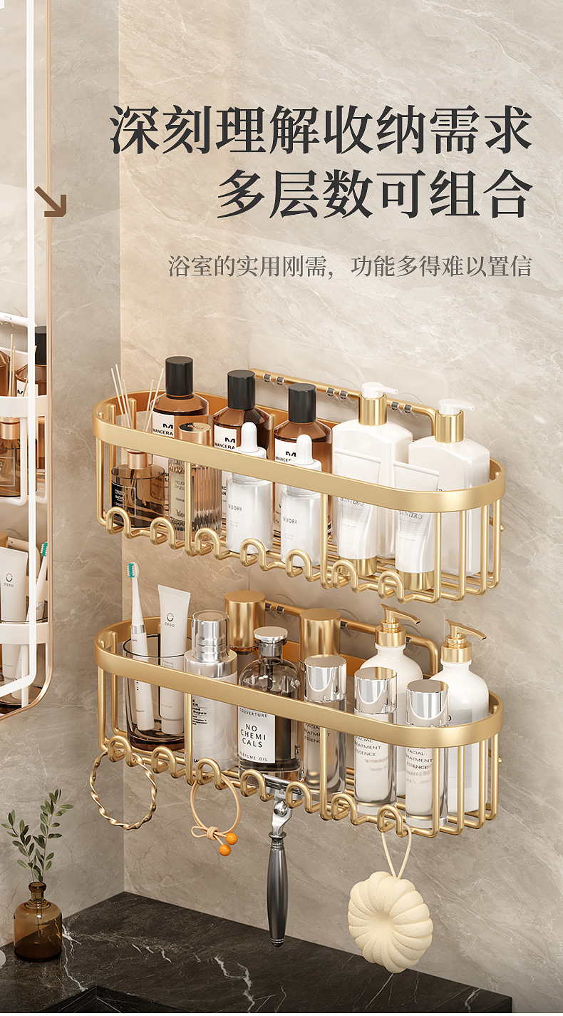免打孔浴室置物架壁挂洗手间化妆品收纳架跨境批发厕所卫生间挂钩