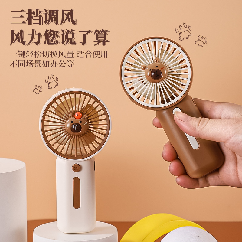 跨境新款手持小风扇USB充电三档位迷你风扇可爱豚鼠儿童礼品风扇
