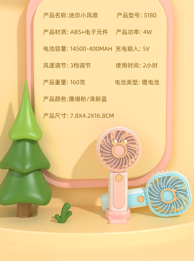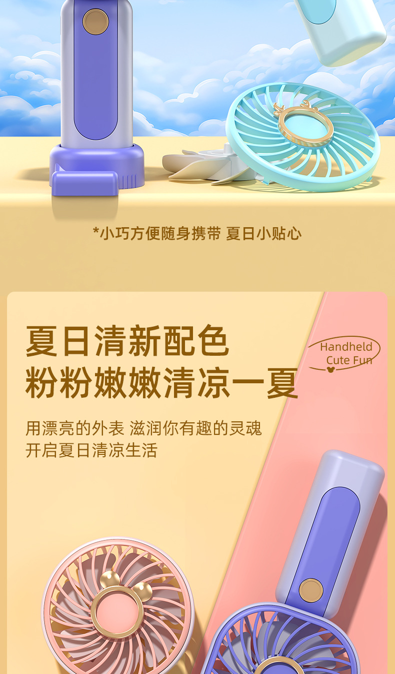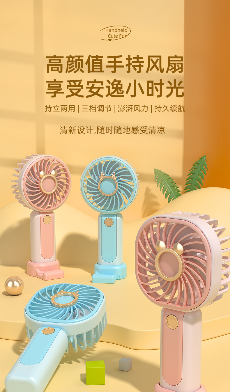 跨境新款手持风扇USB充电式带底座学生户外便携式迷你小风扇礼品