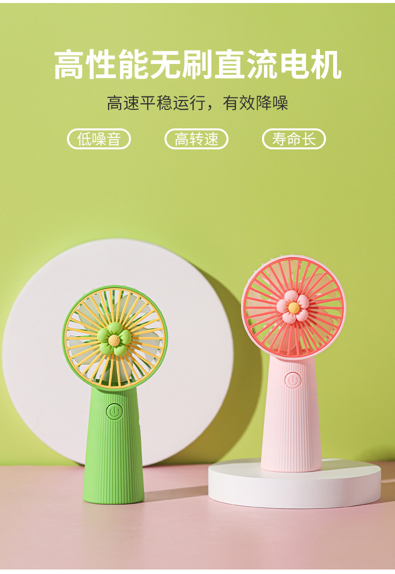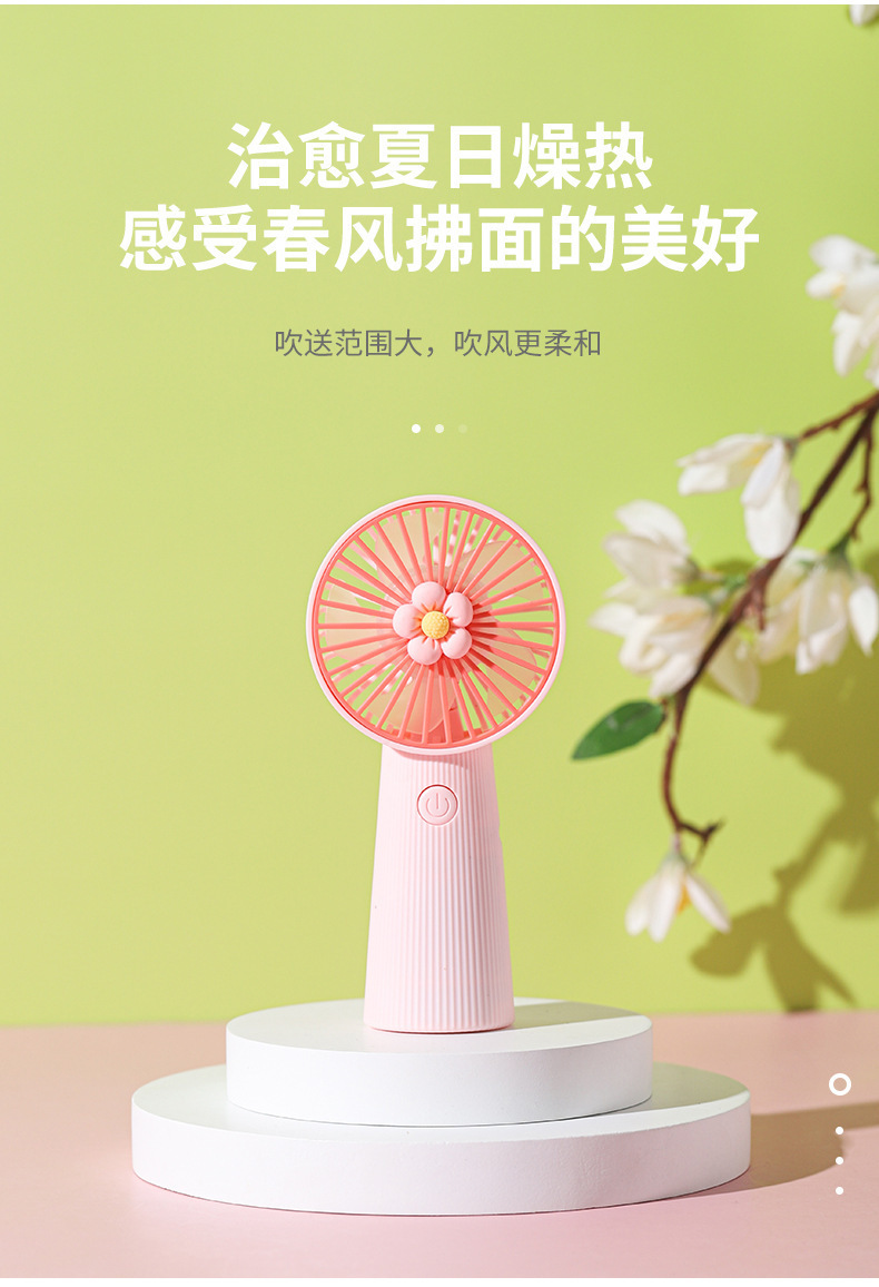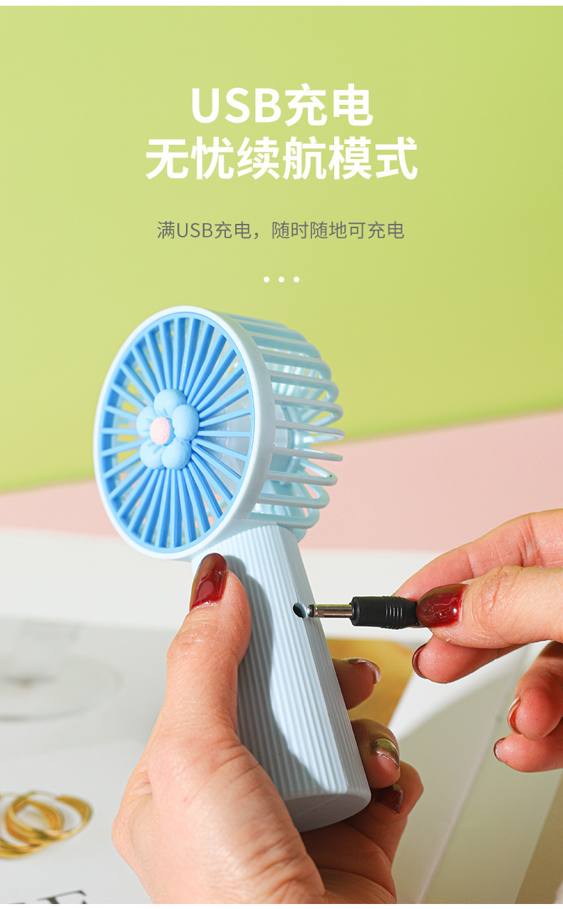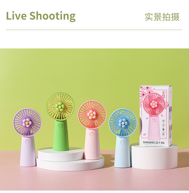 跨境新款手持风扇USB充电式儿童学生户外便携小清新花朵迷你风扇