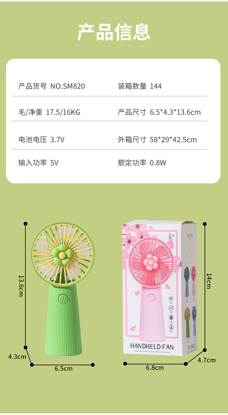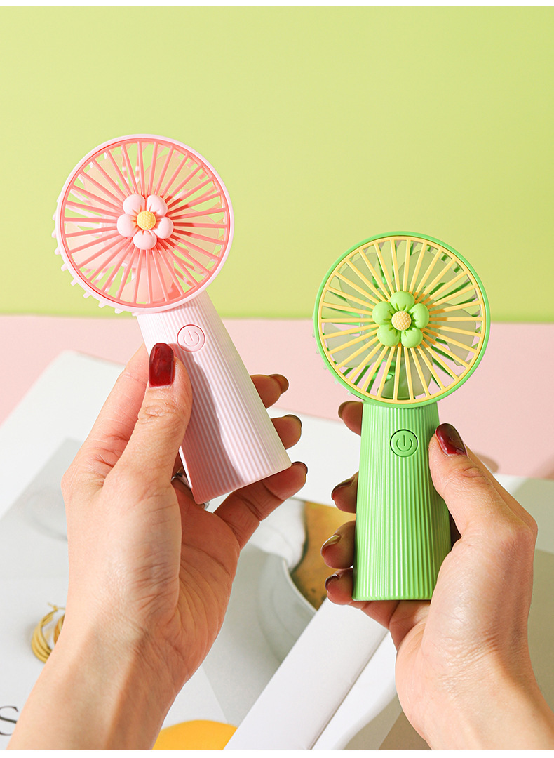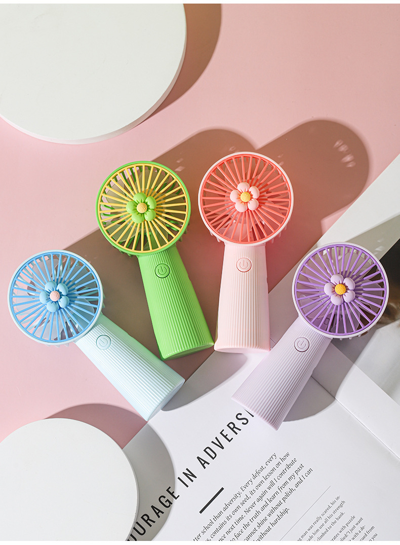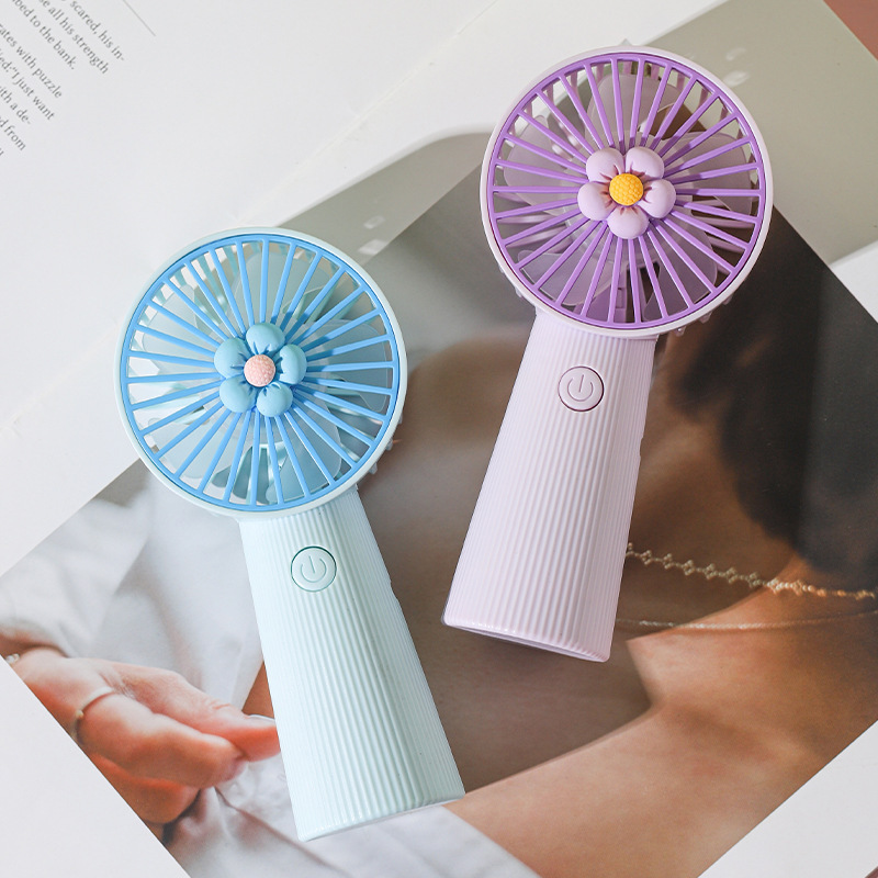 跨境新款手持风扇USB充电式儿童学生户外便携小清新花朵迷你风扇