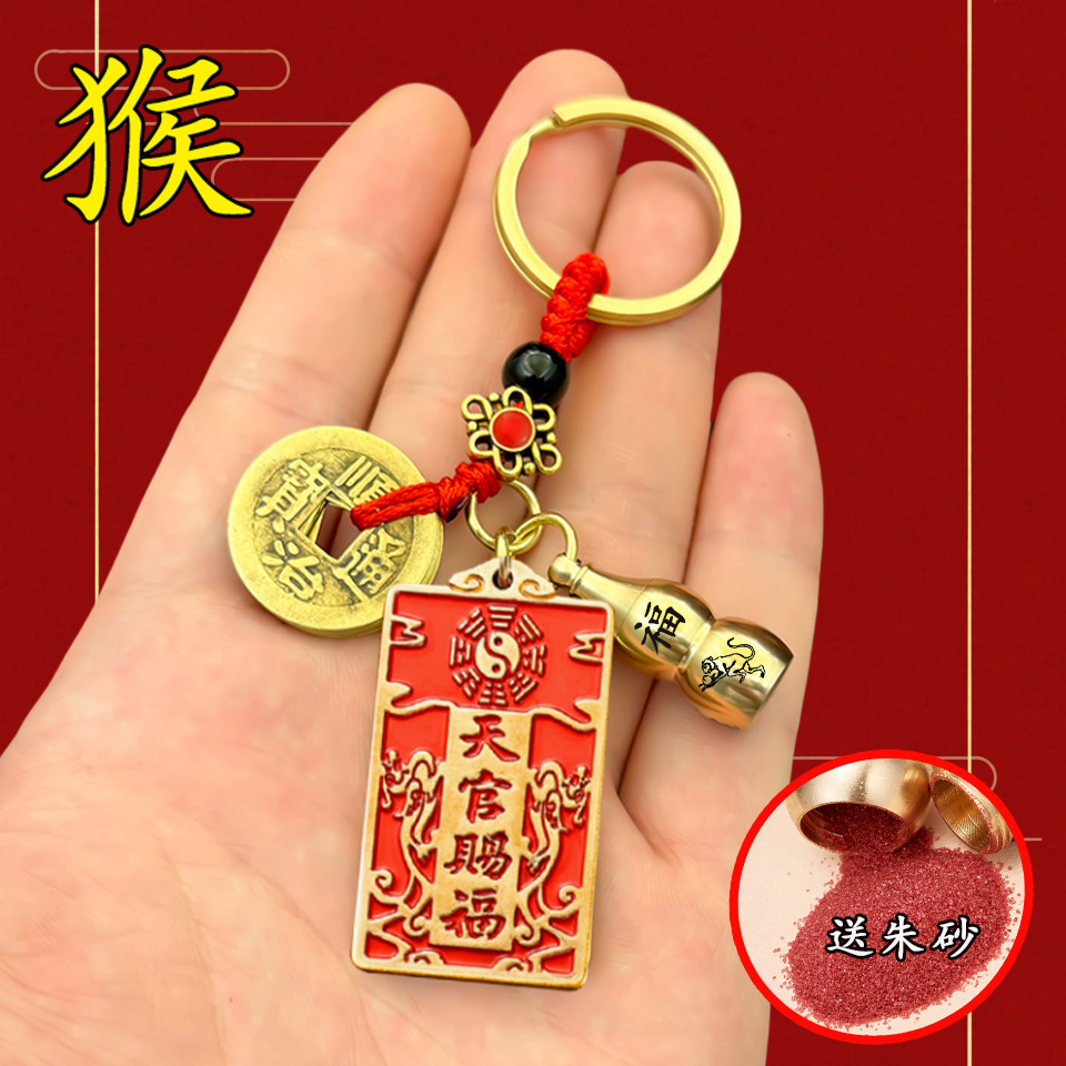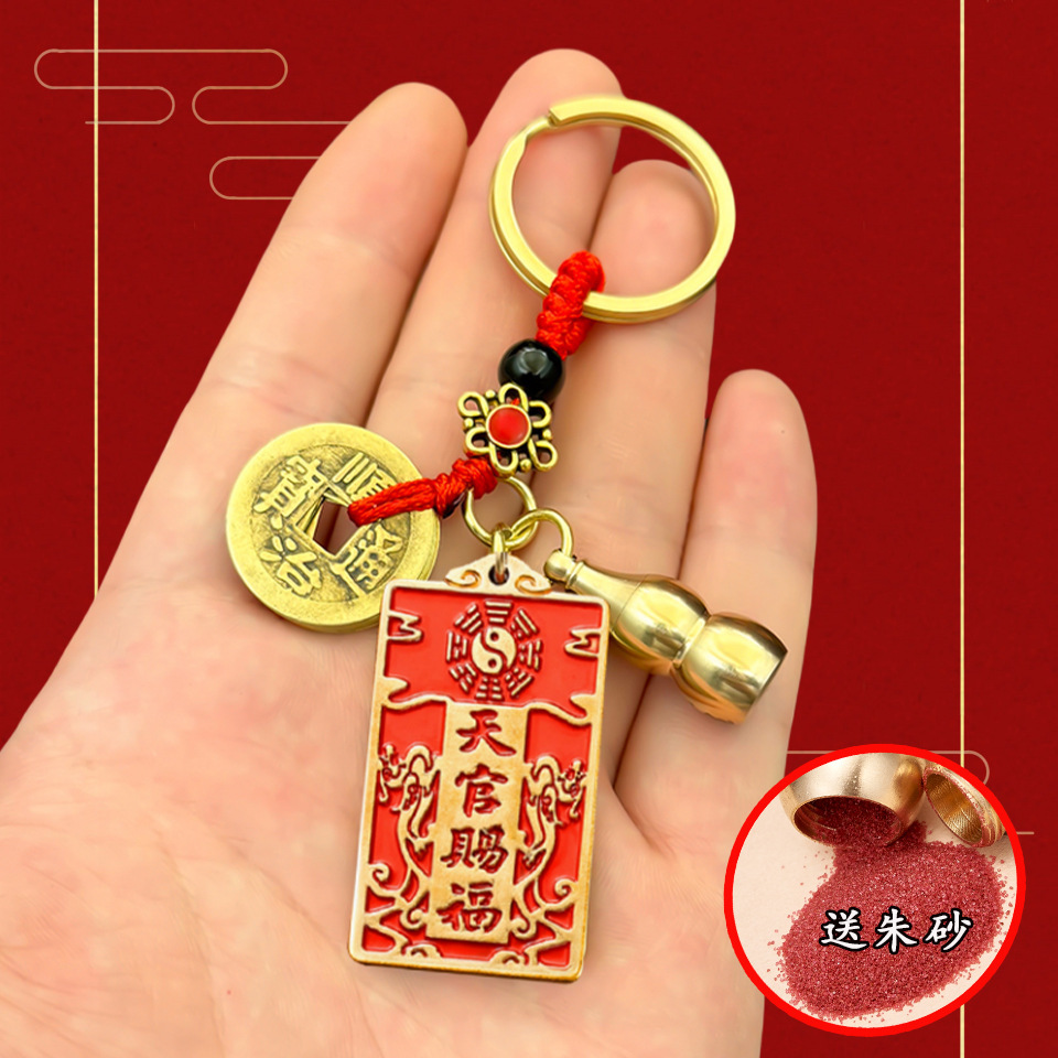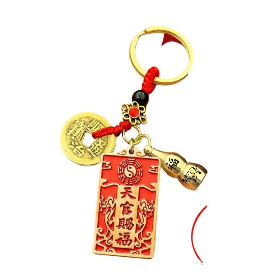 新款百福红油天官赐福钥匙扣仿铜挂件十二生肖铜葫芦五帝钱挂件绳