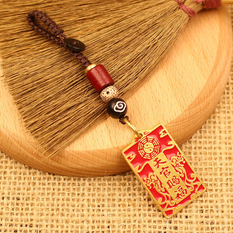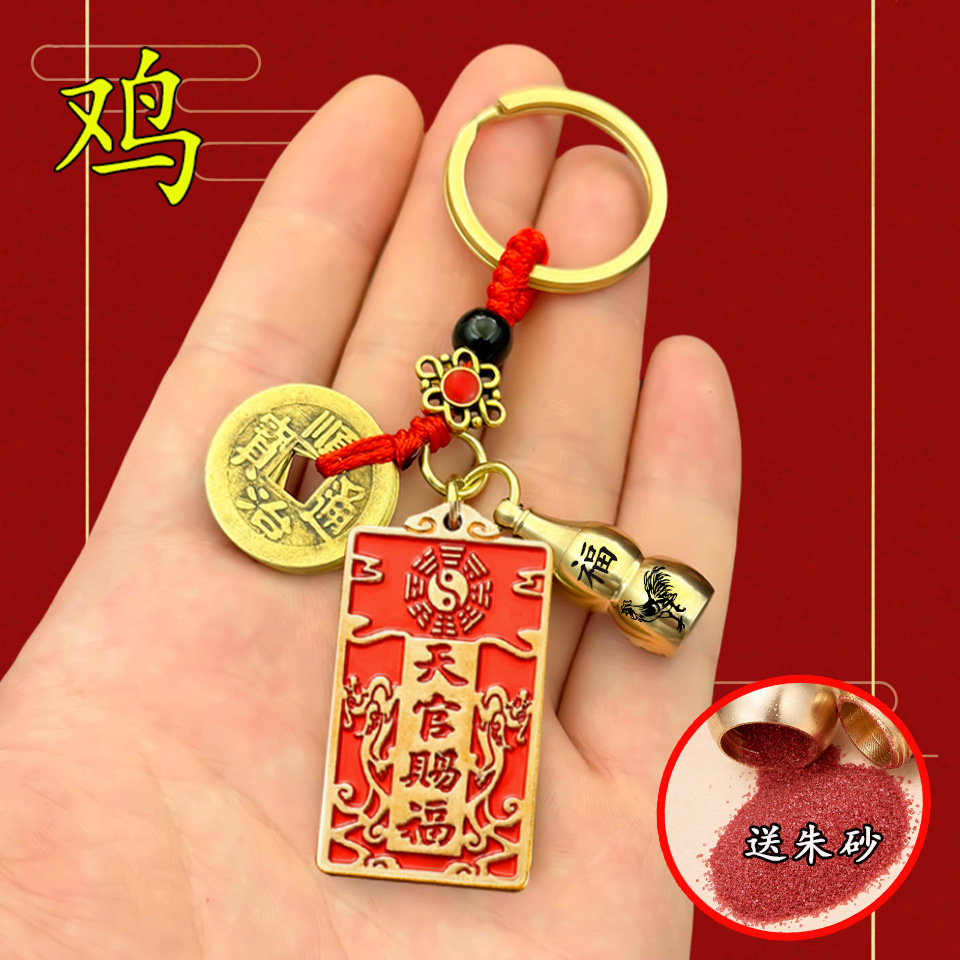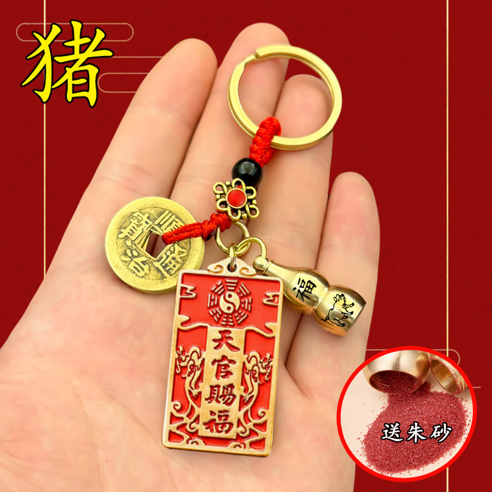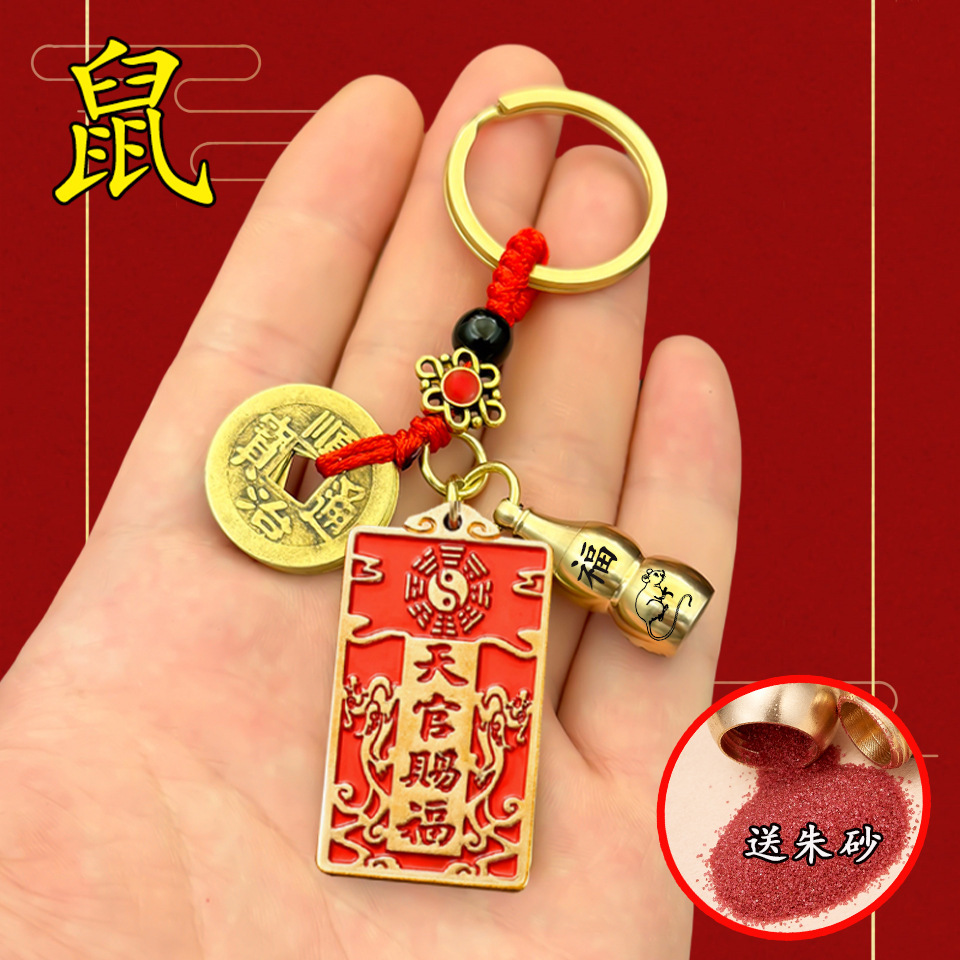 新款百福红油天官赐福钥匙扣仿铜挂件十二生肖铜葫芦五帝钱挂件绳