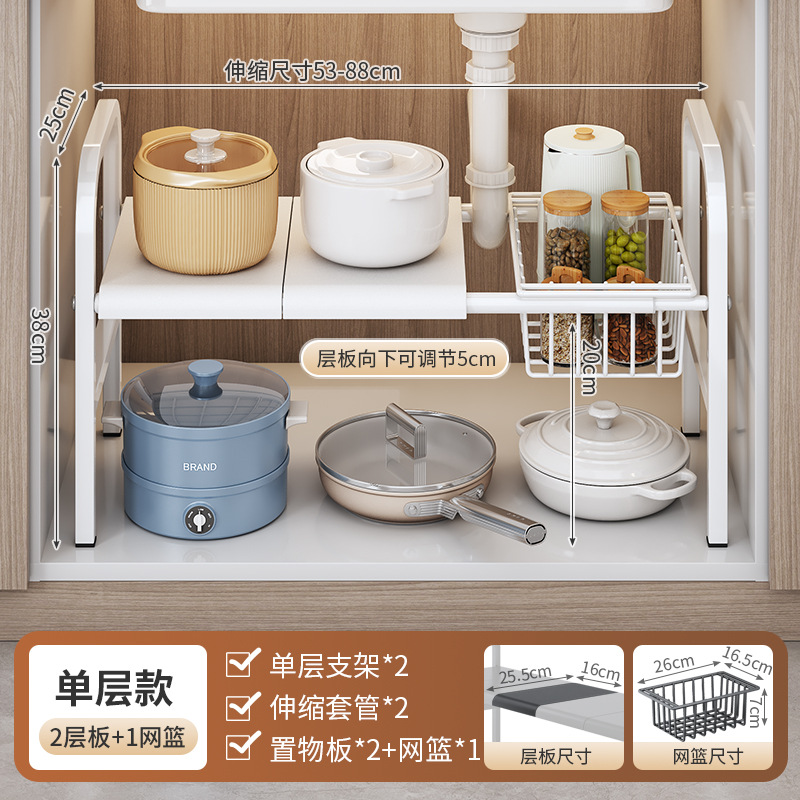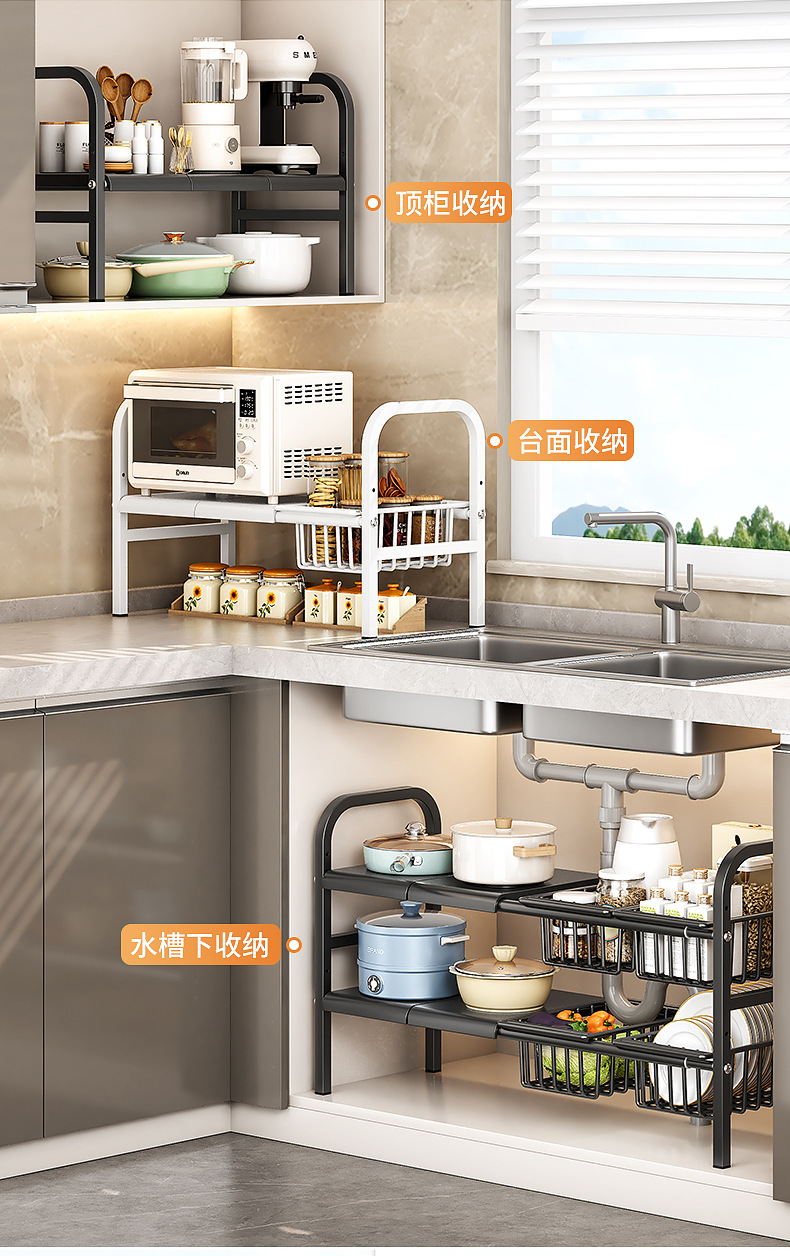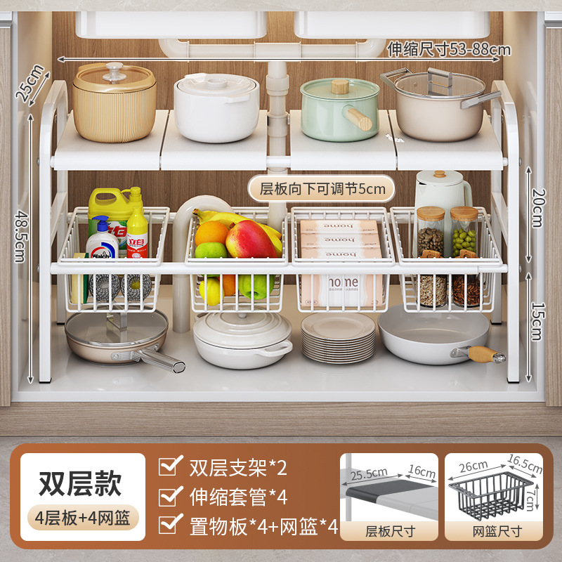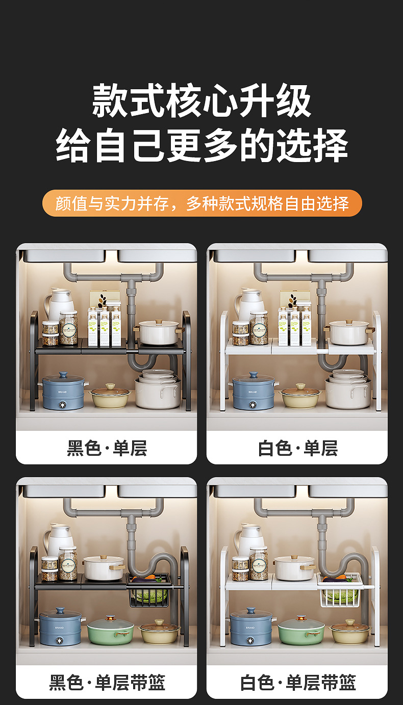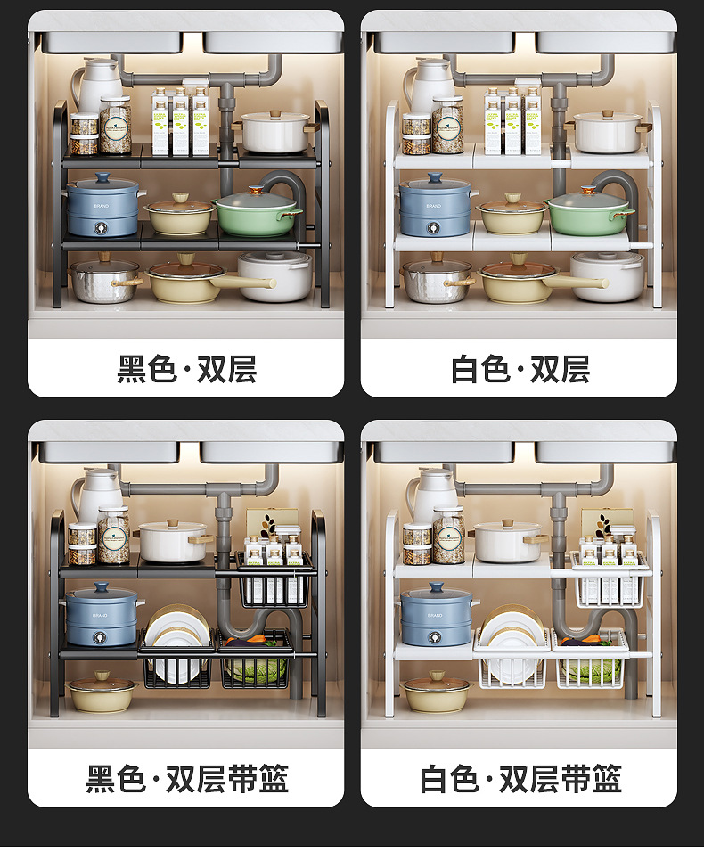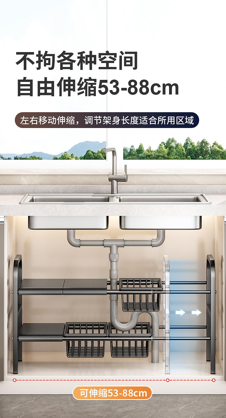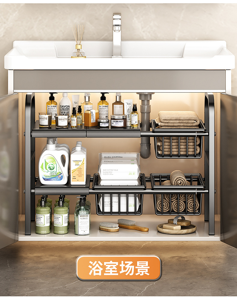 日韩爆款厨房下水槽伸缩置物架橱柜分层收纳架洗手盆下方收纳神器
