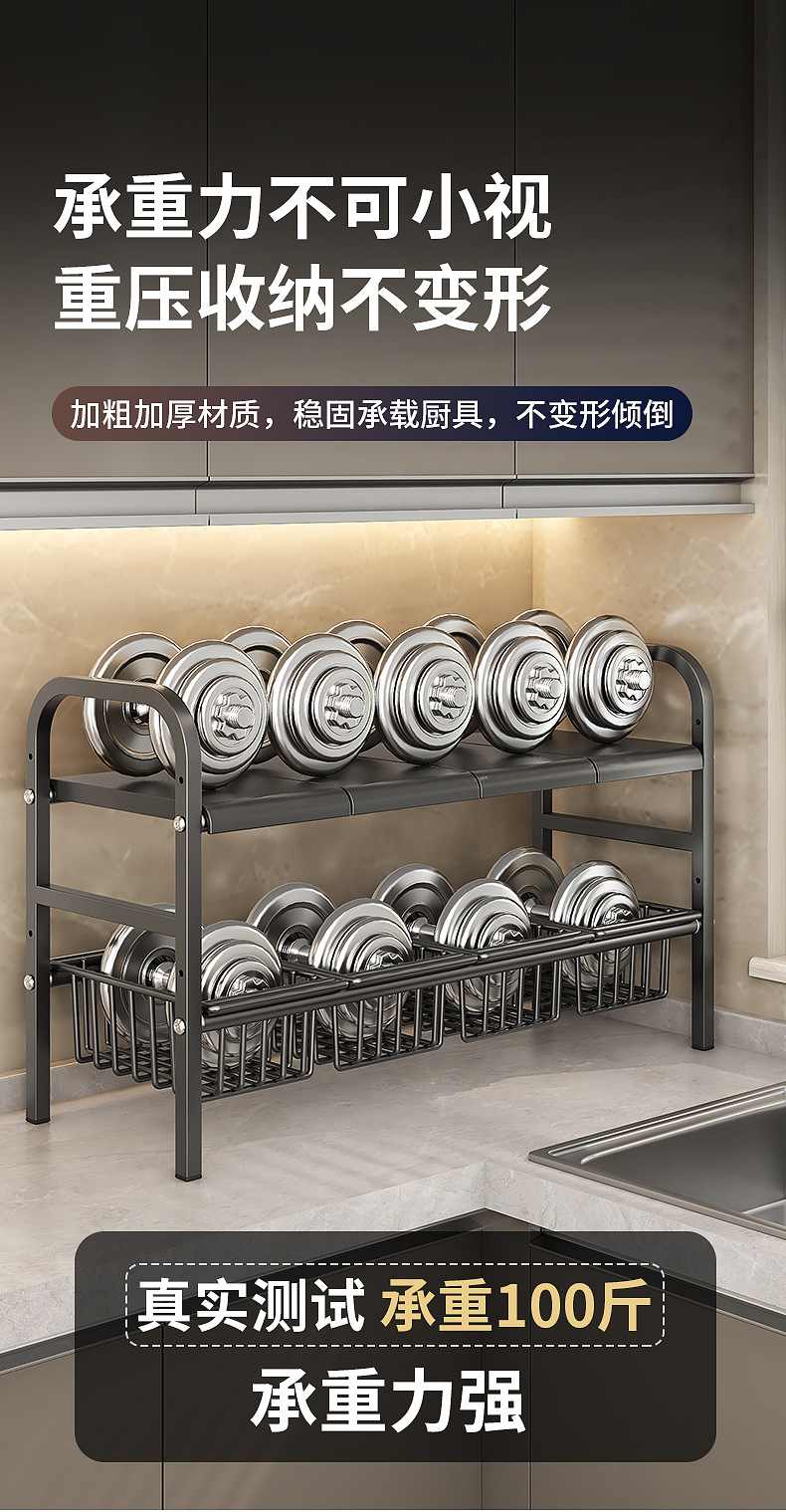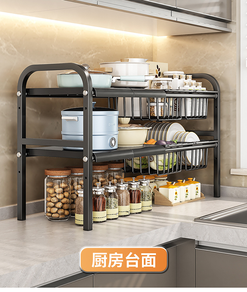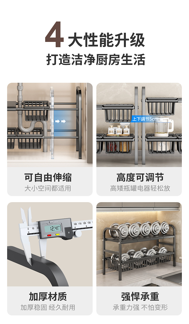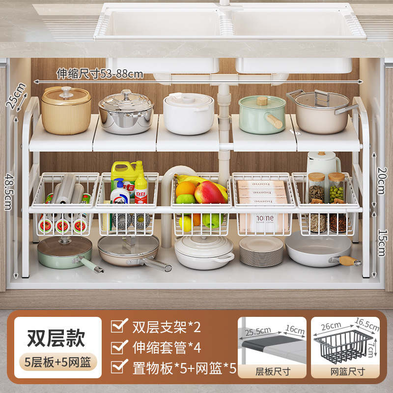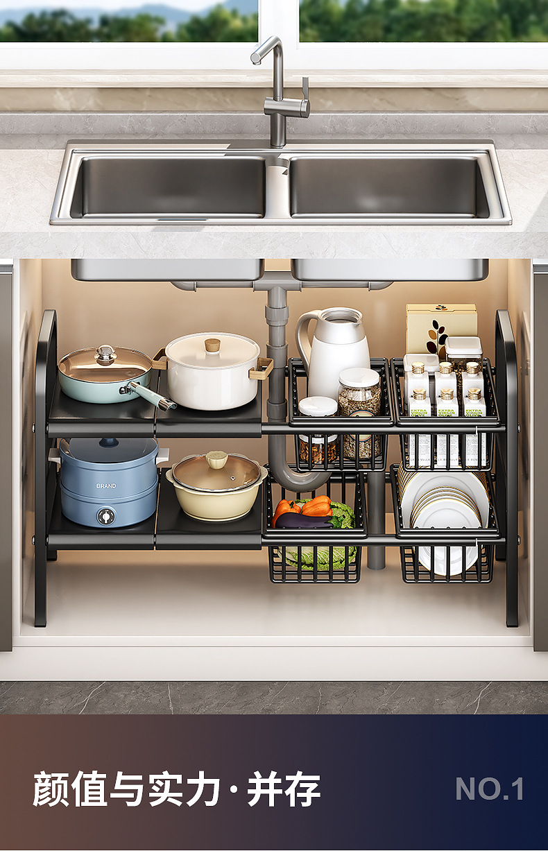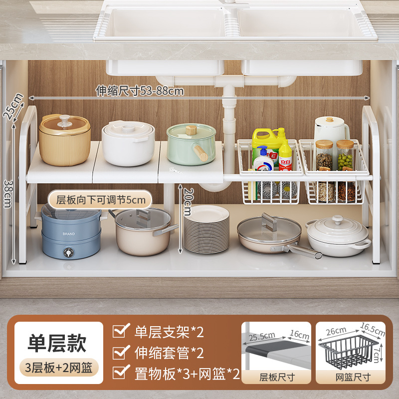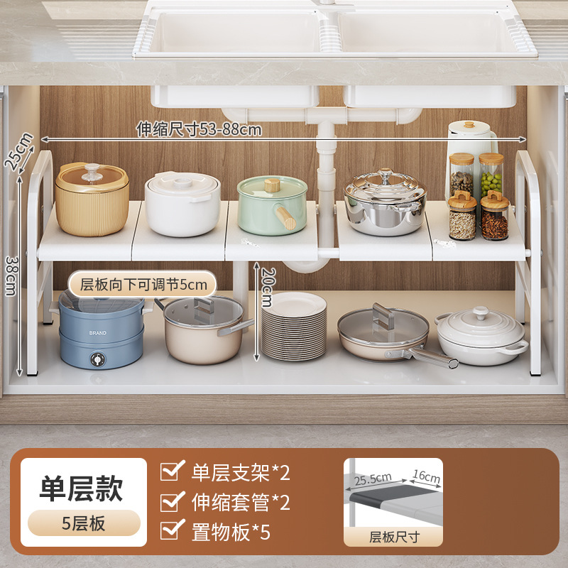 日韩爆款厨房下水槽伸缩置物架橱柜分层收纳架洗手盆下方收纳神器