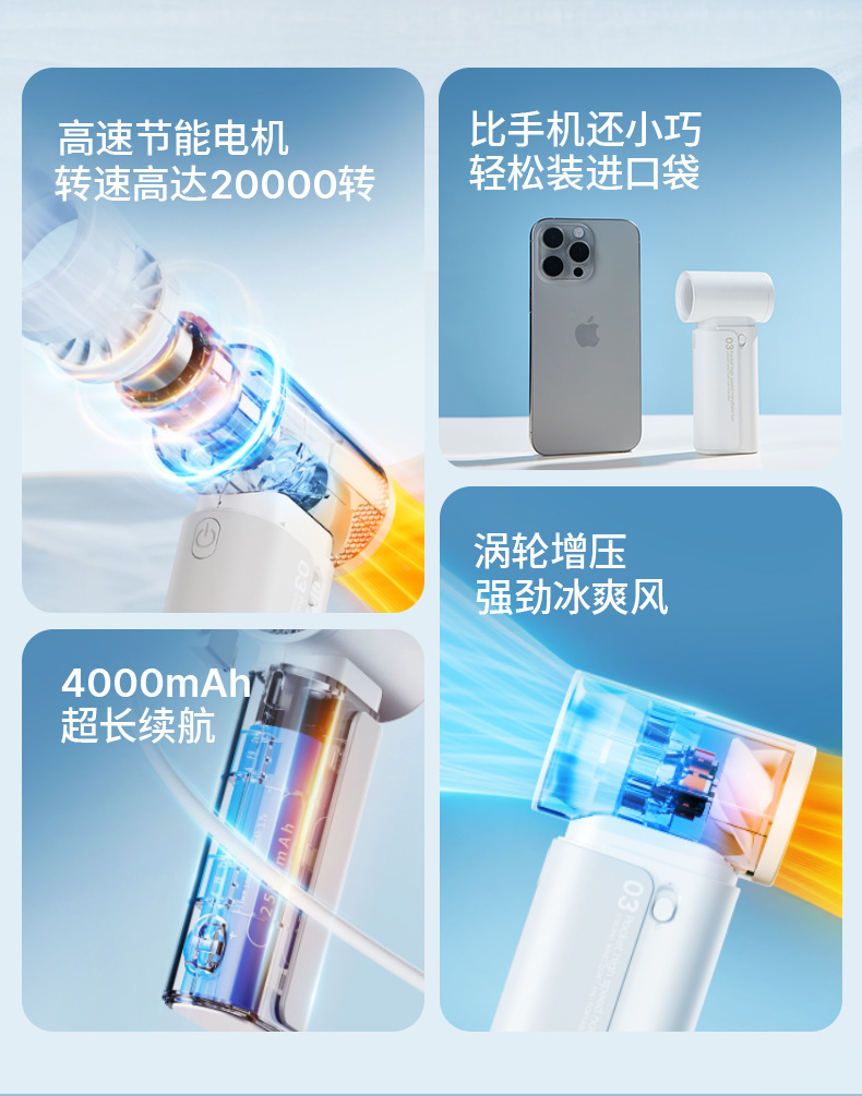 usb小风扇 手持小风炮便携式迷你无叶电风扇高速充电随身吹风机