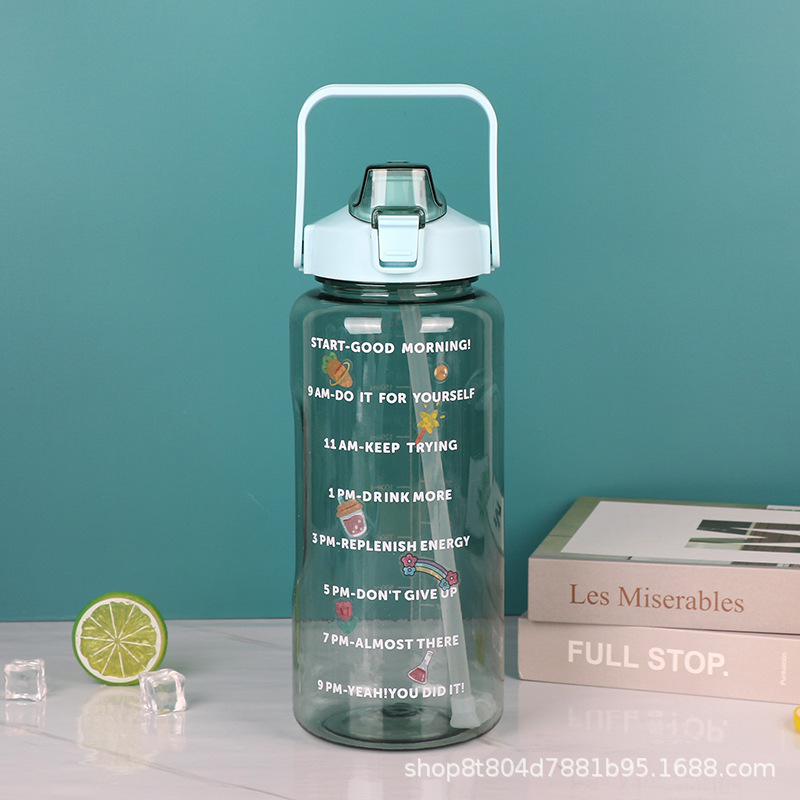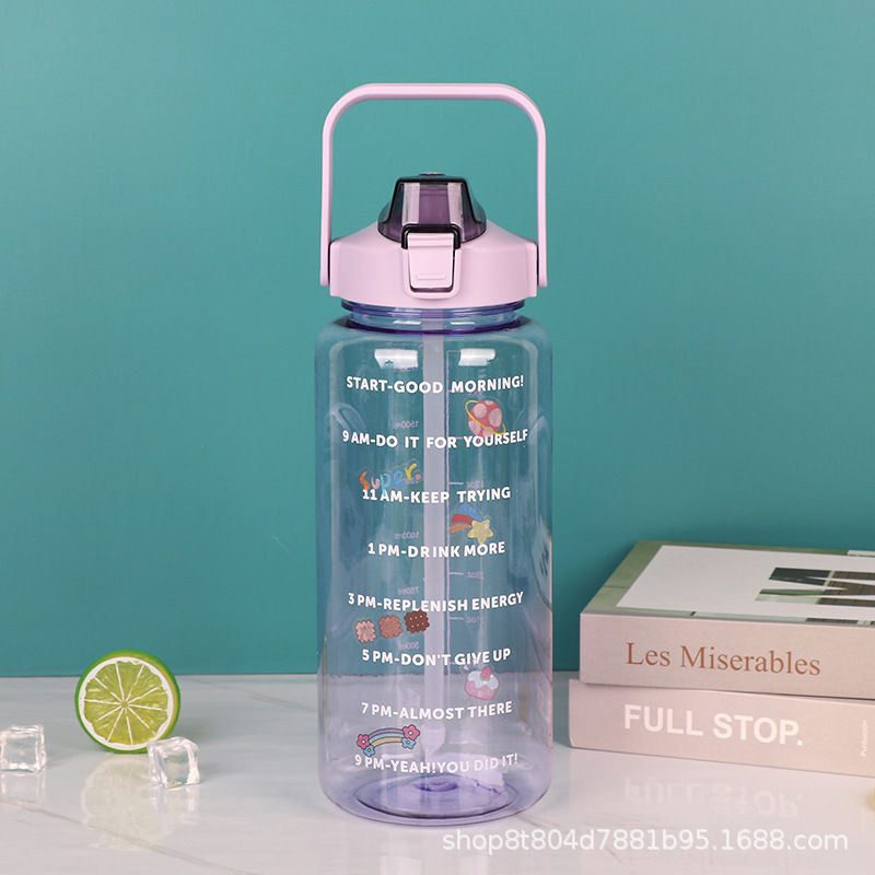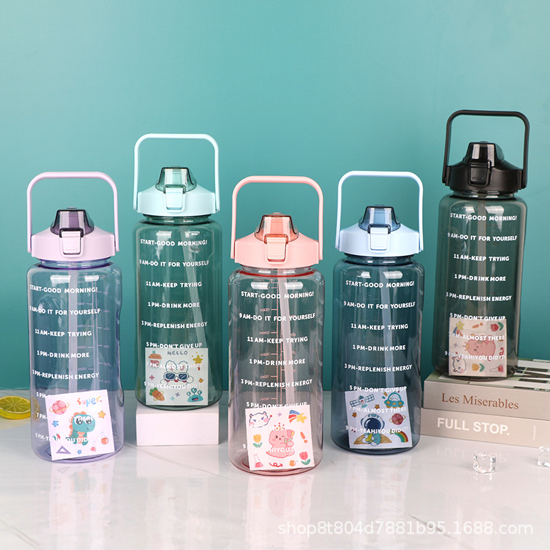 现货跨境运动水杯超大容量2000ml户外运动男女健身塑料太空杯手提