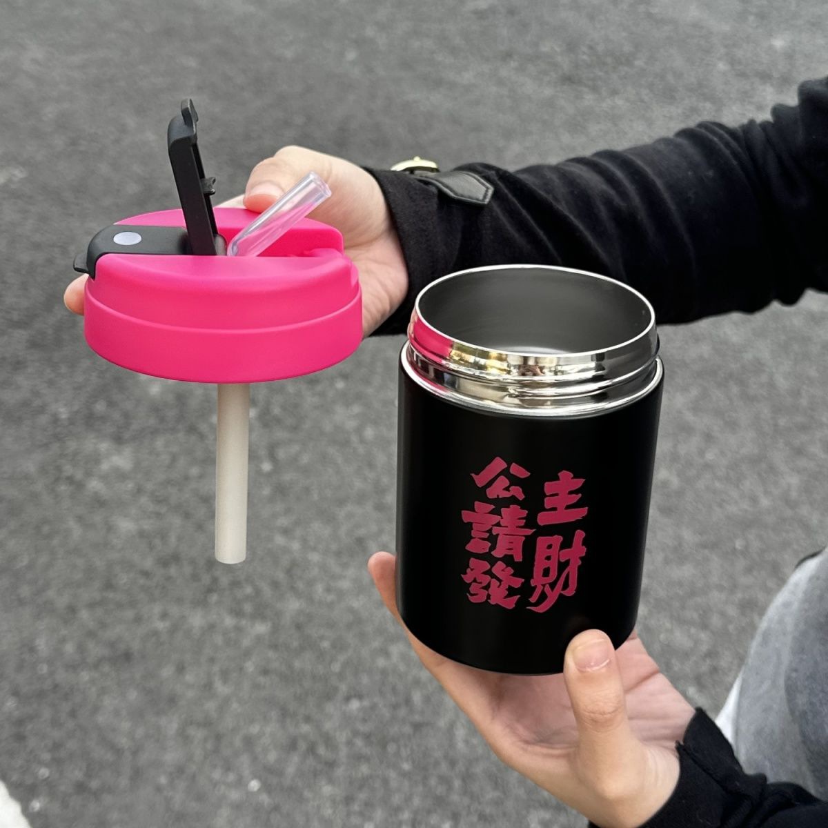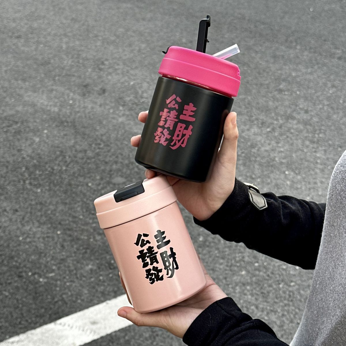 公主请发财吸管保温杯高颜值女生随手杯迷你咖啡不锈钢双饮喝水杯