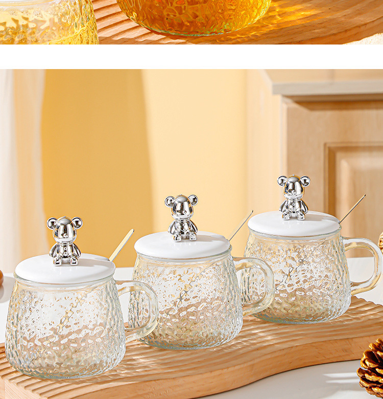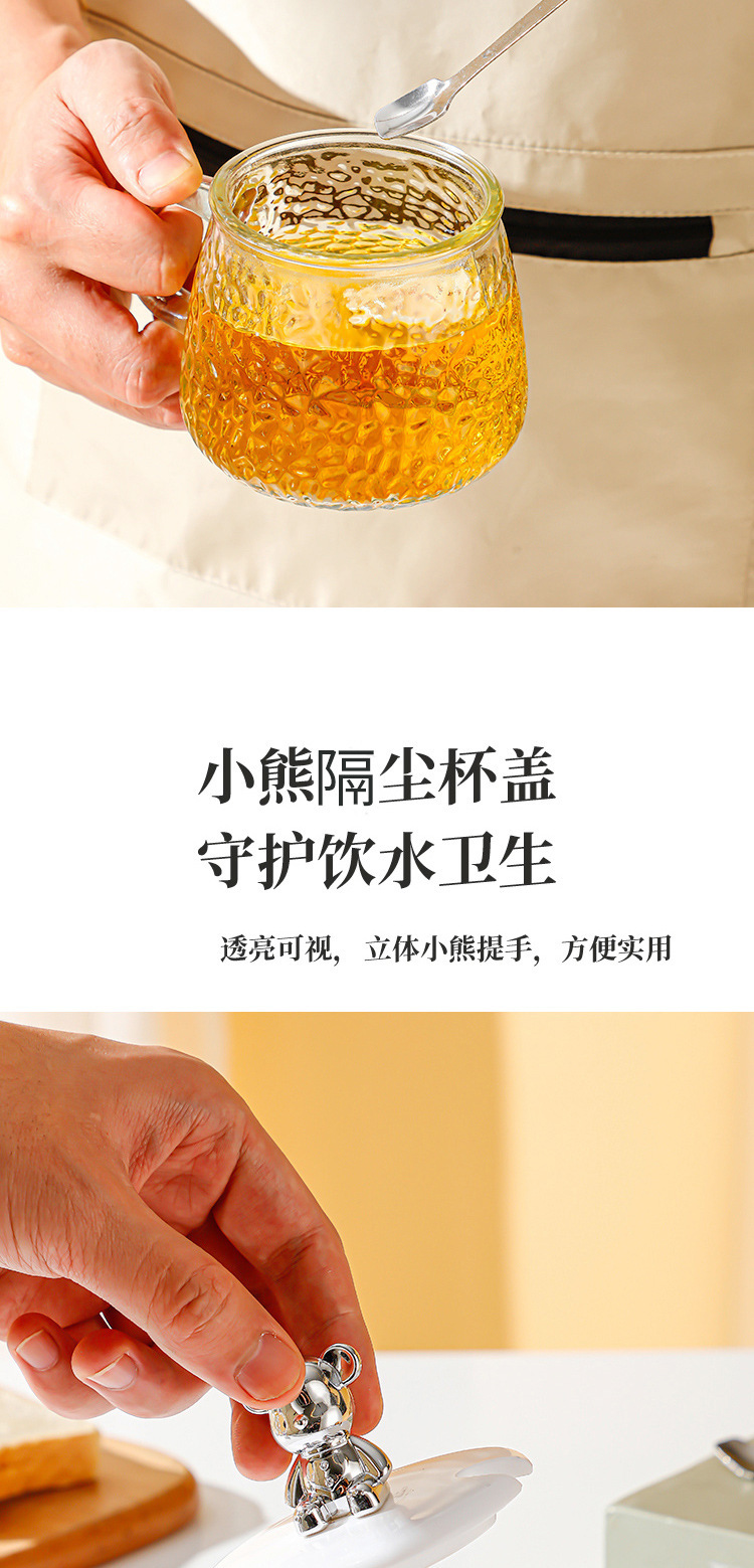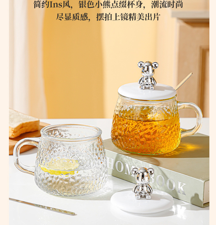 网红小熊玻璃杯咖啡杯简约ins风女水杯带把手带盖早餐杯透明水杯