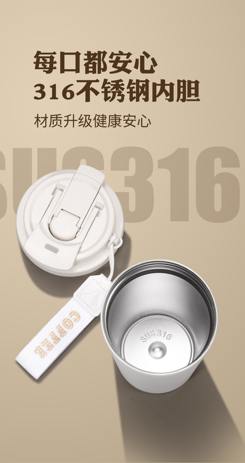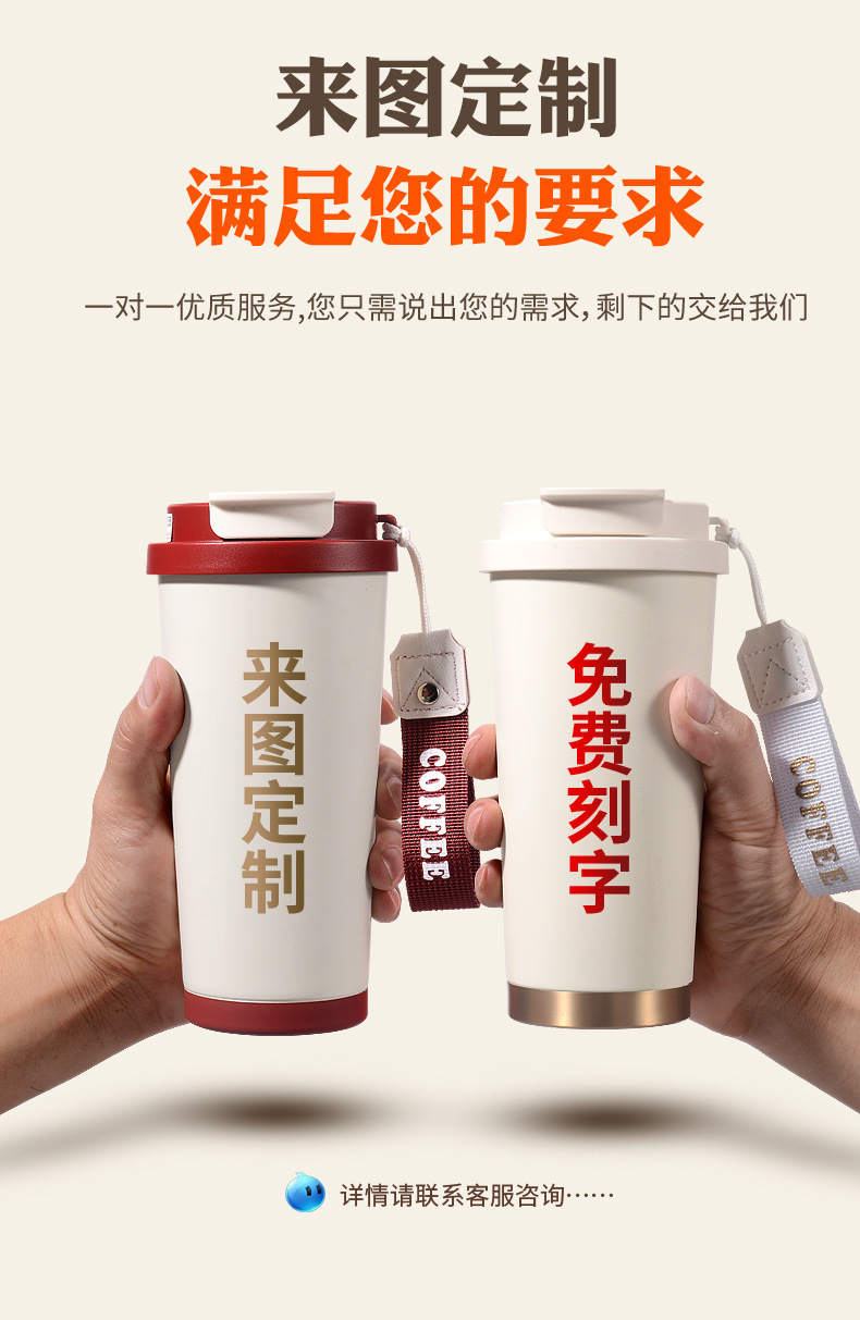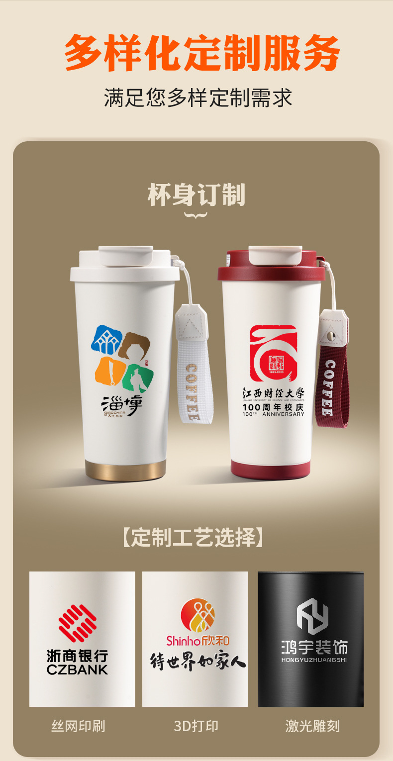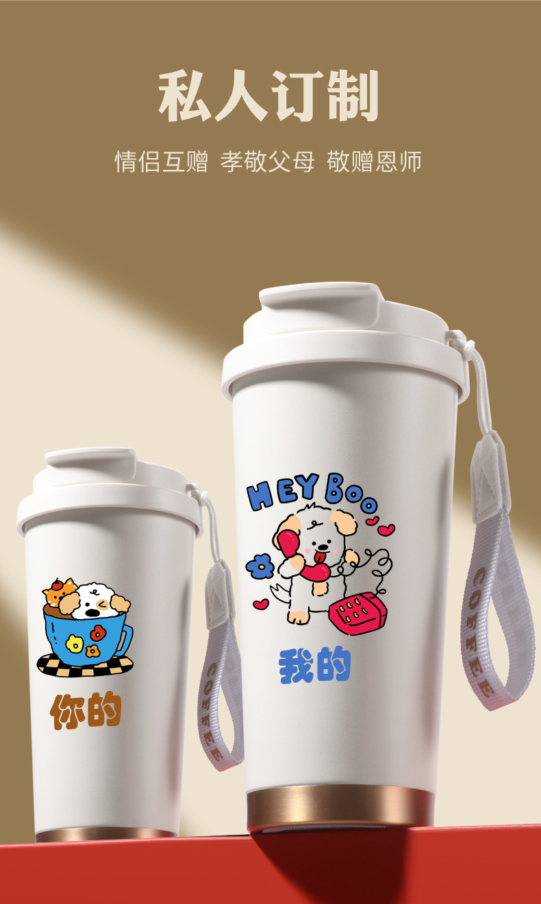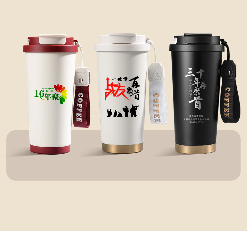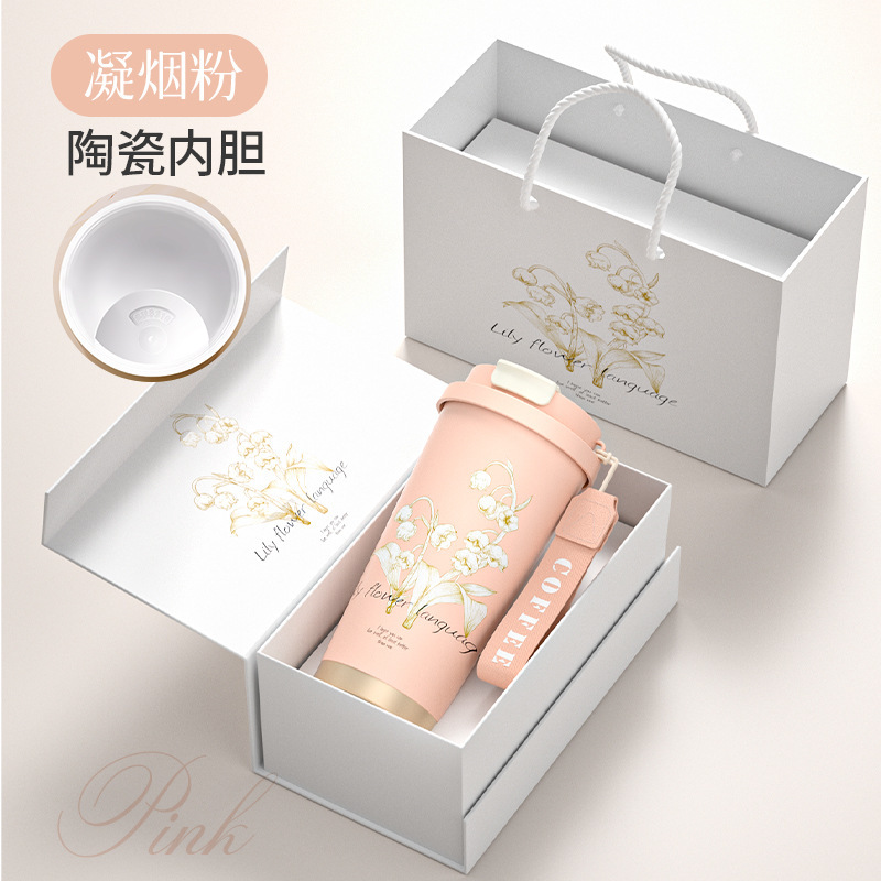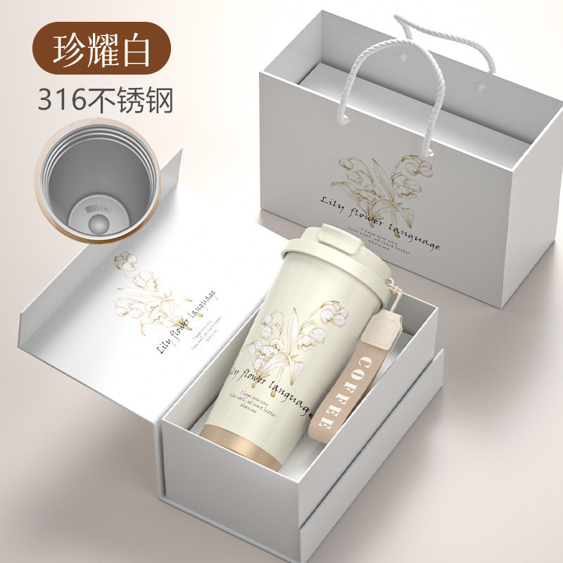 铃兰花保温杯印logo高颜值便携大容量316不锈钢内胆双饮咖啡刻字
