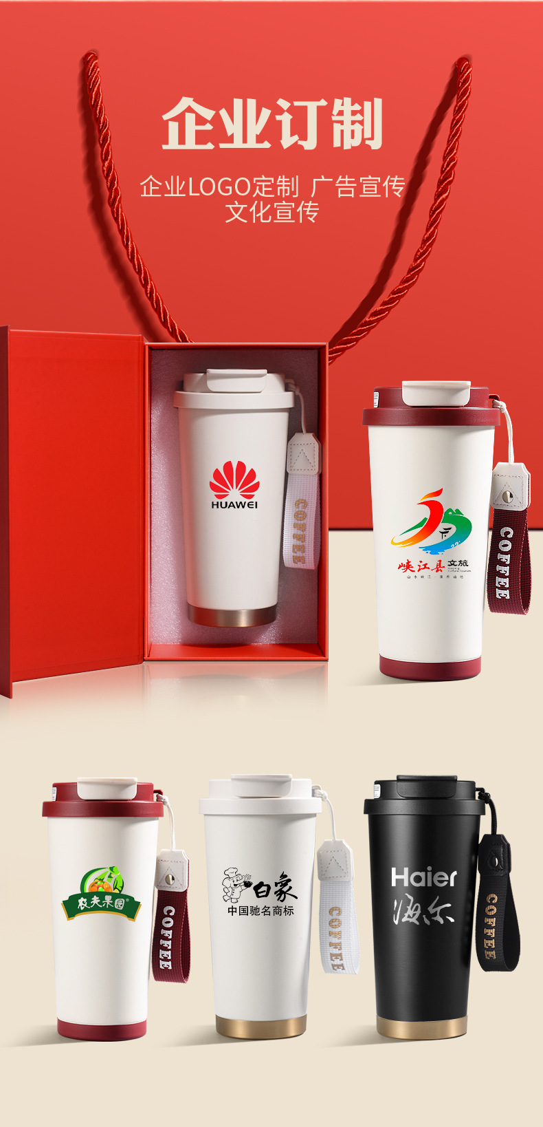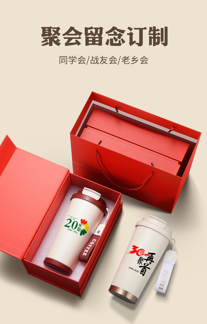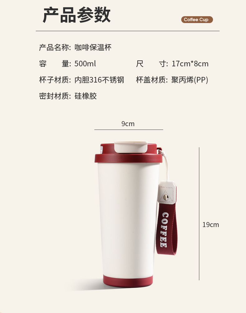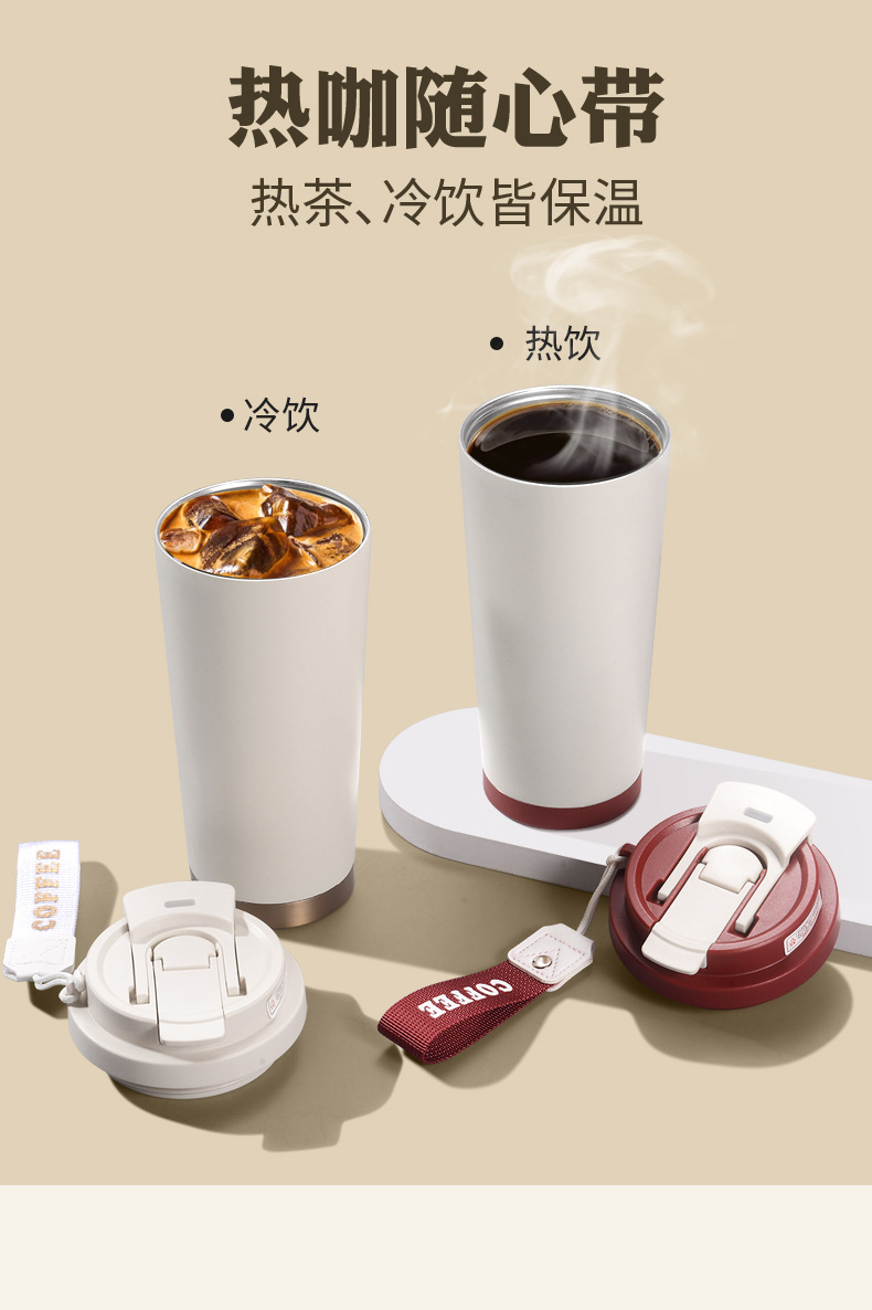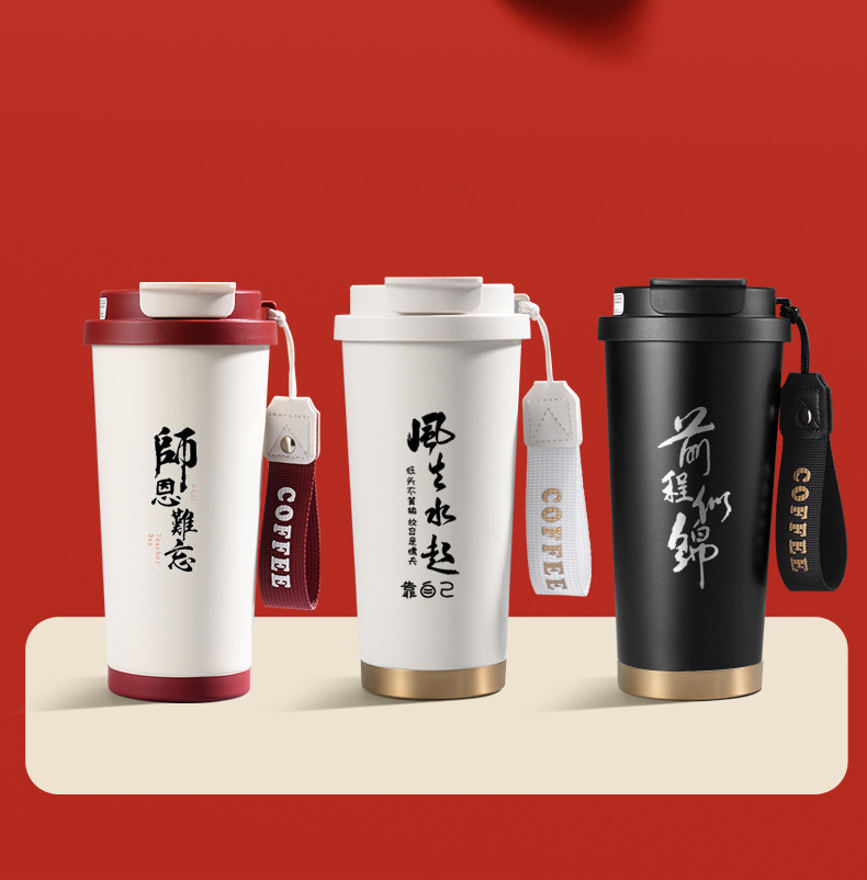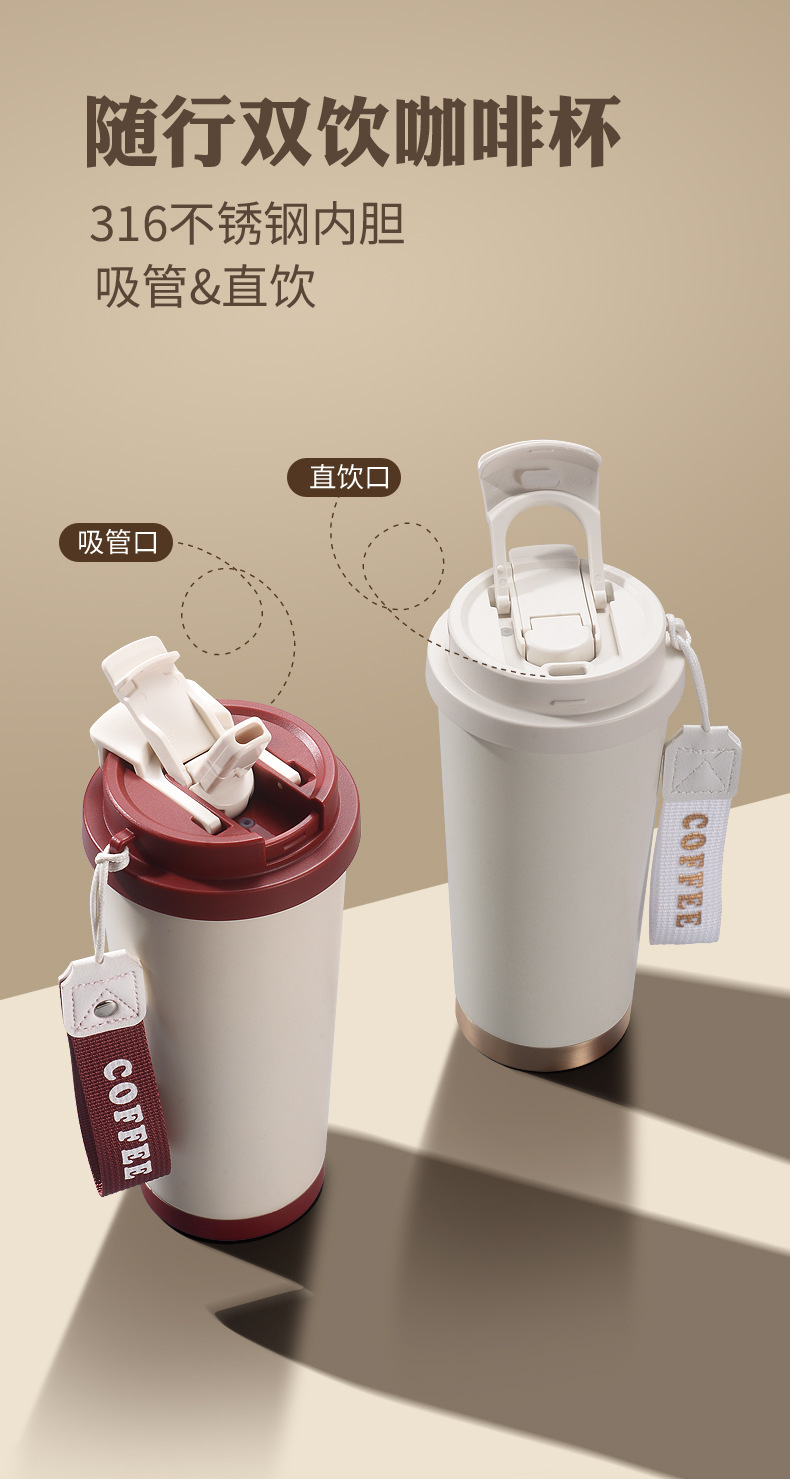 铃兰花保温杯印logo高颜值便携大容量316不锈钢内胆双饮咖啡刻字