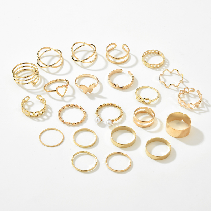 跨境爆款开口多关节戒指套装22件套戒指女设计感小众爱心蝴蝶戒指