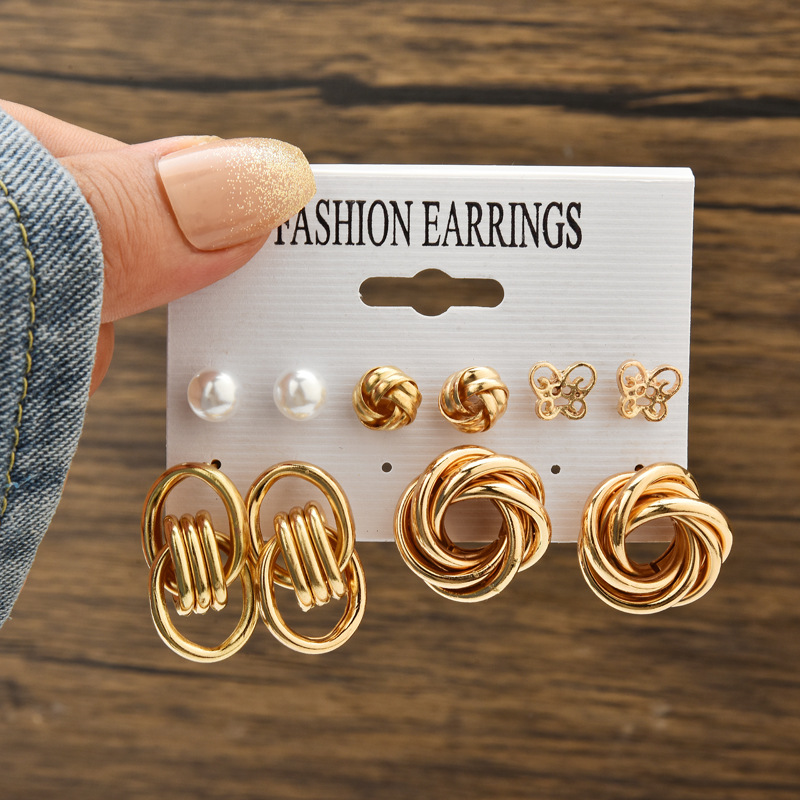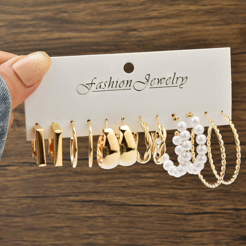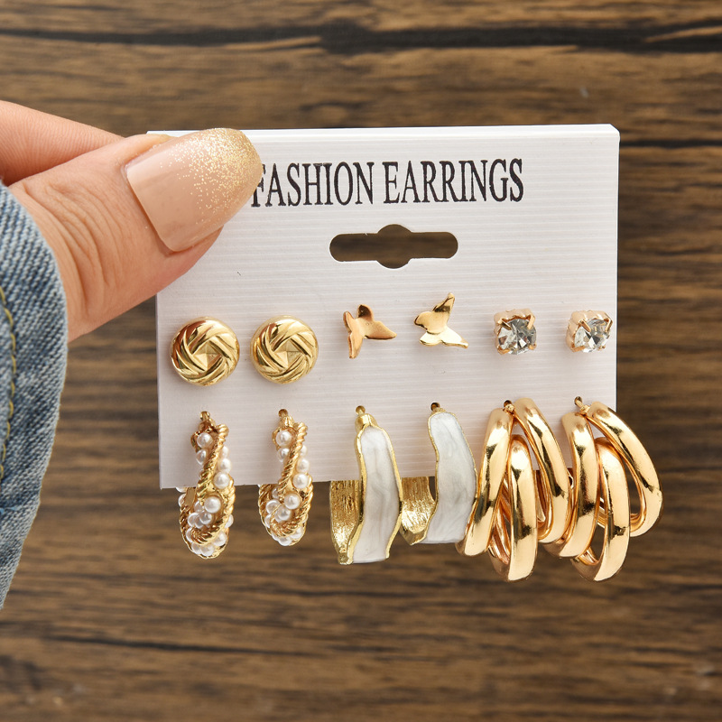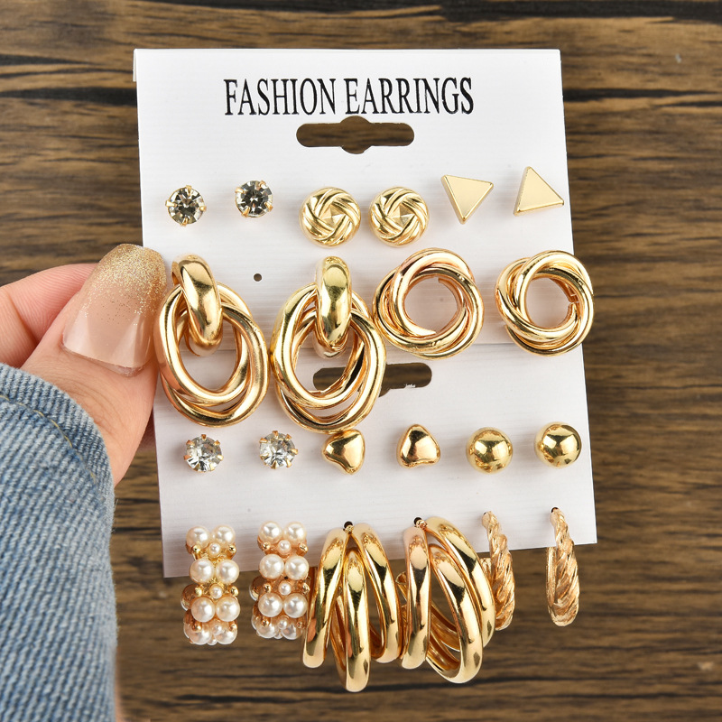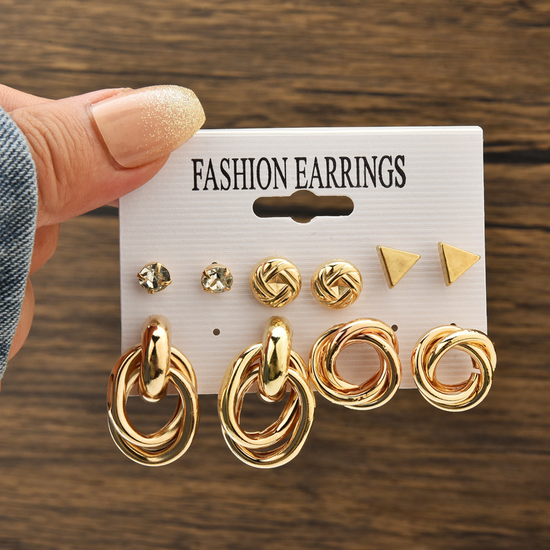 欧美跨境热销时尚简约耳环套装女气质百搭个性夸张大气高级感耳坠