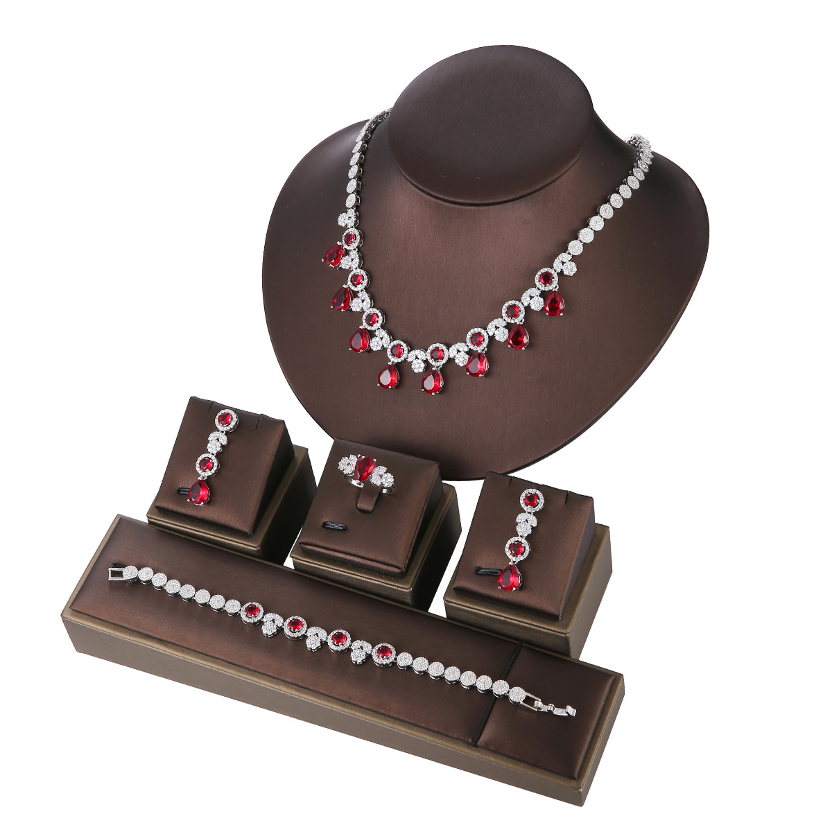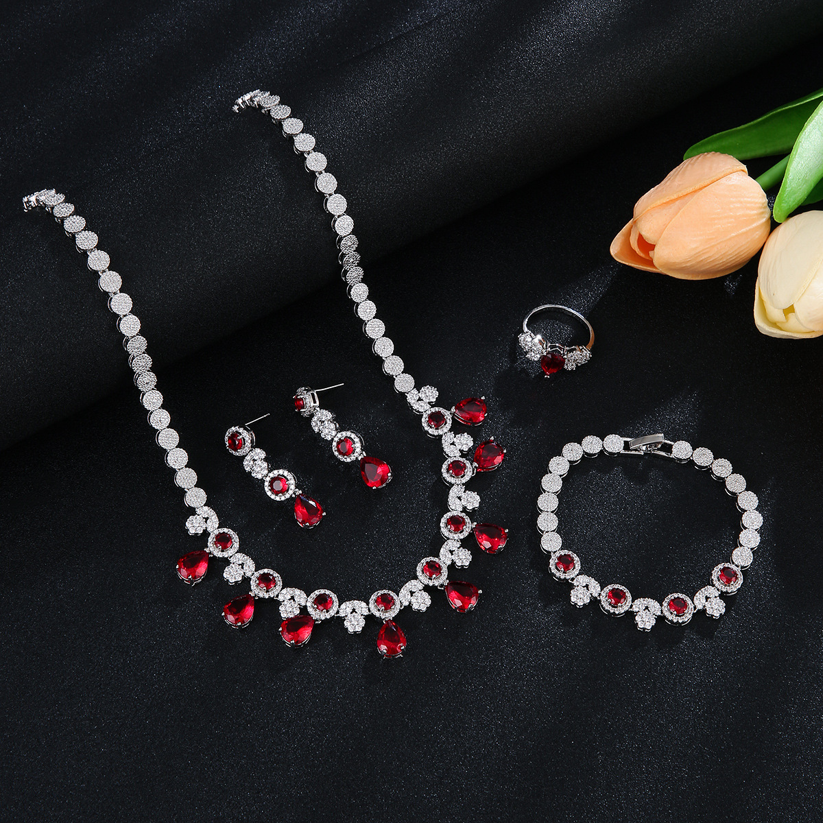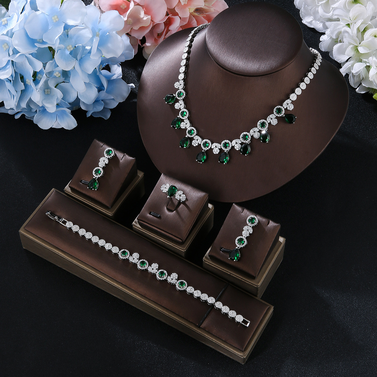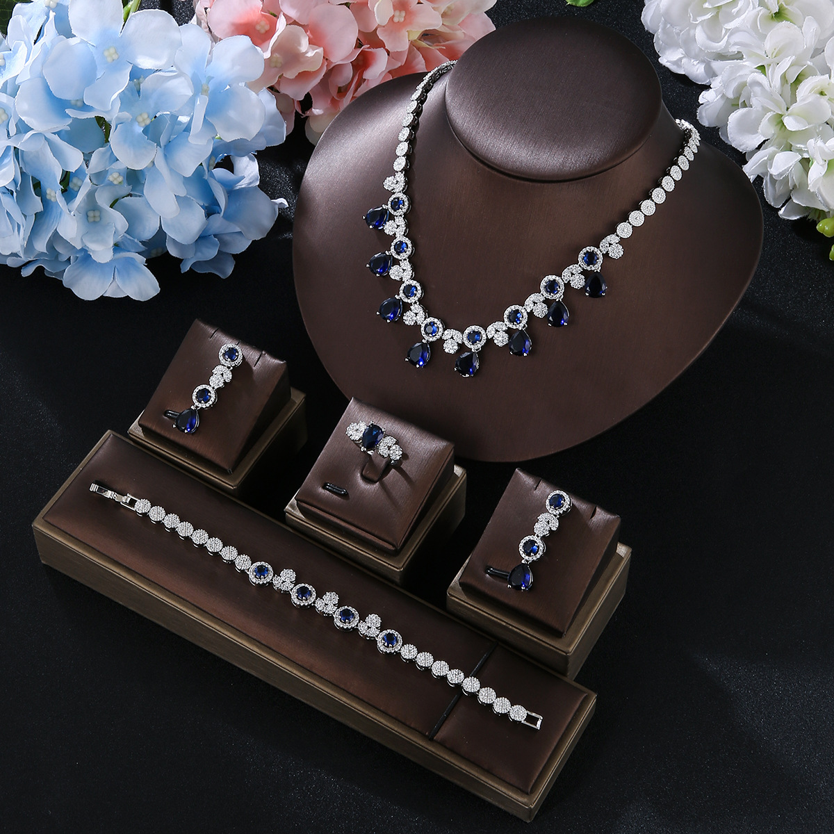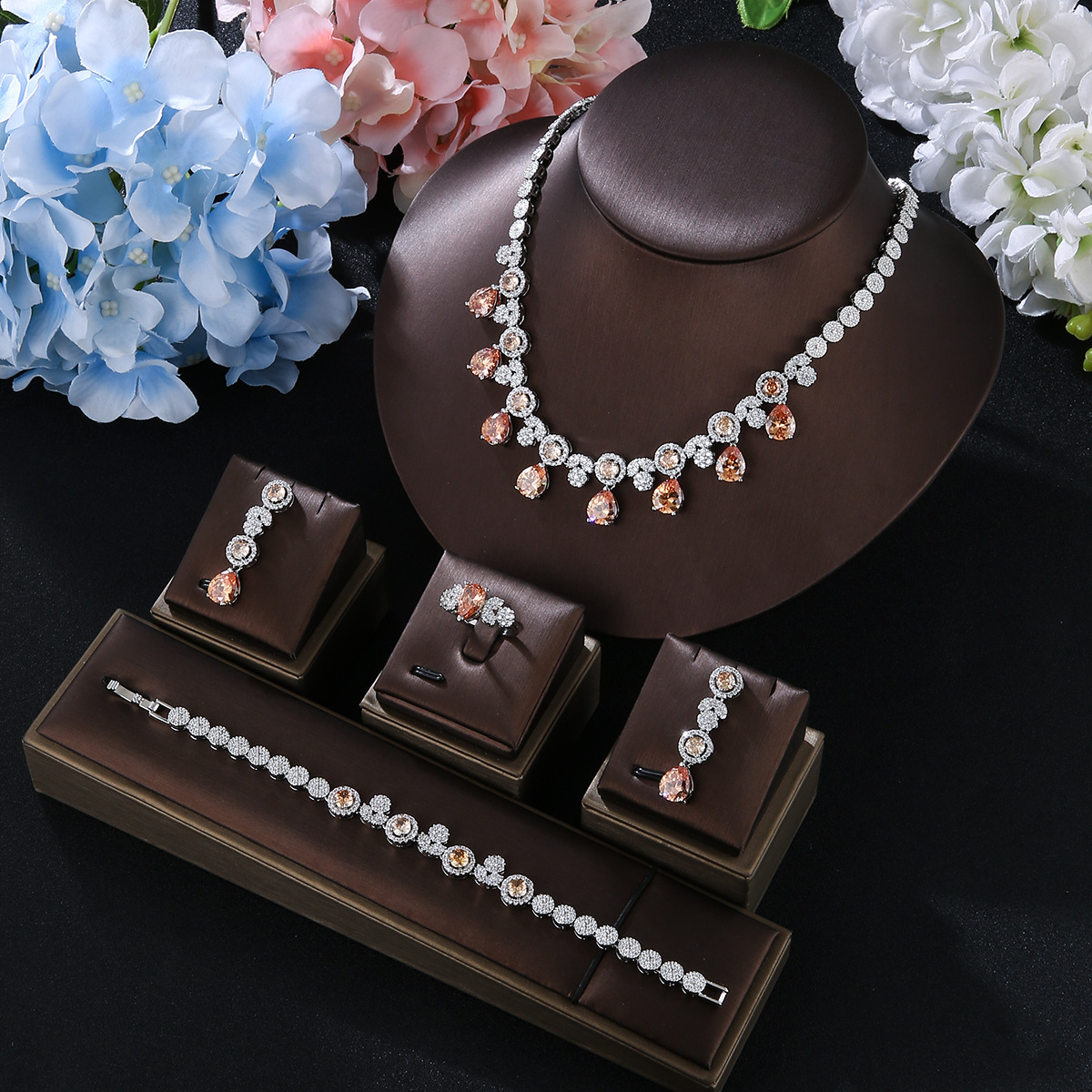 新娘项链耳环戒指3A锆石结婚饰品欧美婚礼宴会首饰套装晚礼服配饰