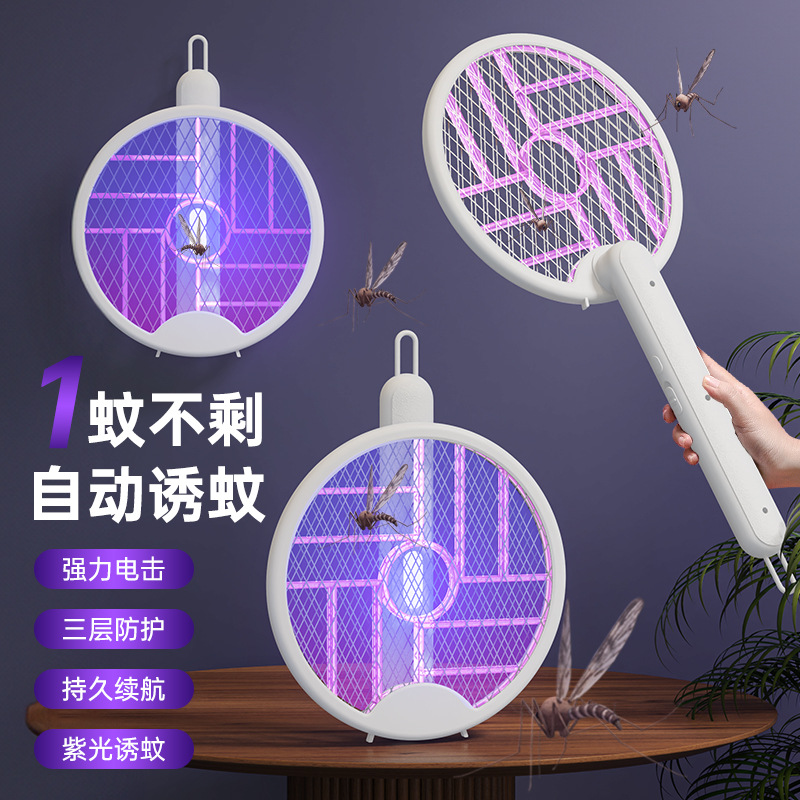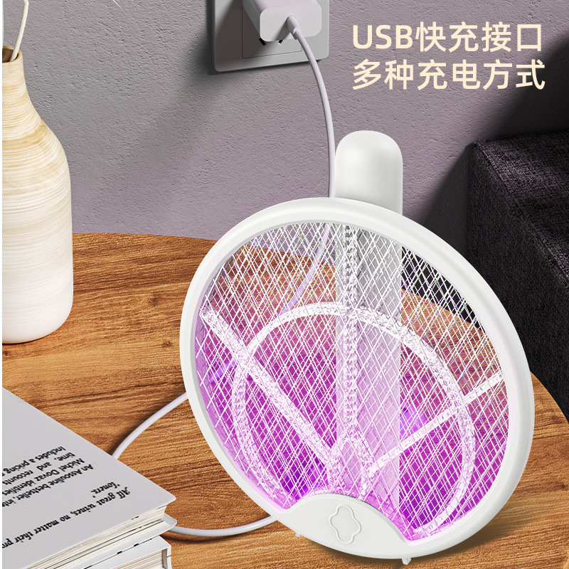 2025新款紫光诱蚊折叠灭蚊怕强力电蚊拍USB 电击式灭蚊灯厂家批发