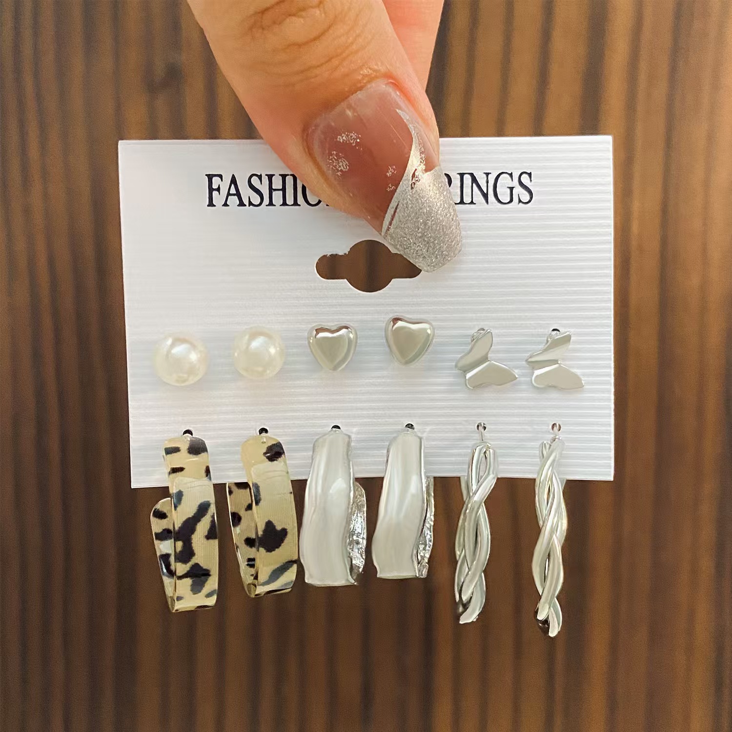 欧美跨境耳环套装5对装个性创意简约豹纹蝴蝶耳钉合金耳环耳圈