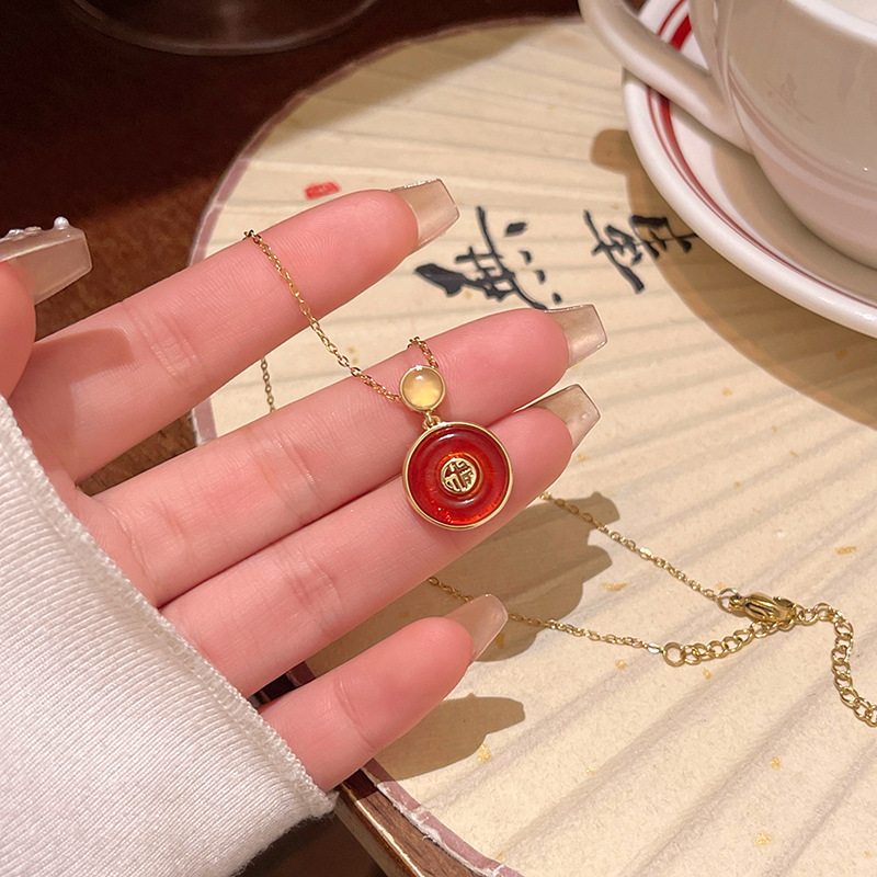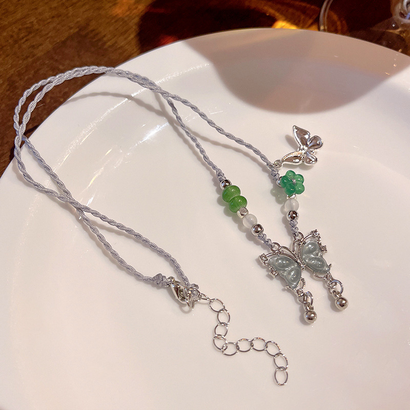 百搭高级感锁骨链蝴蝶颈链新中式项链女禅意中古风平安锁串珠项链