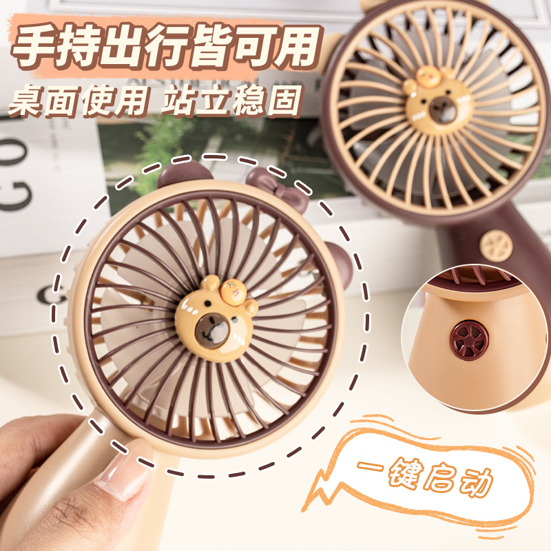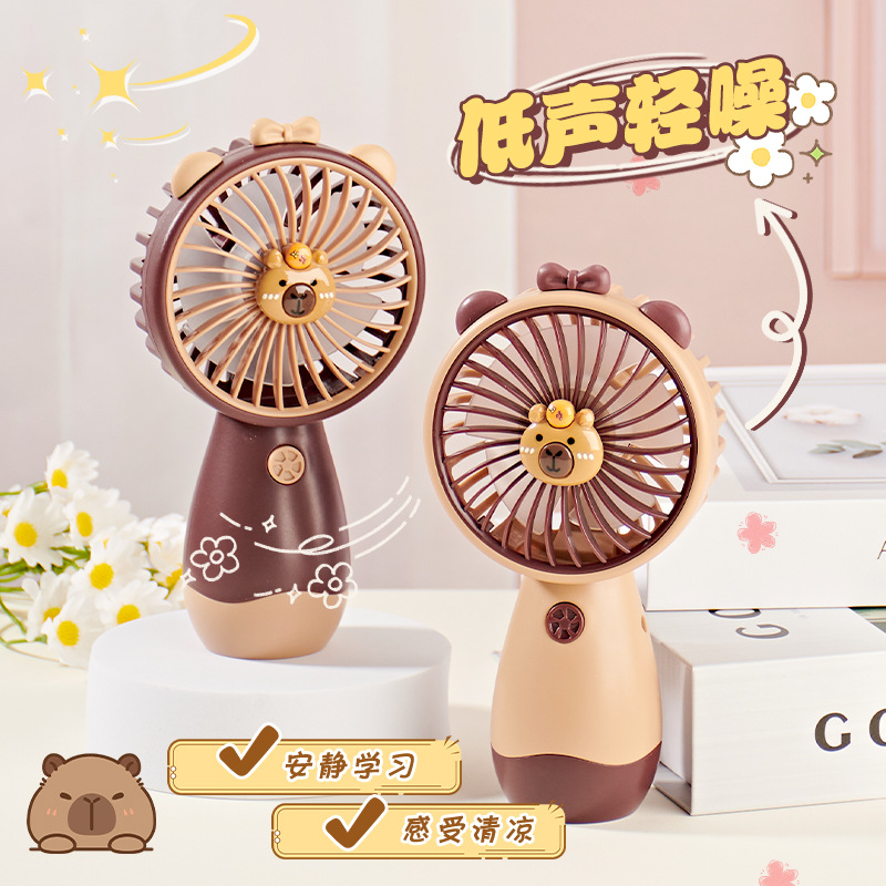 夏季降温神器大风力卡通卡皮巴拉公仔小风扇USB充电便携手持风扇