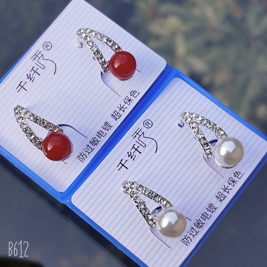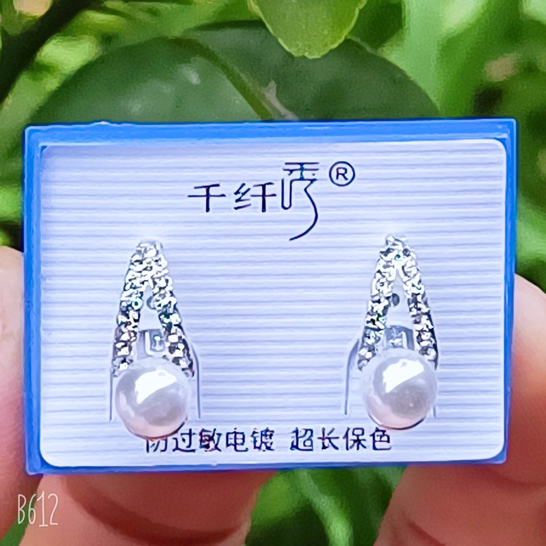 盒装银针水钻珍珠小耳钉 小巧精致 简约百搭耳饰闪亮少女耳坠批发