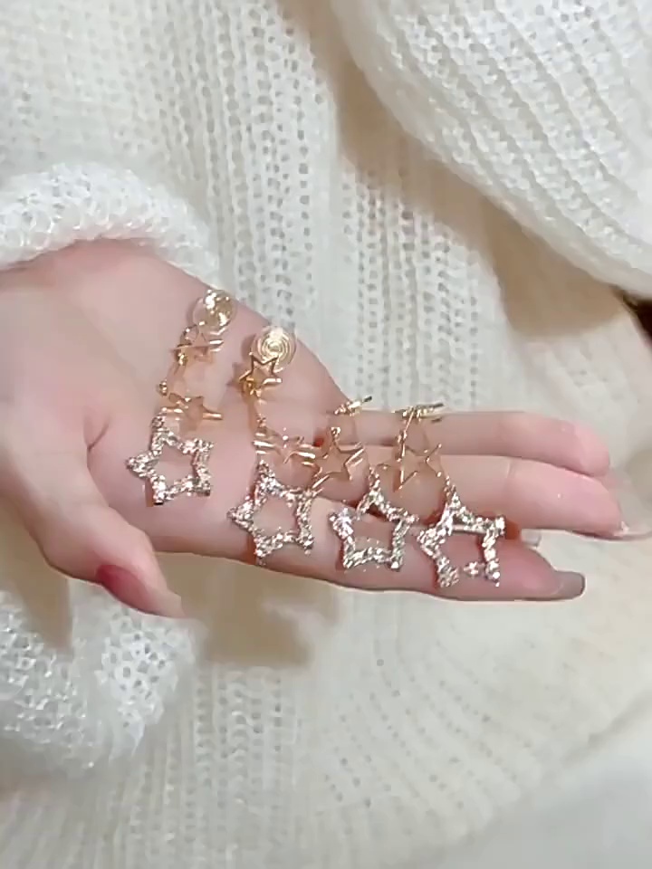 饰品简约时尚耳环星星耳钉耳饰韩系超闪锆石长款流苏五角星耳环女