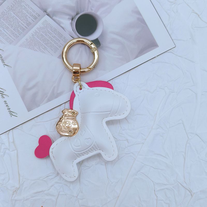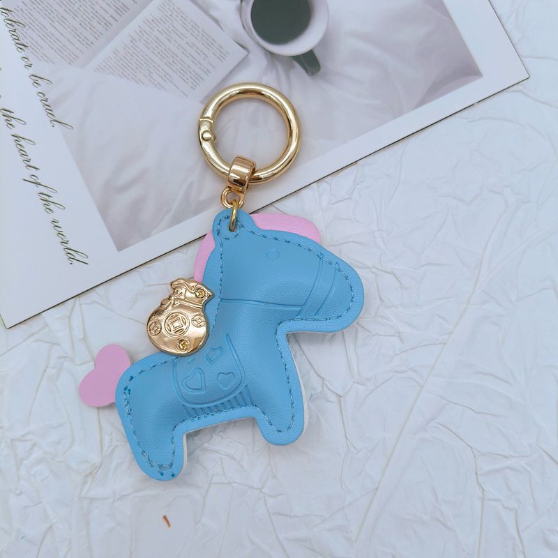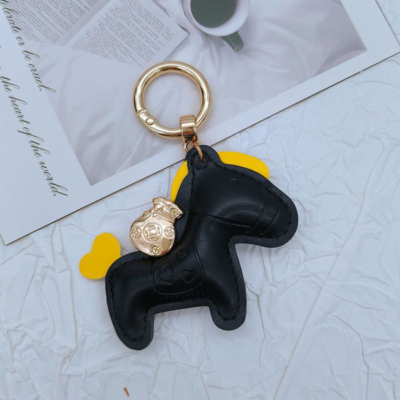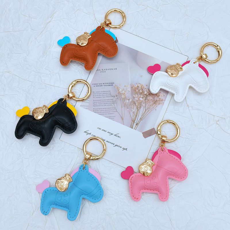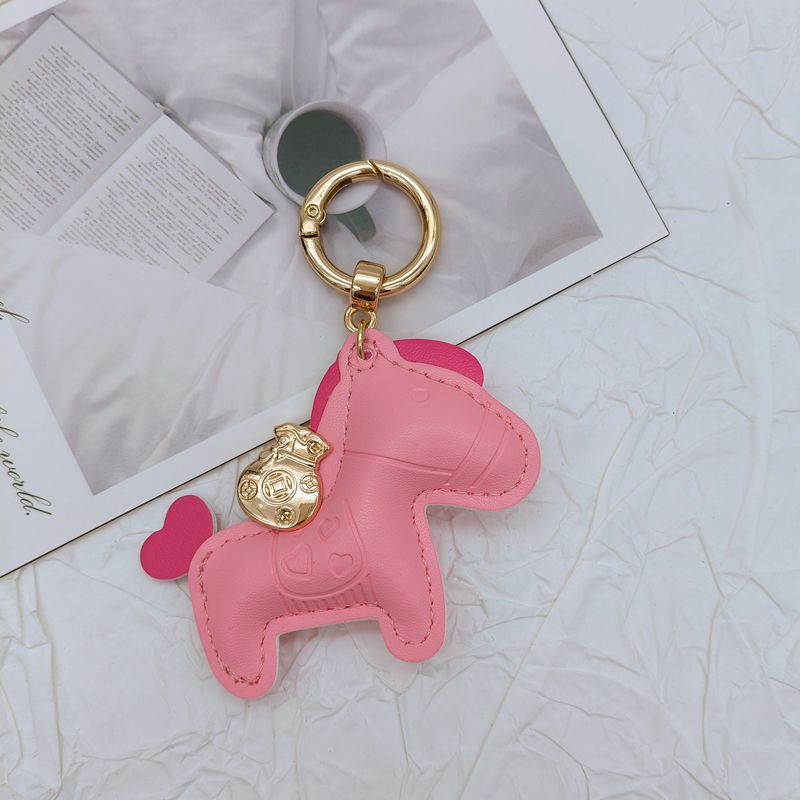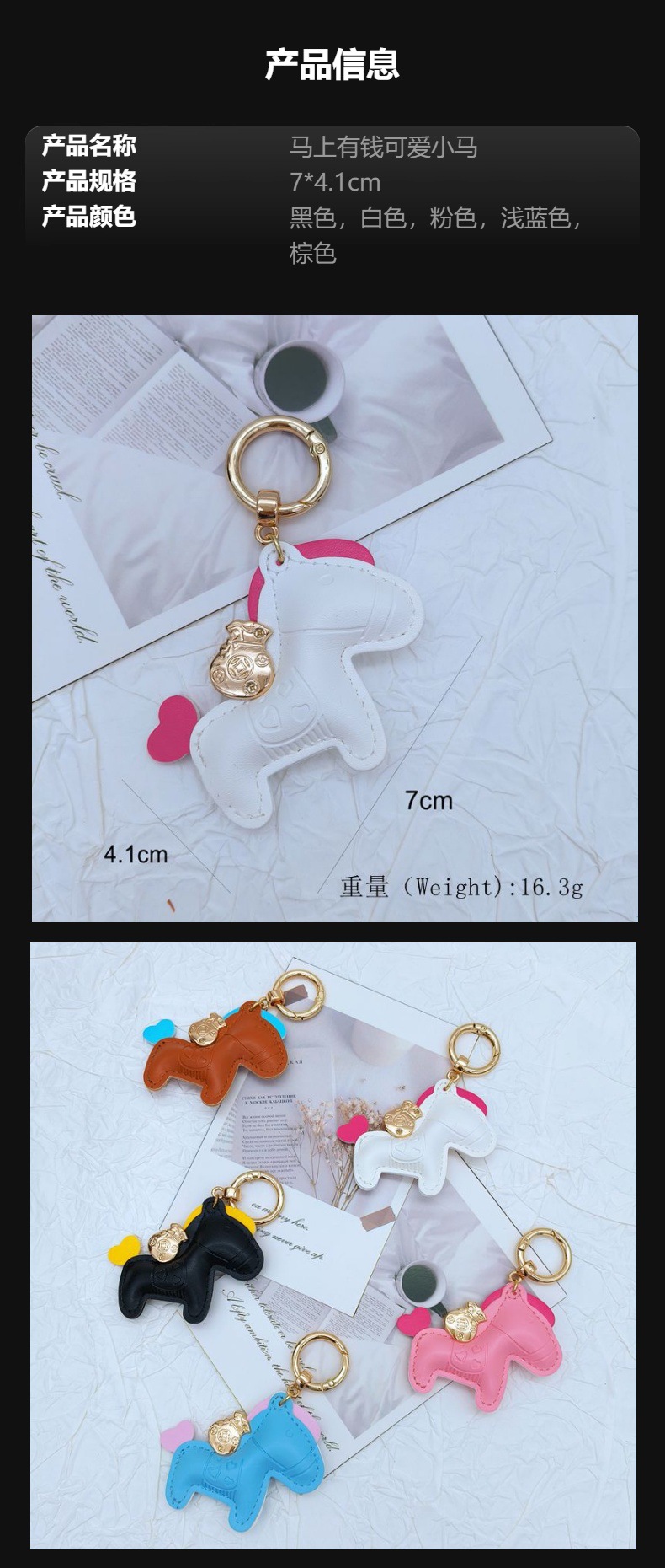 马上有钱可爱小马钥匙扣挂件情侣皮革卡通挂饰精致书包节日小礼品