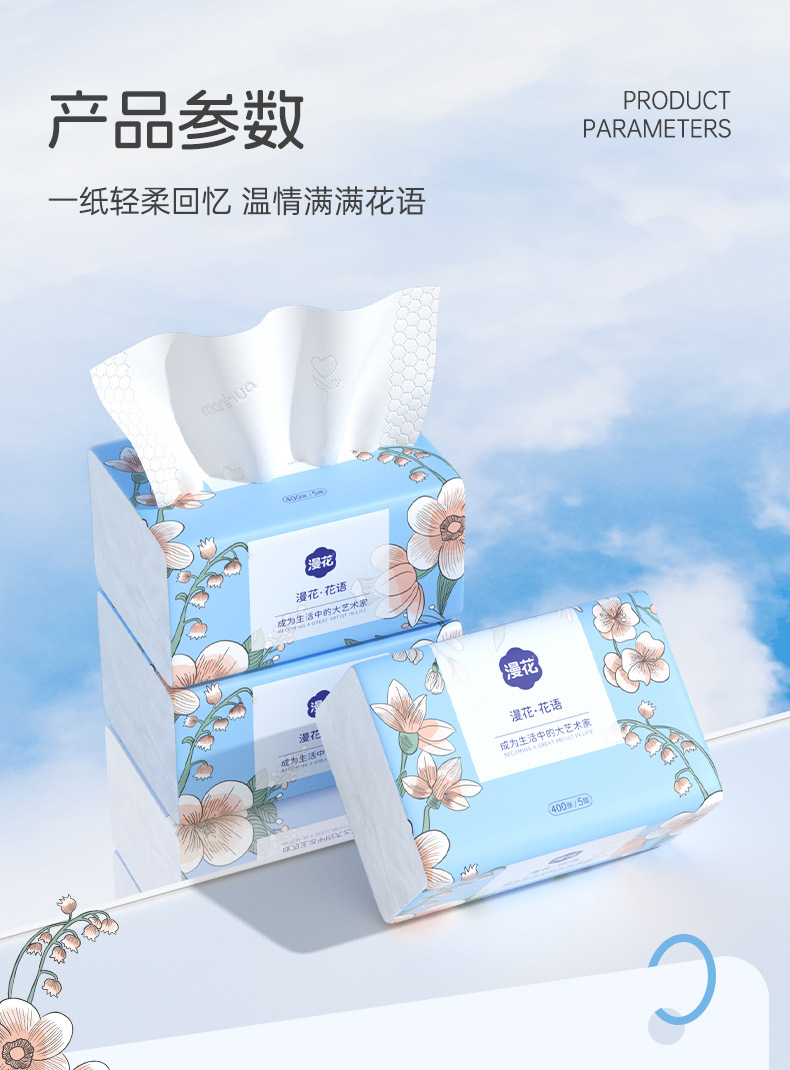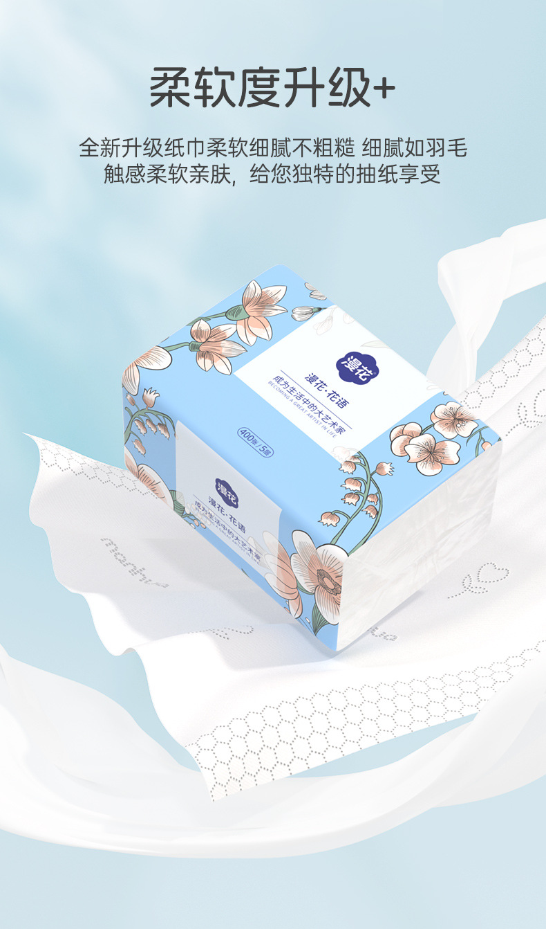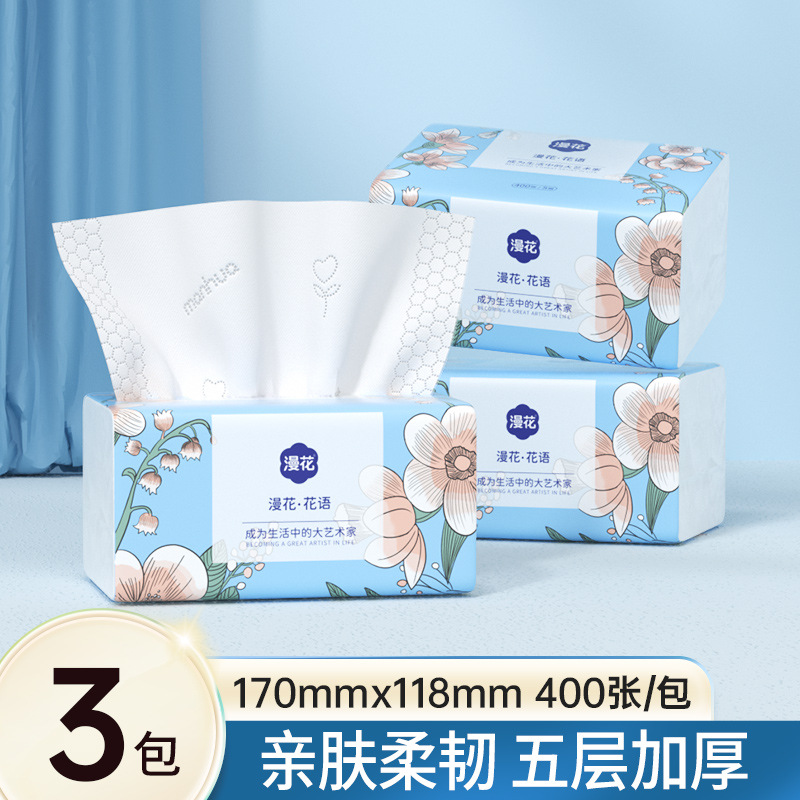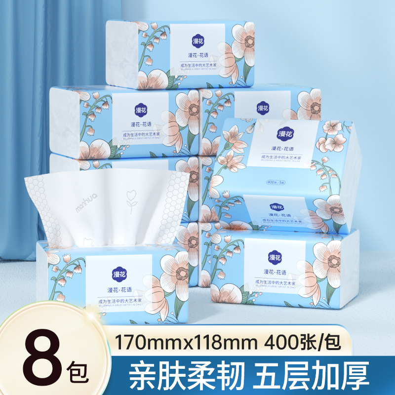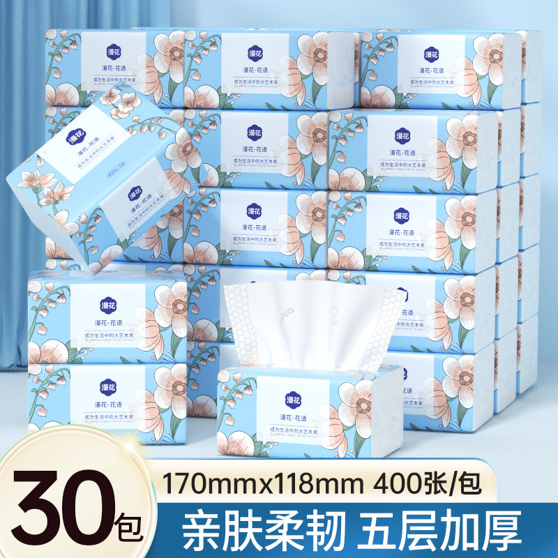 漫花400张抽纸家用卫生纸整箱30包实惠装餐巾纸加厚5层面纸巾代发