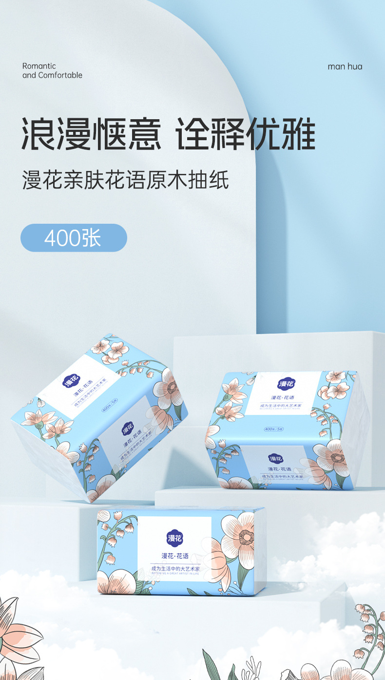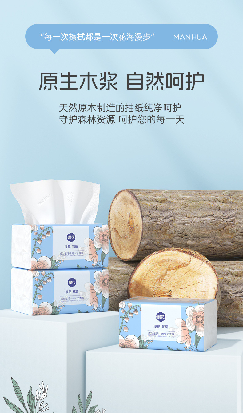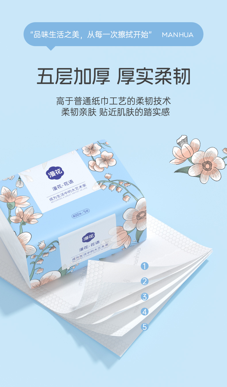 漫花400张抽纸家用卫生纸整箱30包实惠装餐巾纸加厚5层面纸巾代发