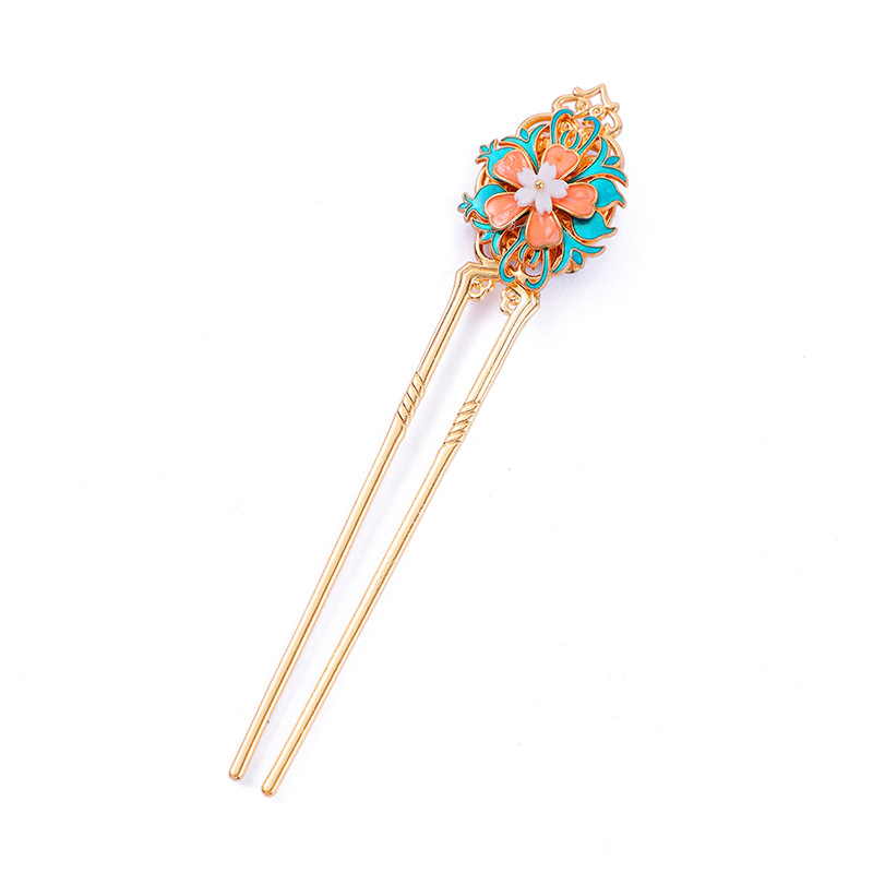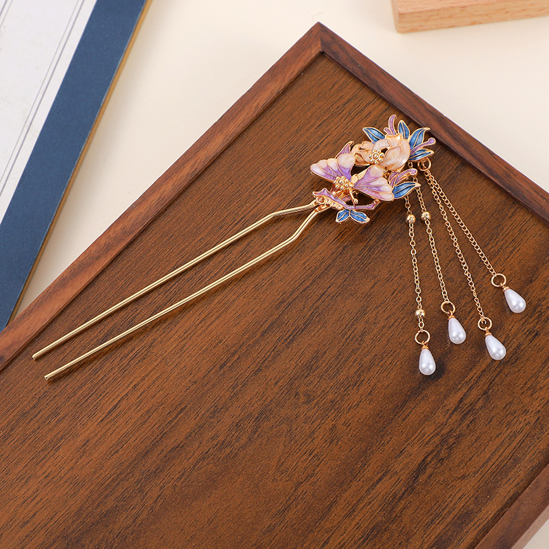 新中式镶钻发簪古风烧蓝凤钗流苏簪子马面裙汉服珠花步摇盘发钗子