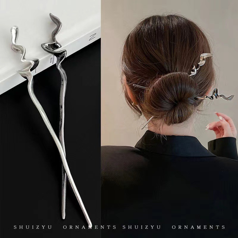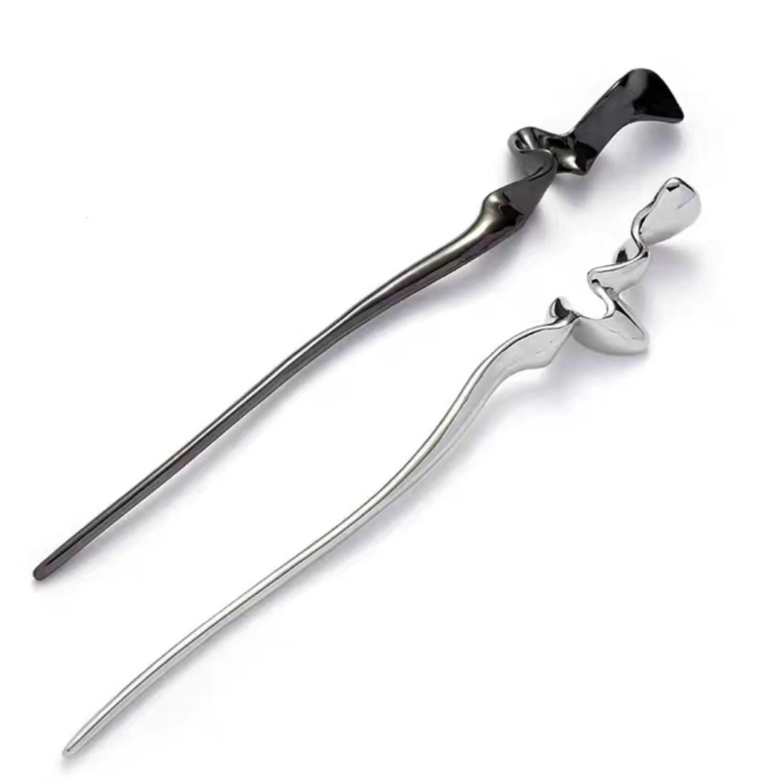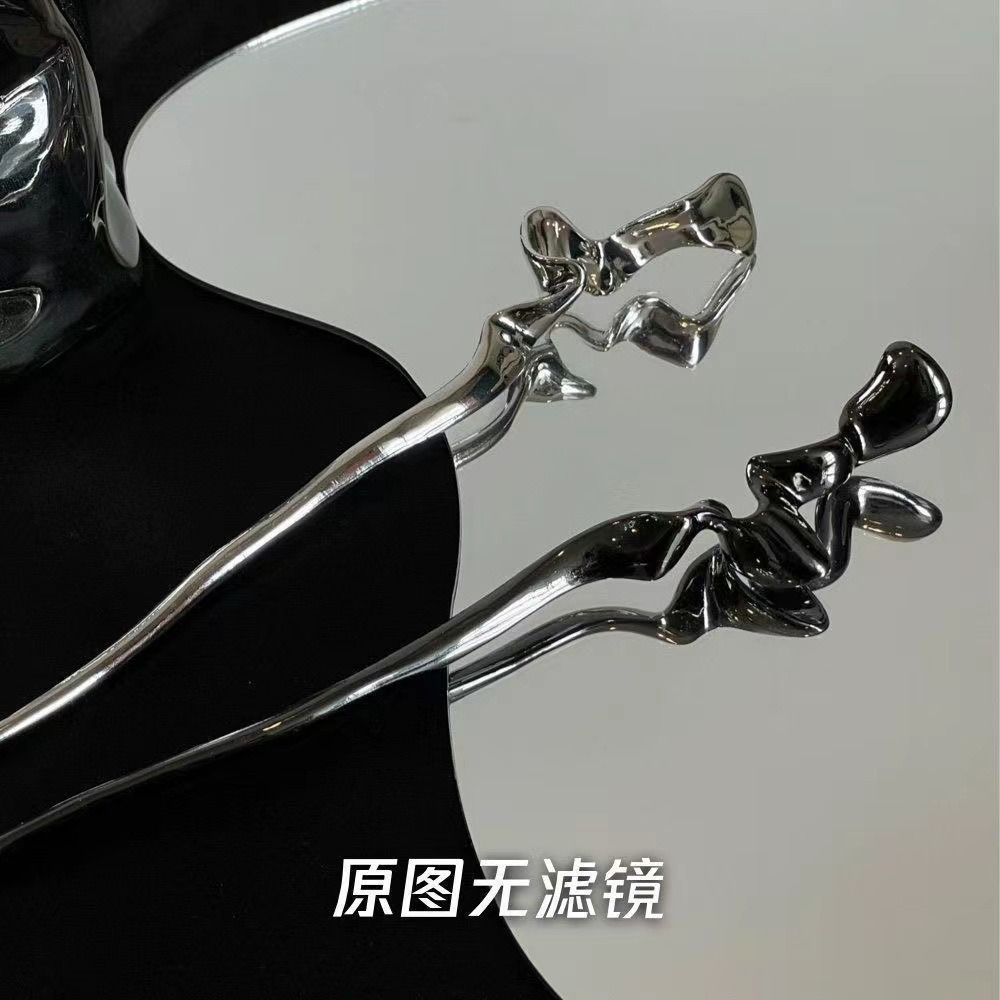 现代简约发饰黑色扭扭发簪女盘发簪子高级感合金头饰发钗发簪批发