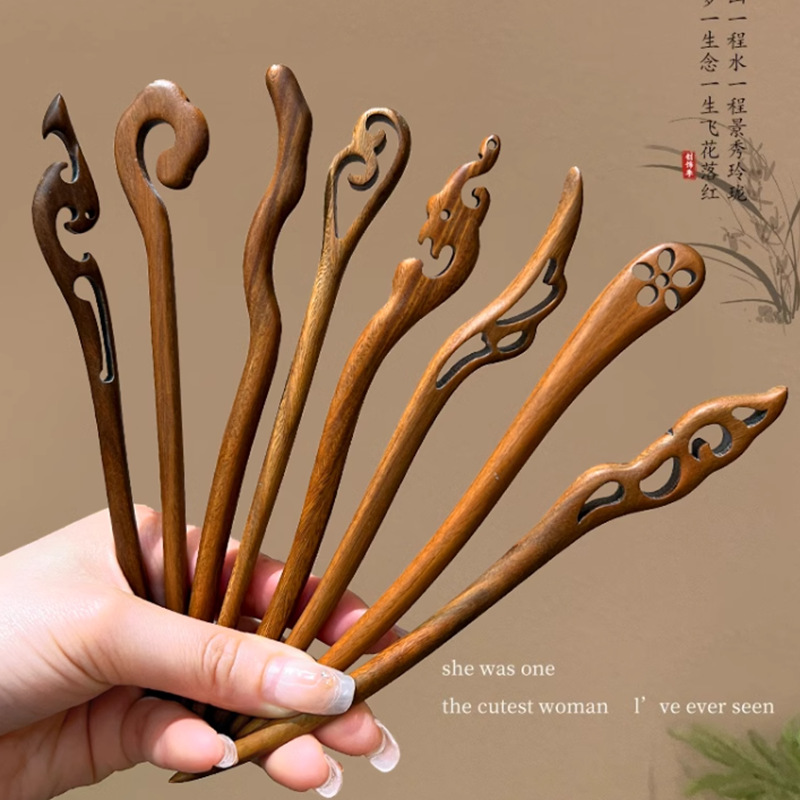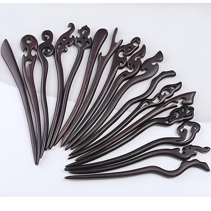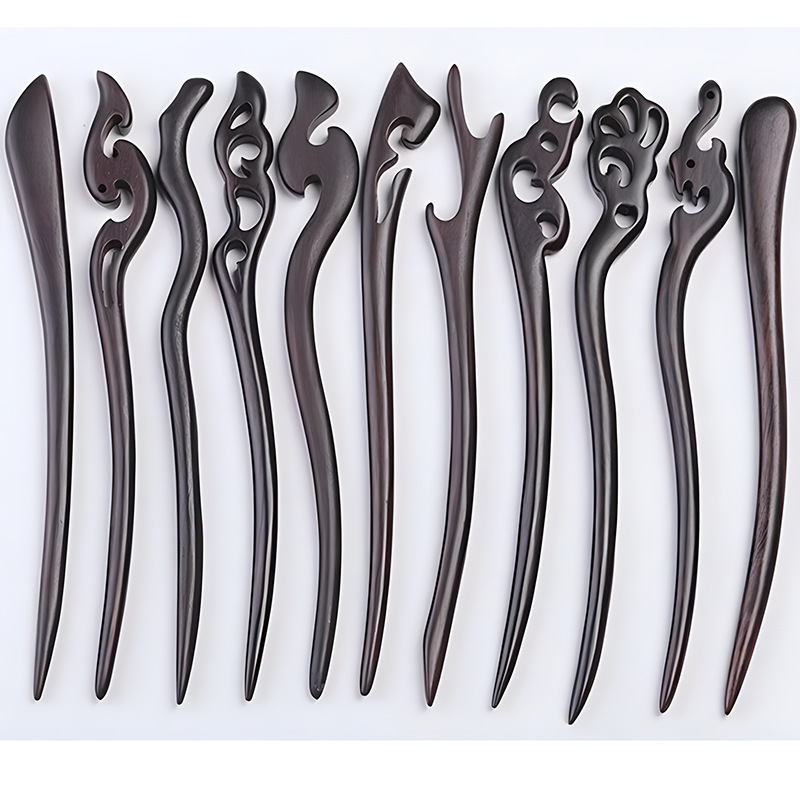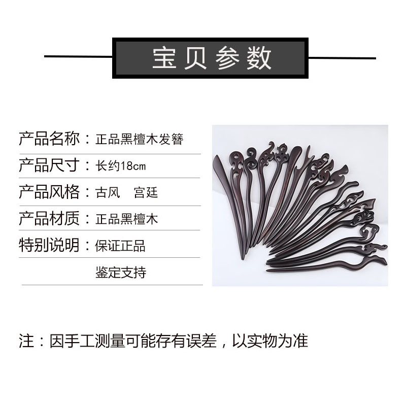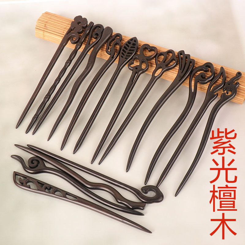 正品黑檀木发簪高级感檀木簪子日常简约盘发发饰紫光檀木质发钗