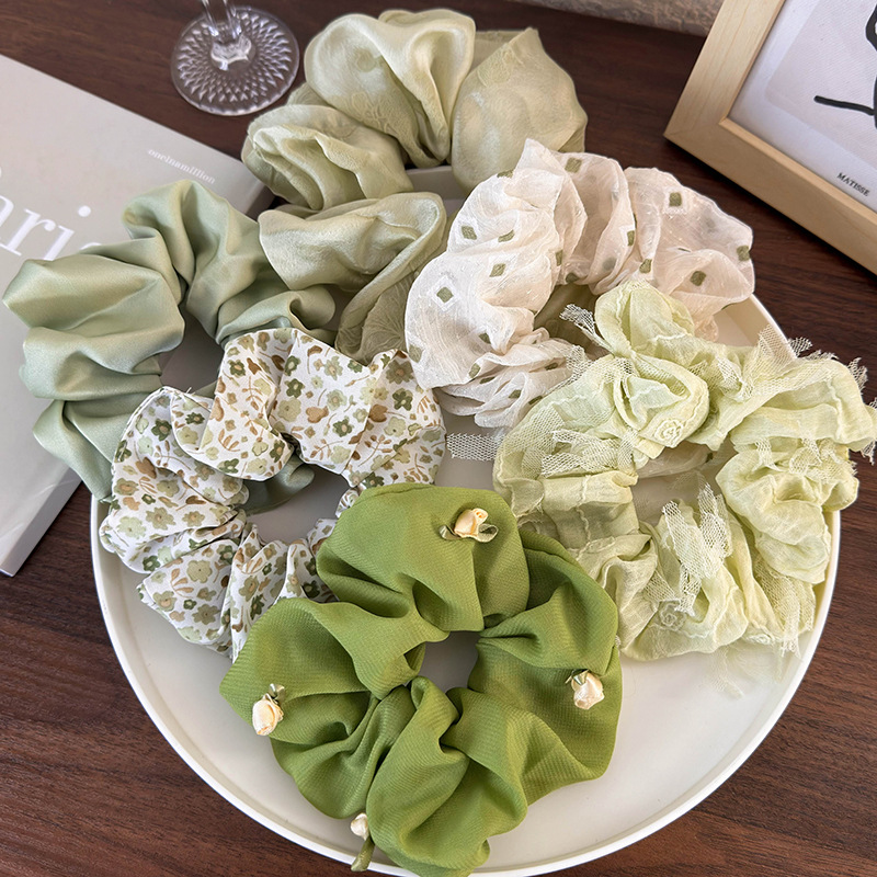 春夏绿色系大肠发圈头饰森系少女蕾丝碎花发圈头绳丸子头发饰品女