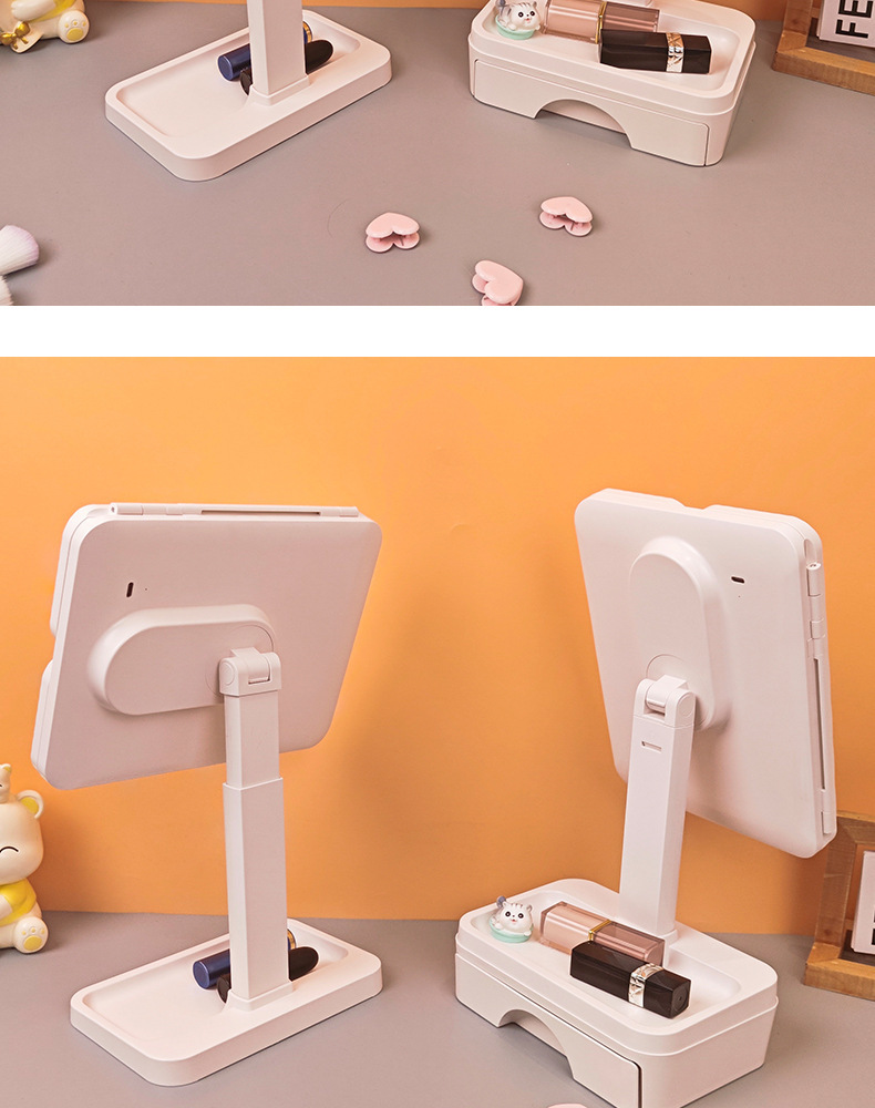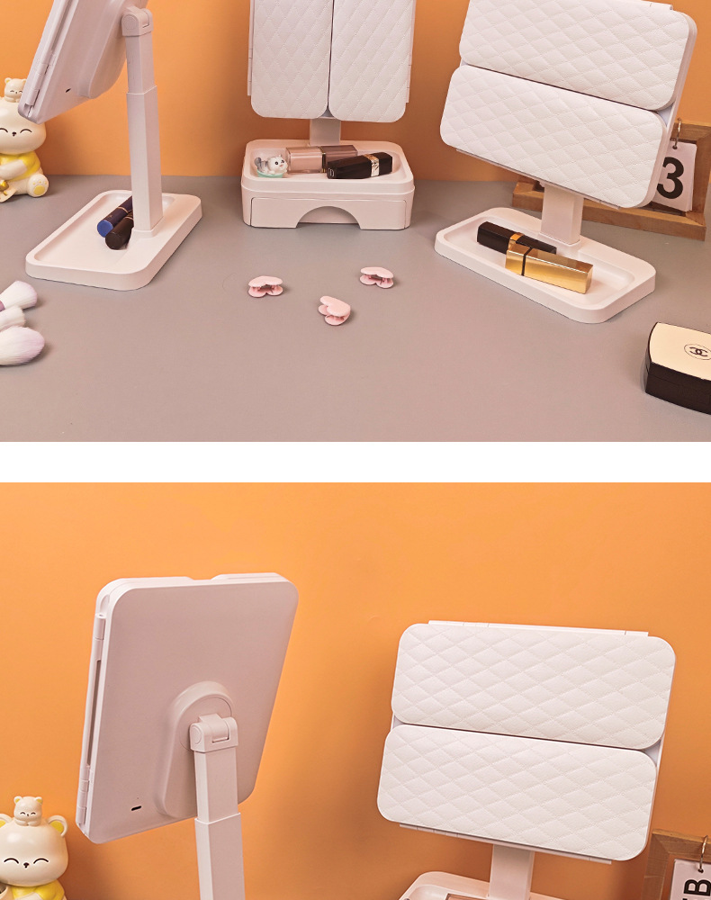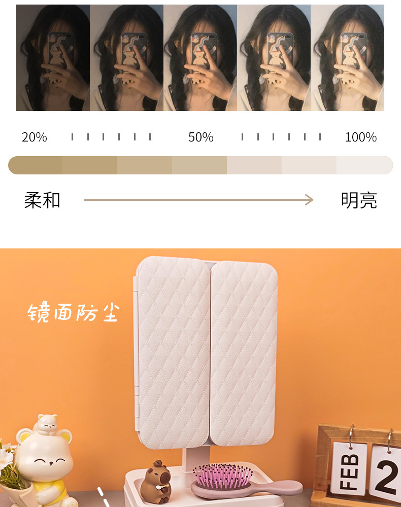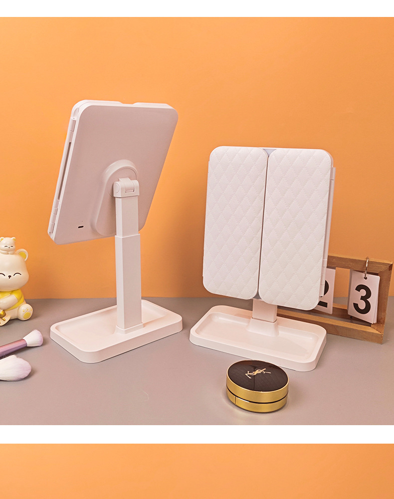 跨境台式桌面三折led化妆镜带灯补光折叠贝壳镜充电款情人节礼品