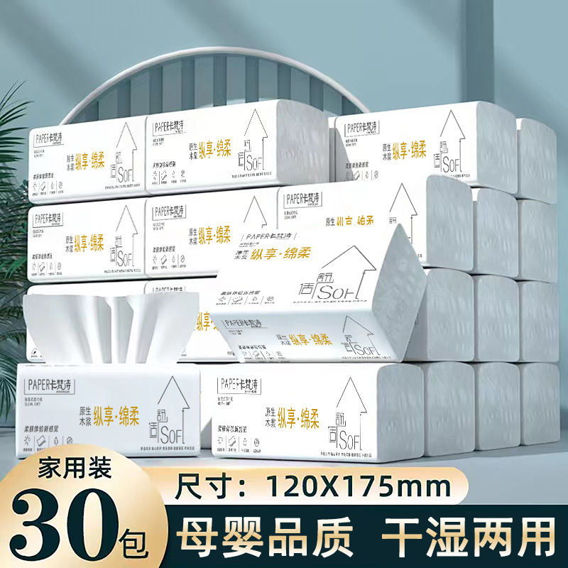 纸巾抽纸整箱30包木浆卫生纸批发家用实惠装餐巾纸家庭装纸抽厂家