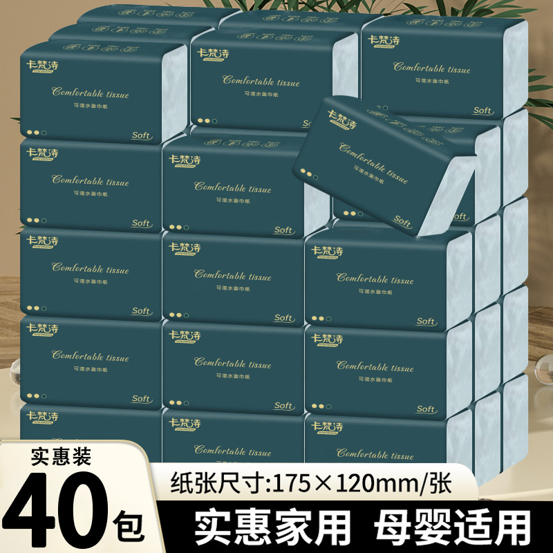 纸巾批发40包家用抽纸整箱批便携装无香抽取式面巾纸实惠装餐巾纸