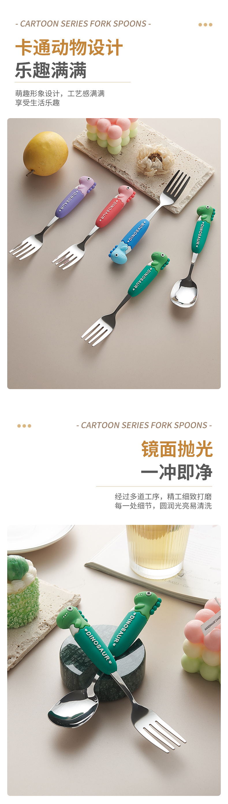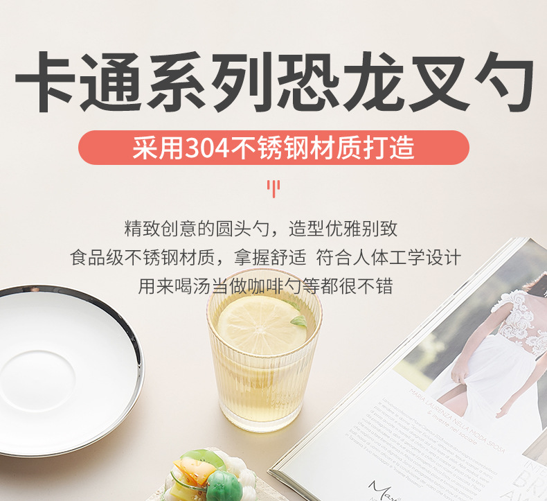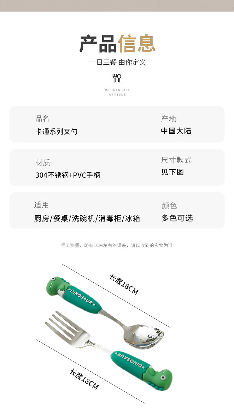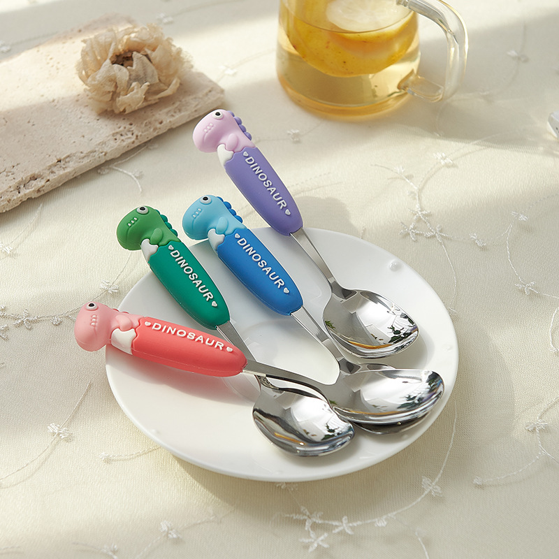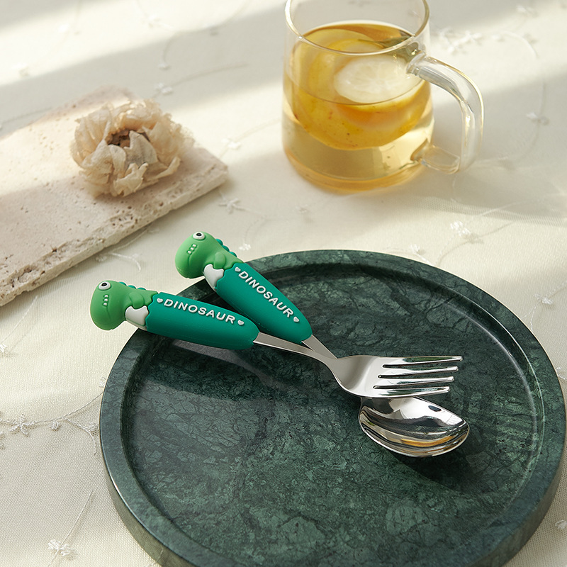 卡通系列小恐龙不锈钢餐具防烫手柄叉勺多色可选儿童西餐餐具批发